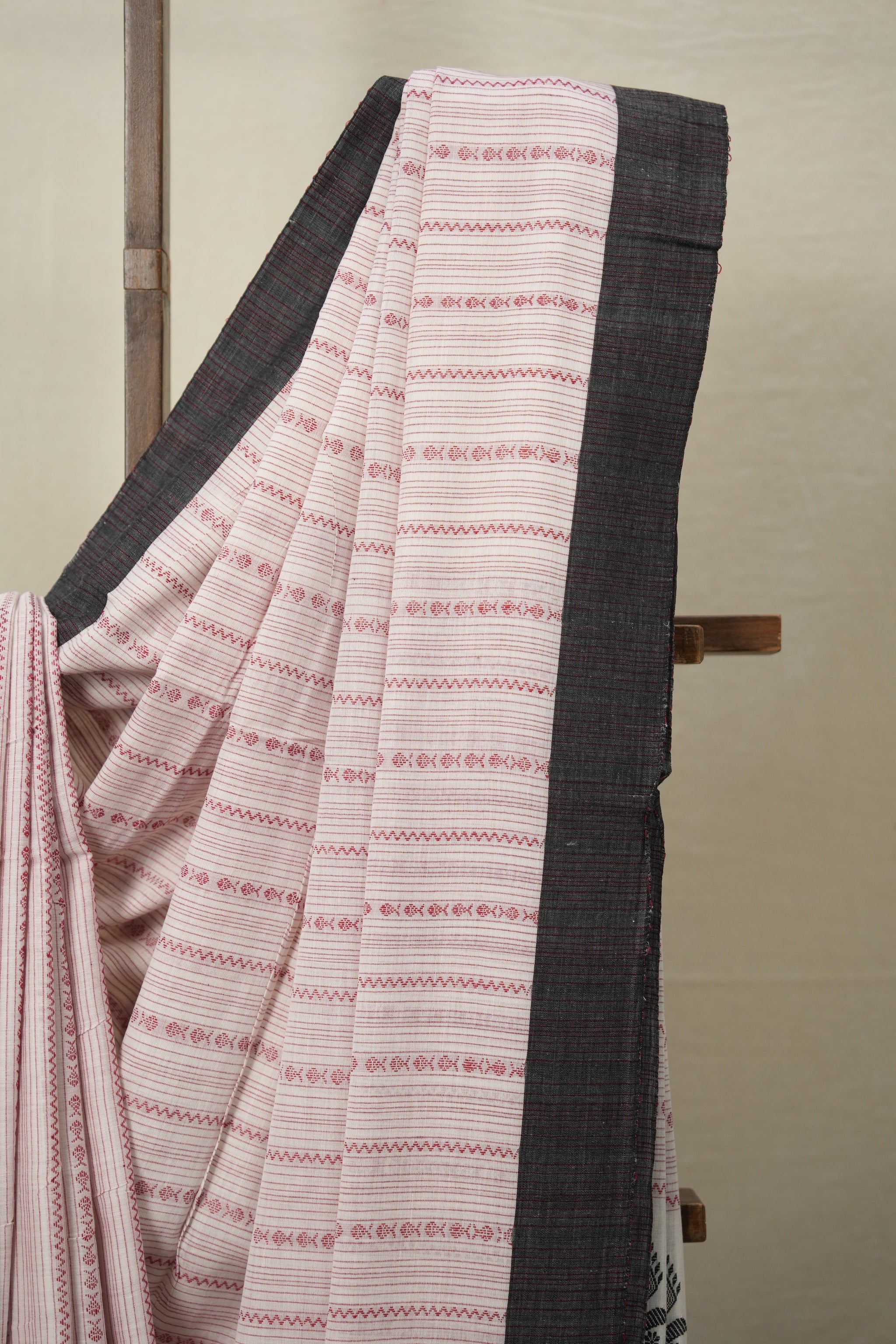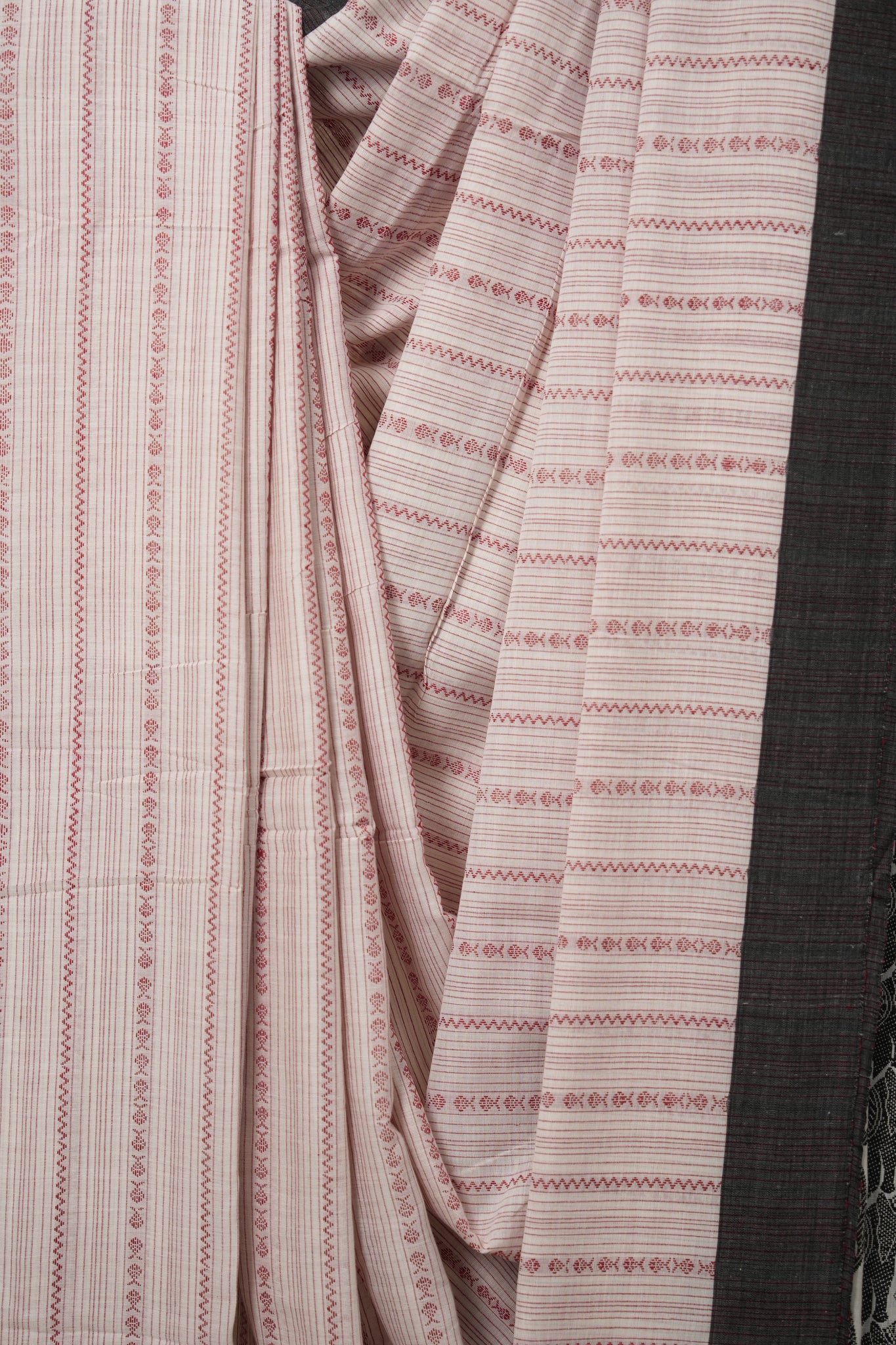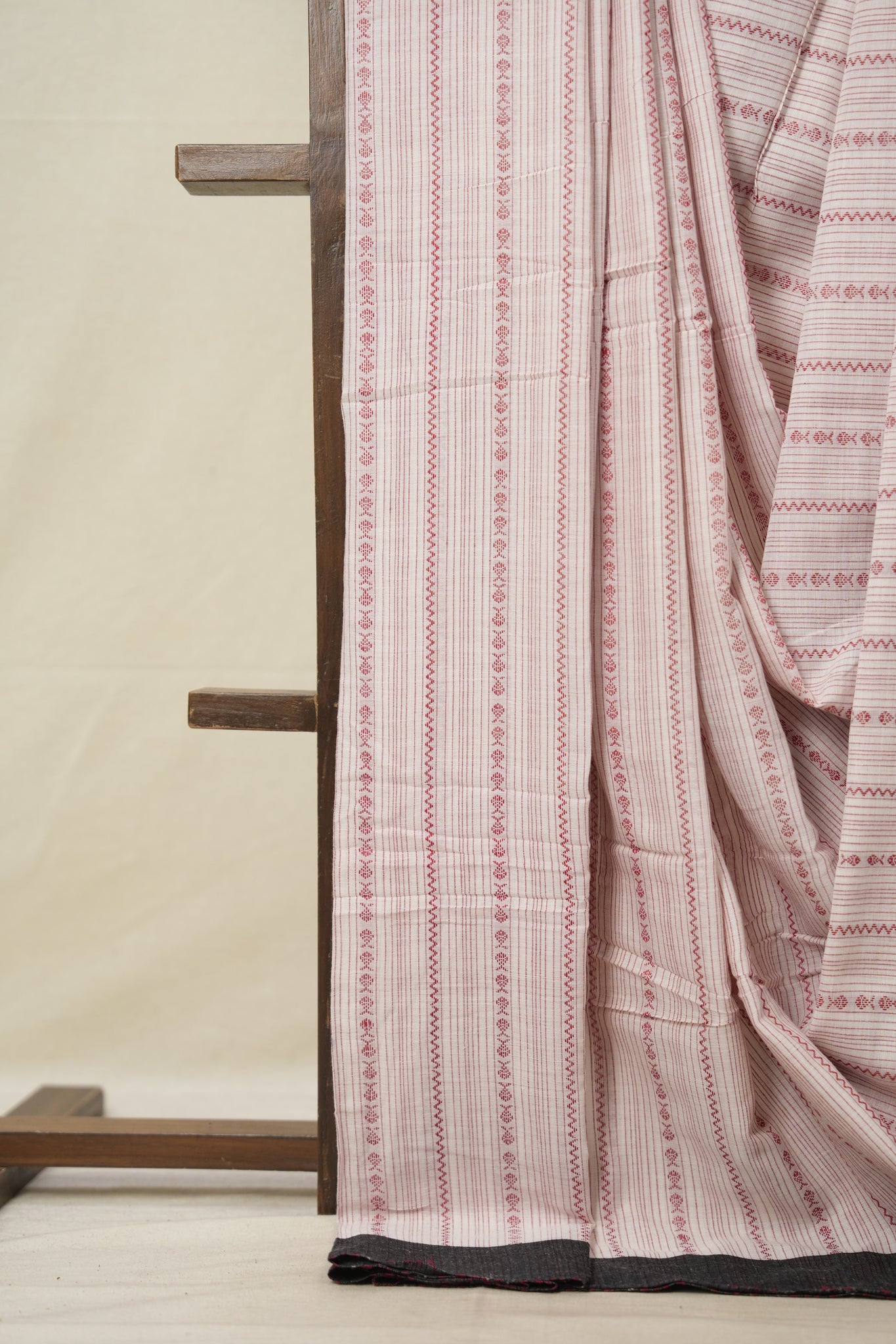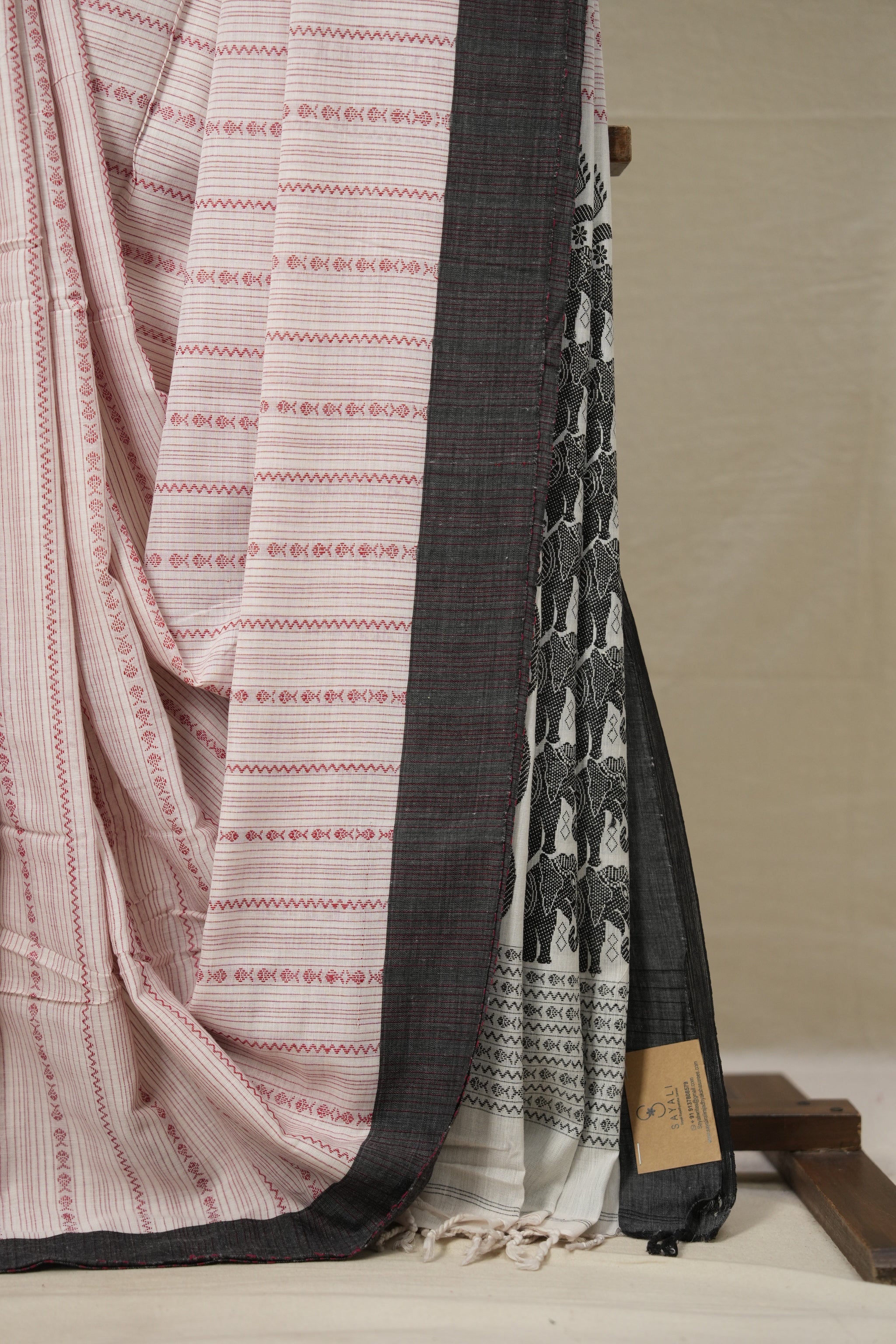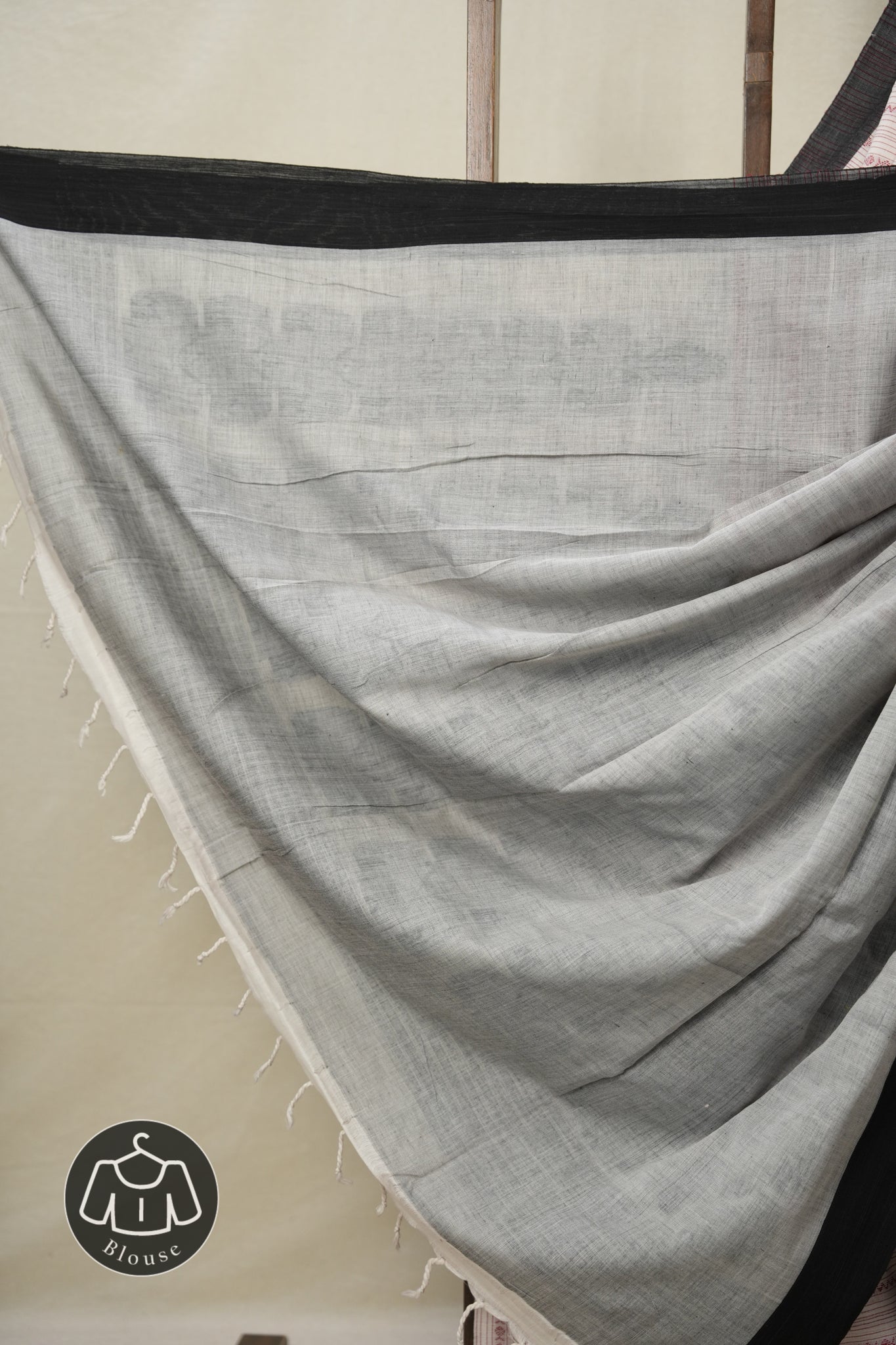 Work - The Bengal cotton saree features a soft body with a vibrant border, Its pallu is adorned with intricate motifs, adding a distinctive traditional charm.