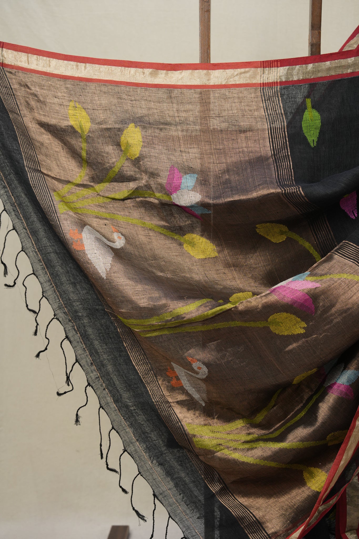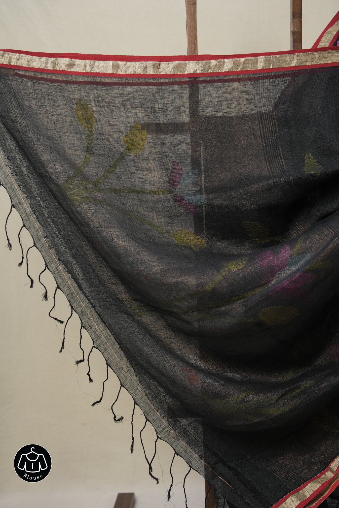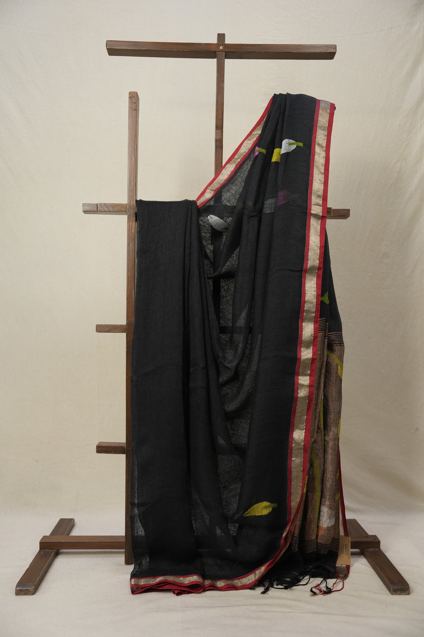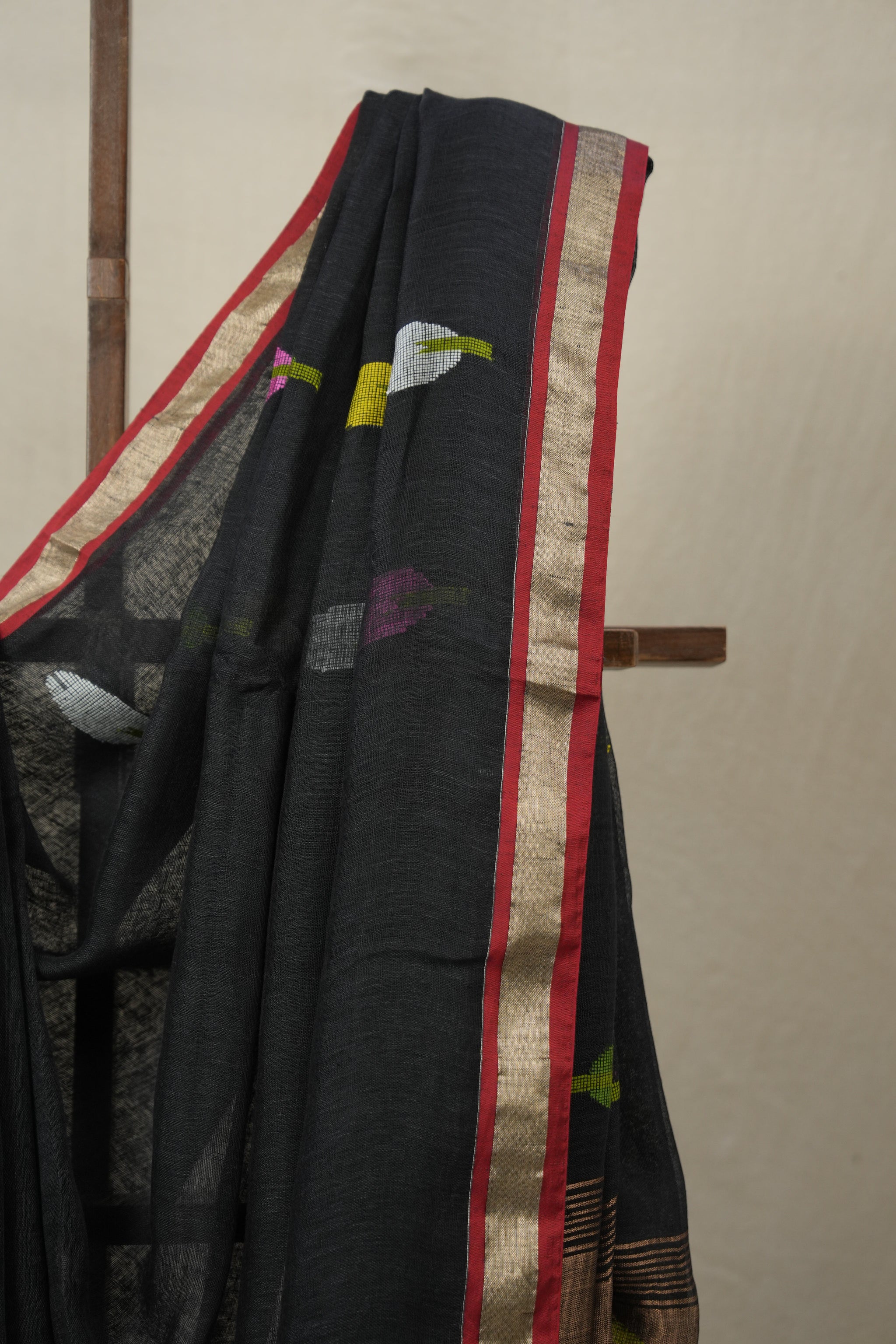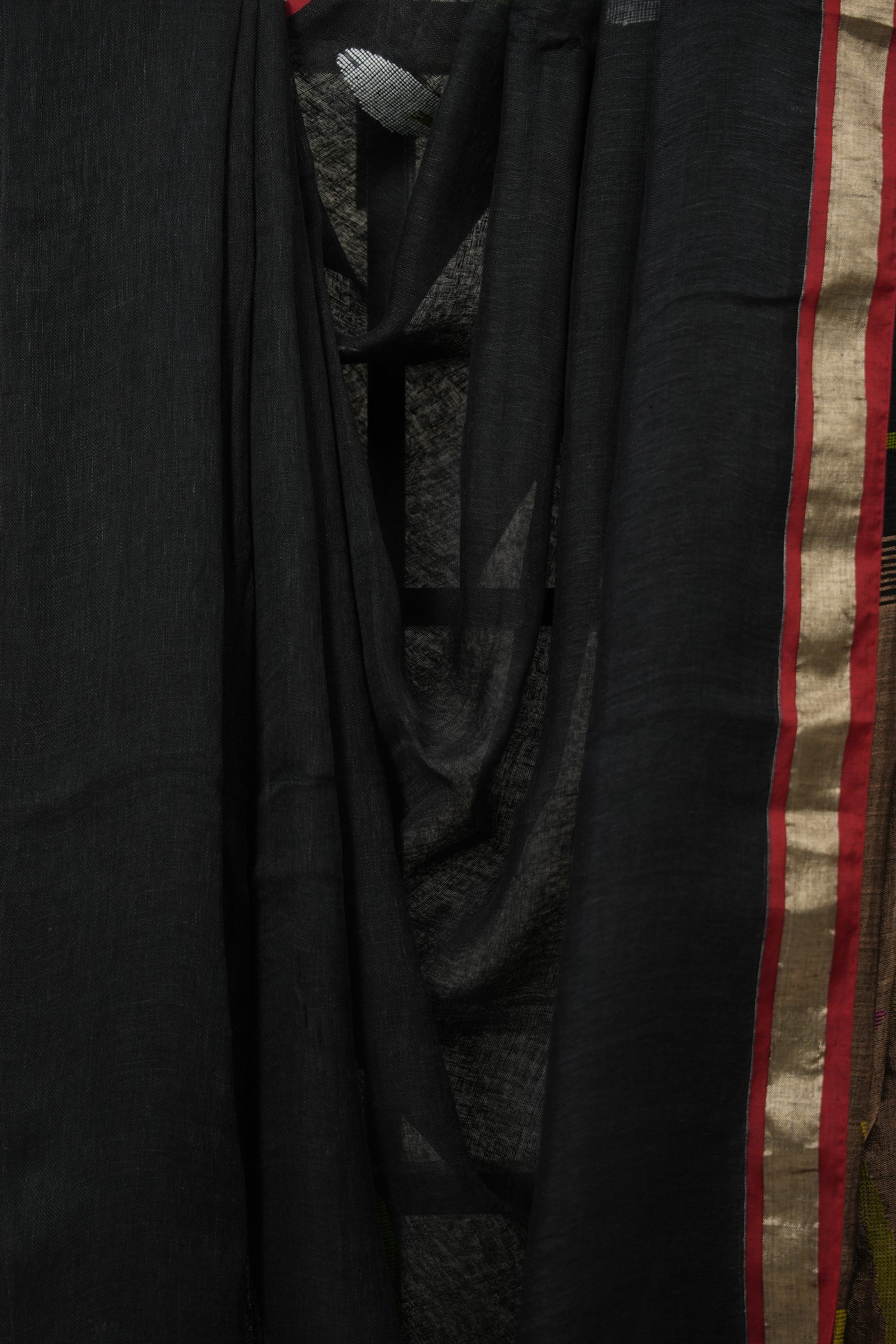 Black Linen Jamdani Saree - SRBLJS511
