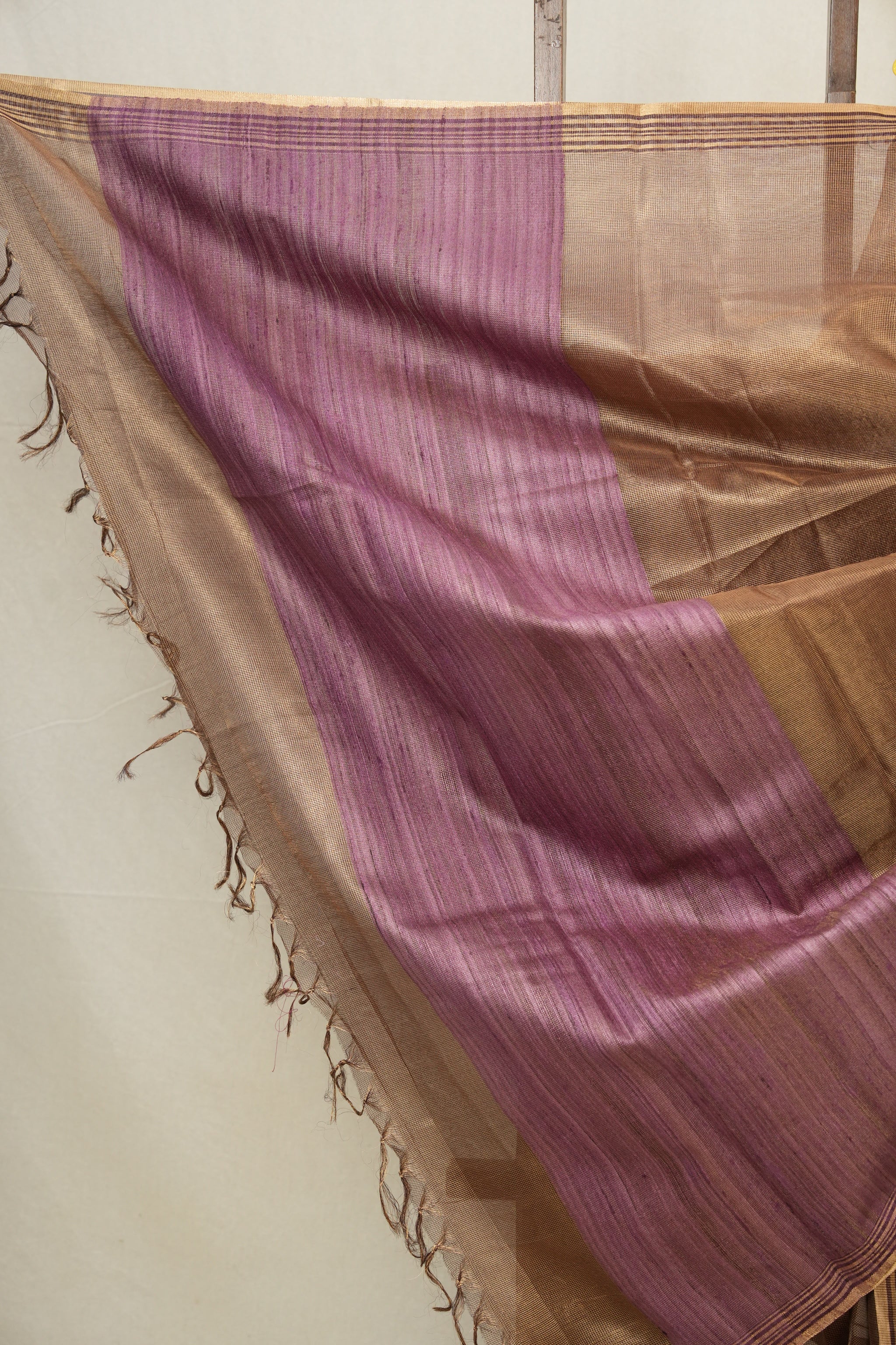 Work - Crafted from fine Tussar silk, this saree offers a sheer, flowing drape with a natural, elegant glow.