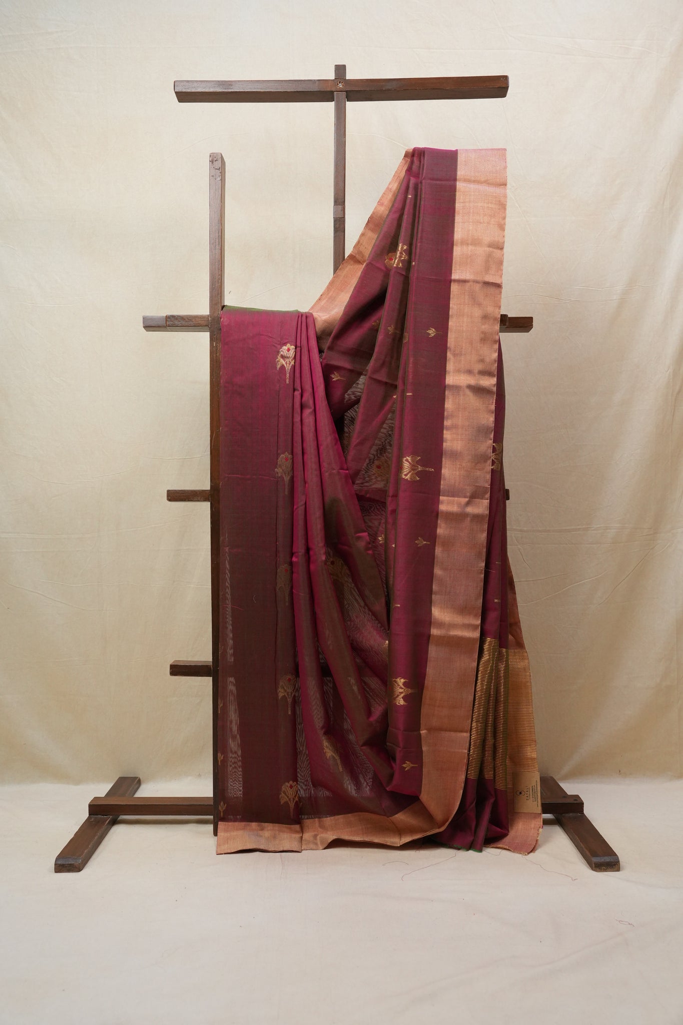 Work - Chanderi cotton silk saree with two tone purple body, gold buti motifs, and elegant zari border.