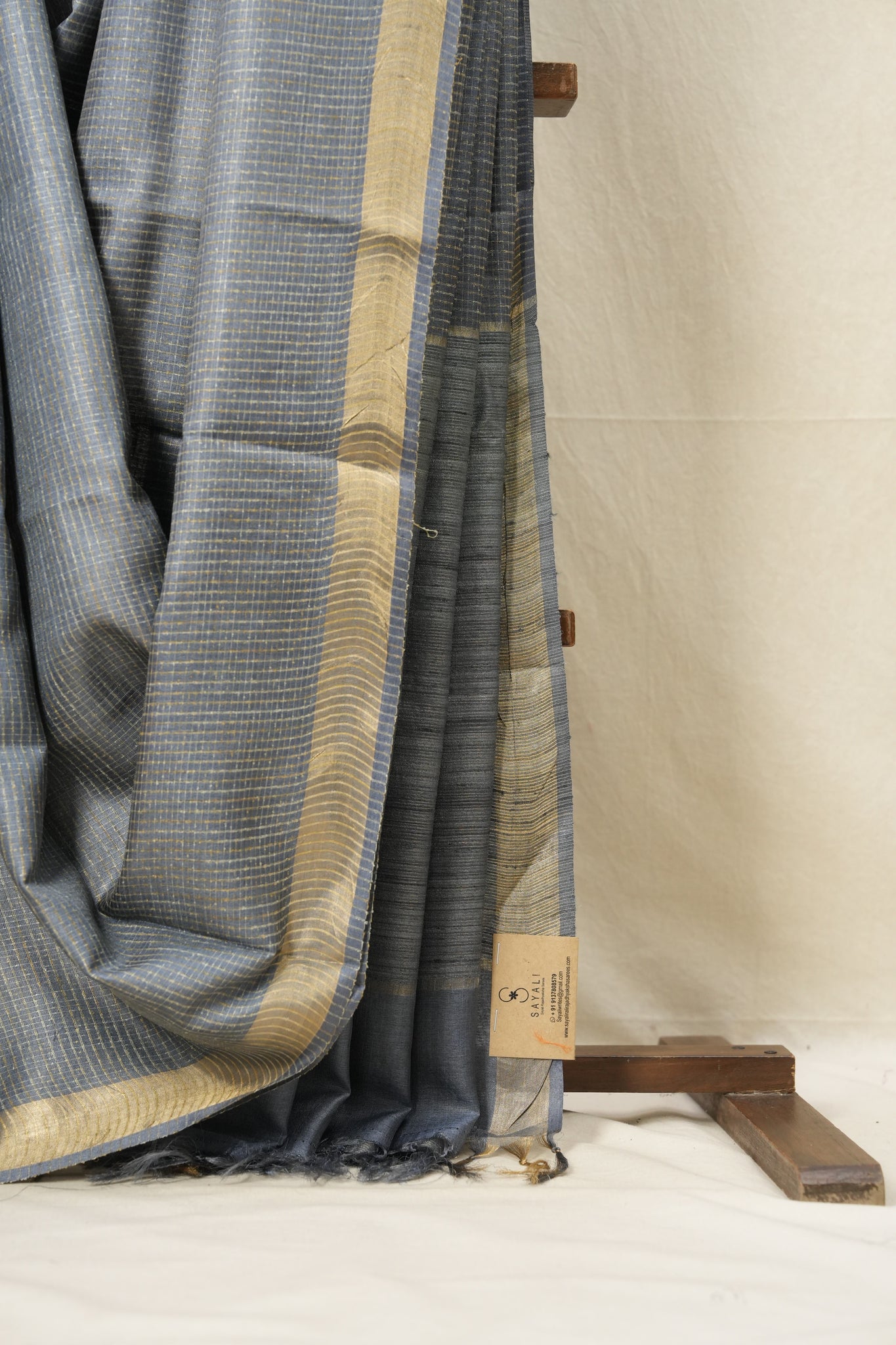 Slate Blue Tussar Silk Saree - SRSBTSS1526