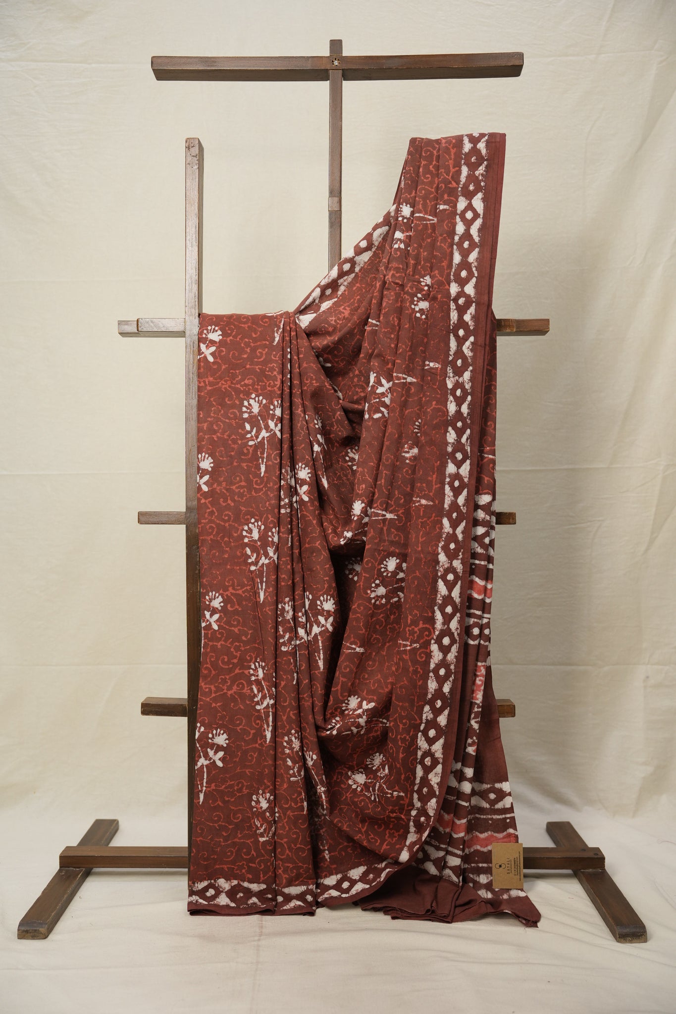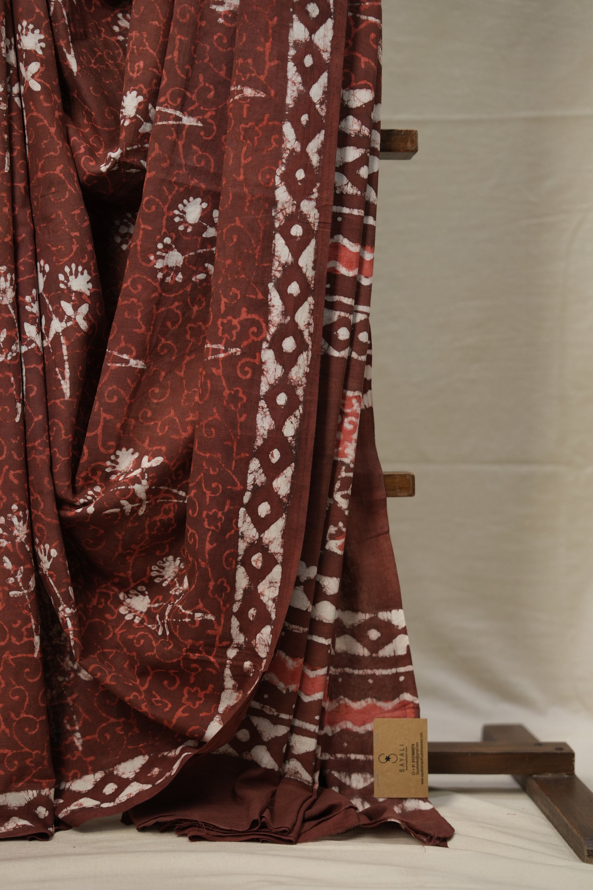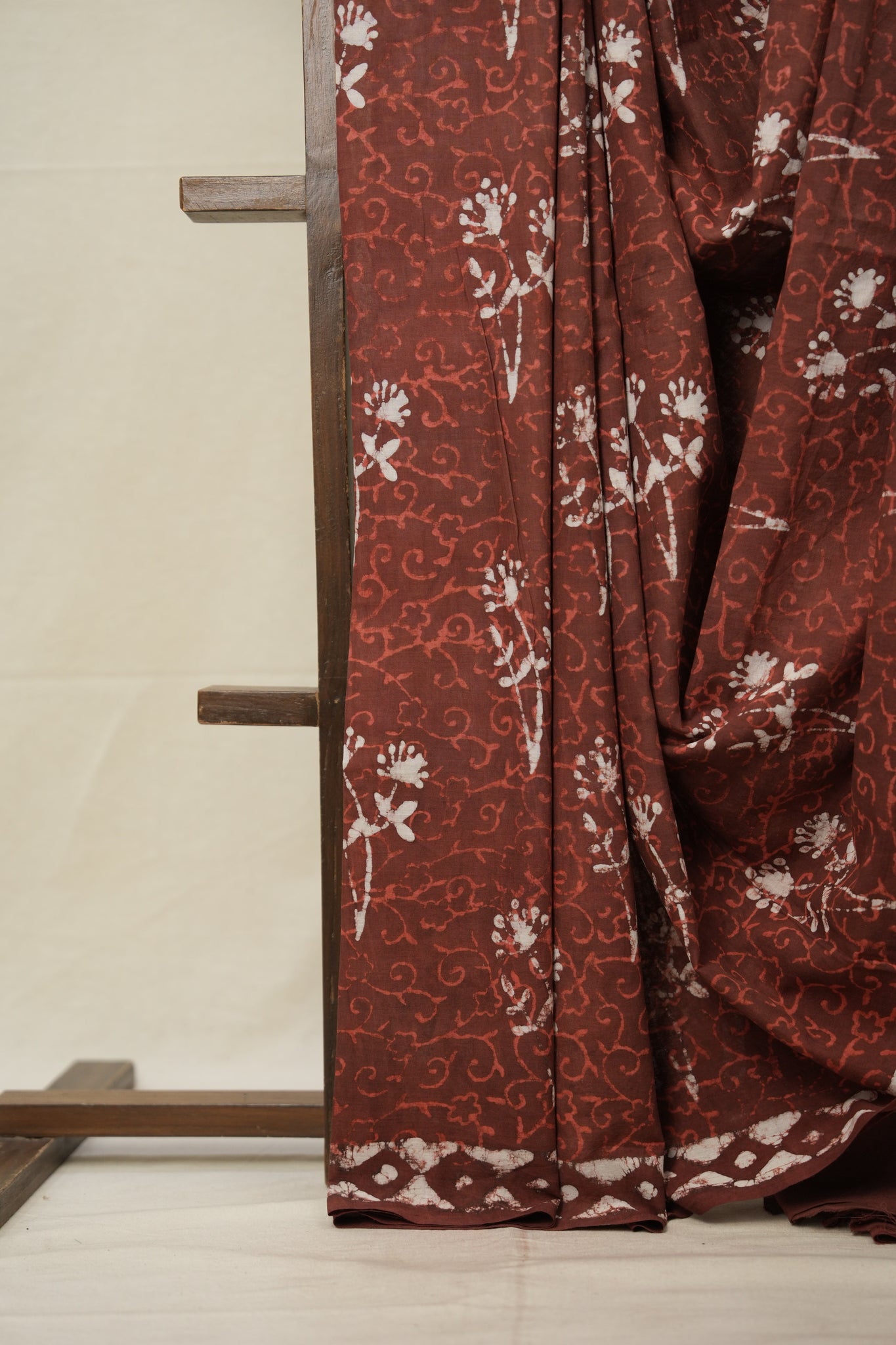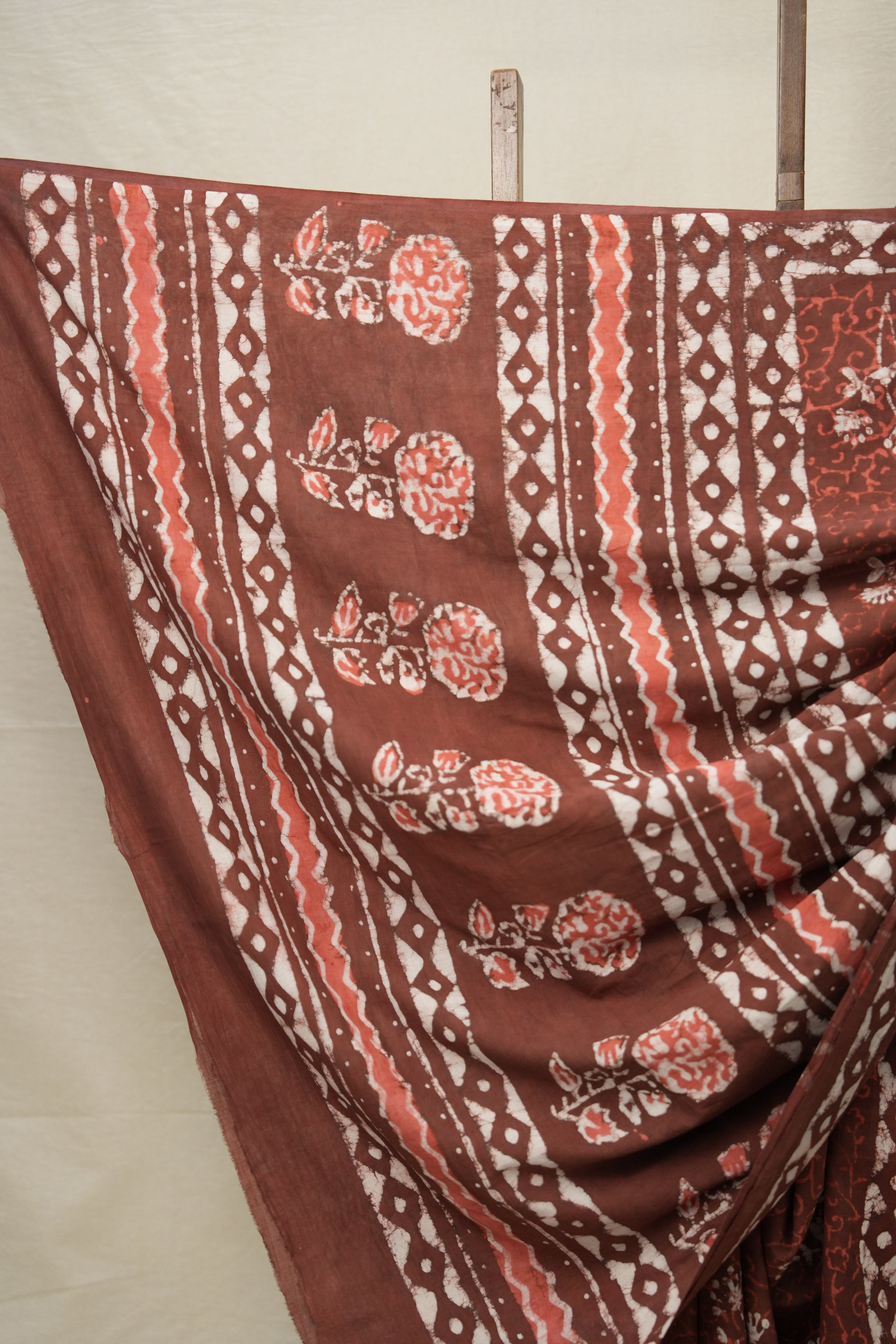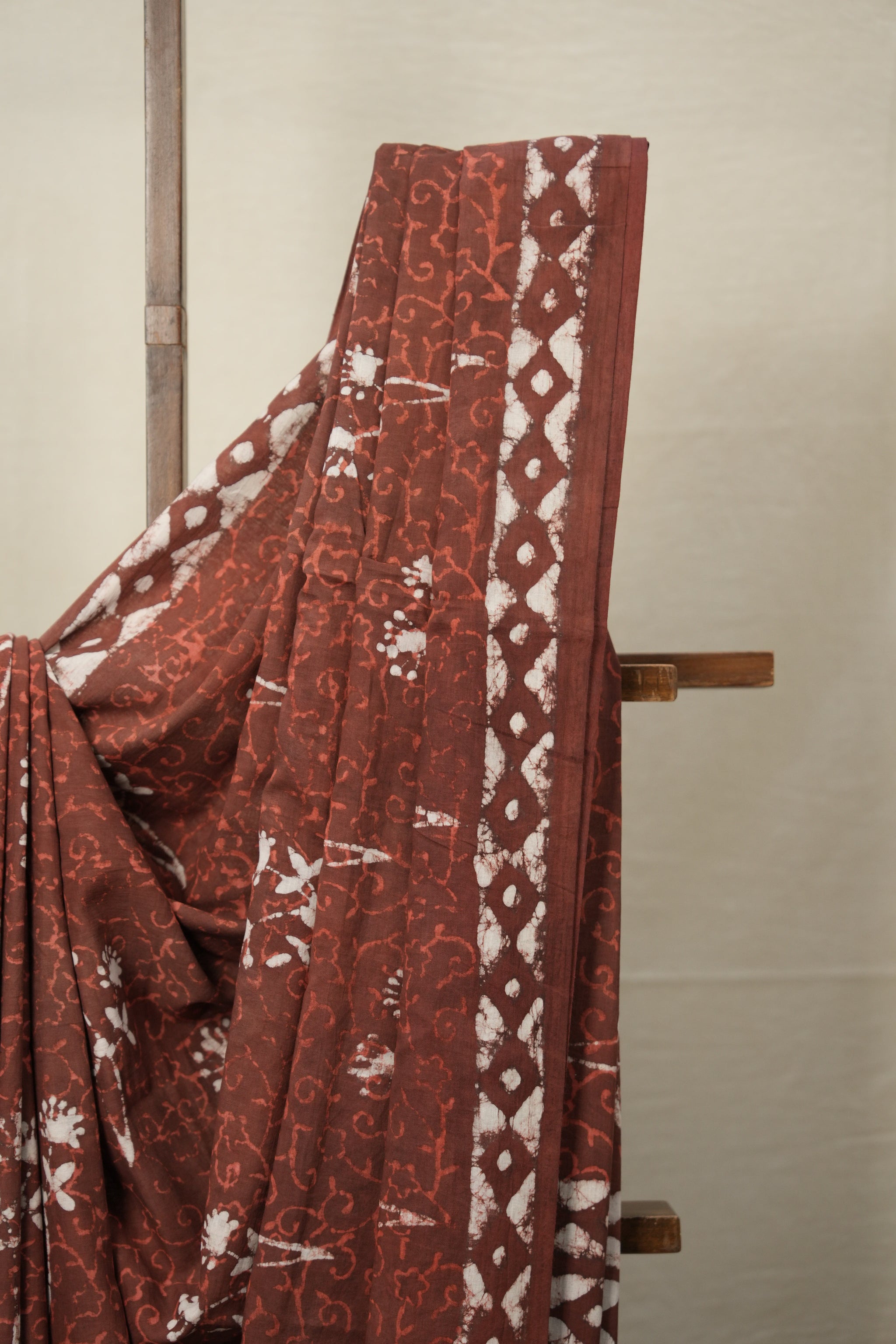 Brick Red White HBP Cotton Saree - SRBRWCS2726