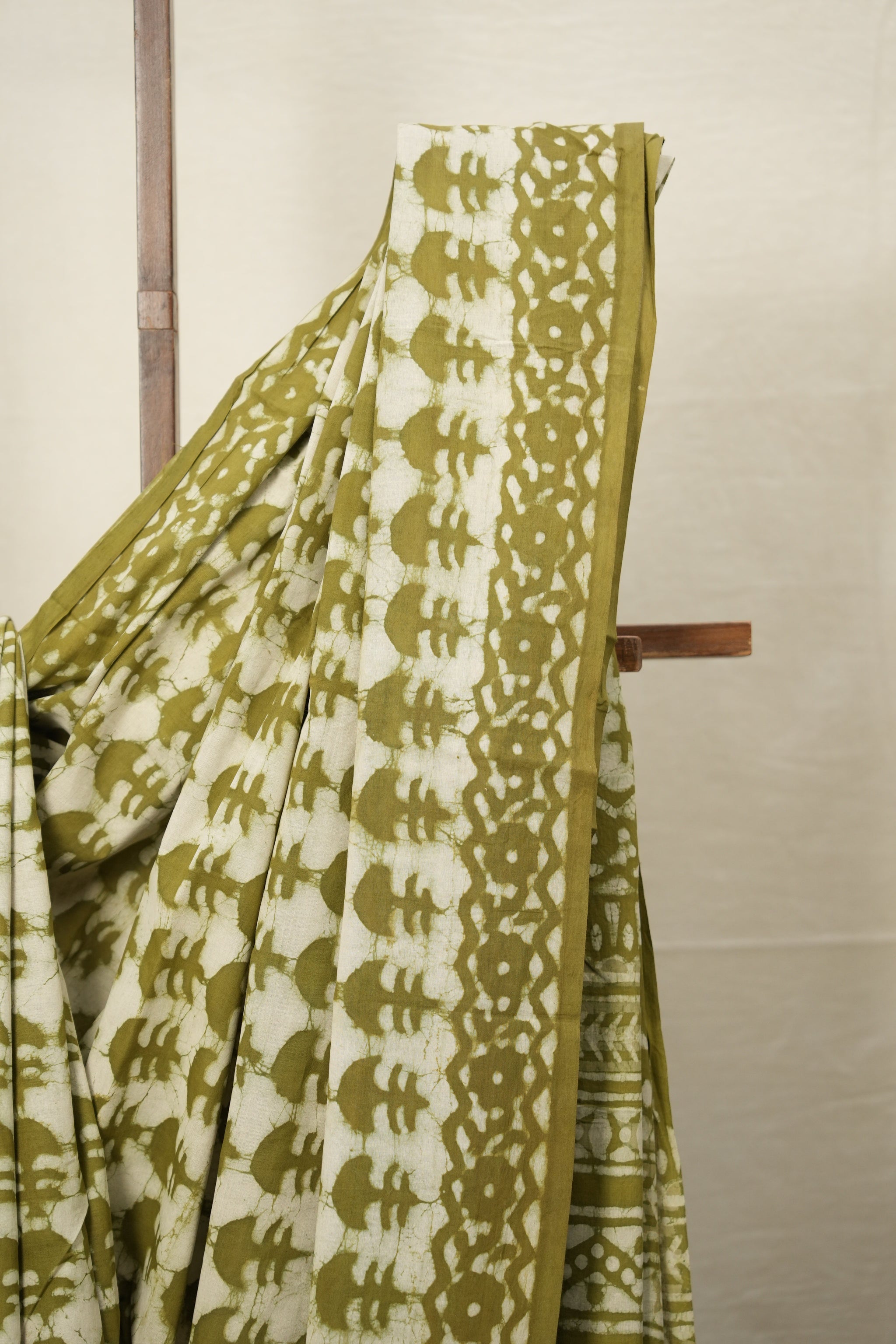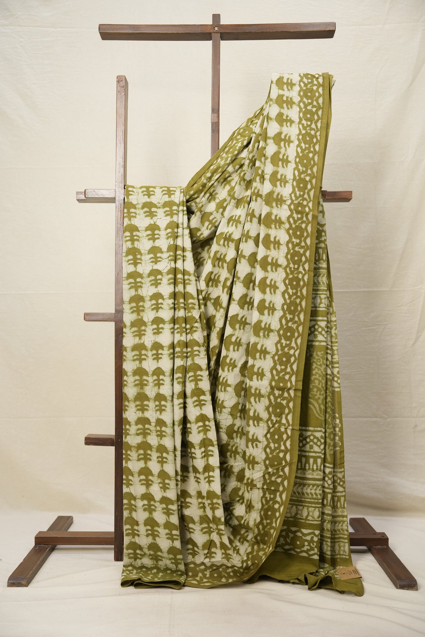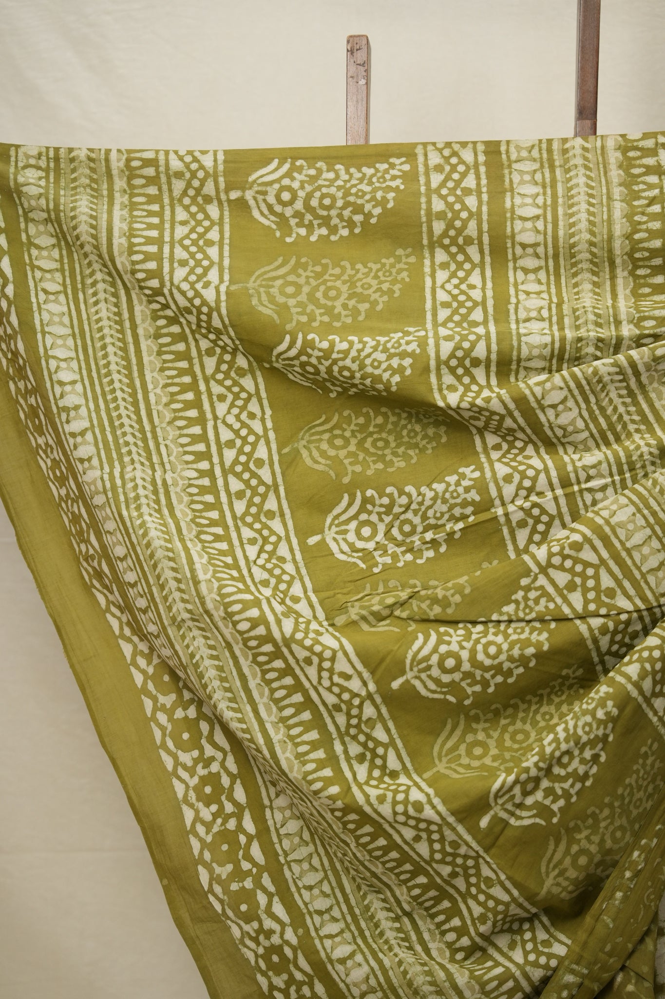 Mehendi Green White HBP Cotton Saree - SRMGWCS2763