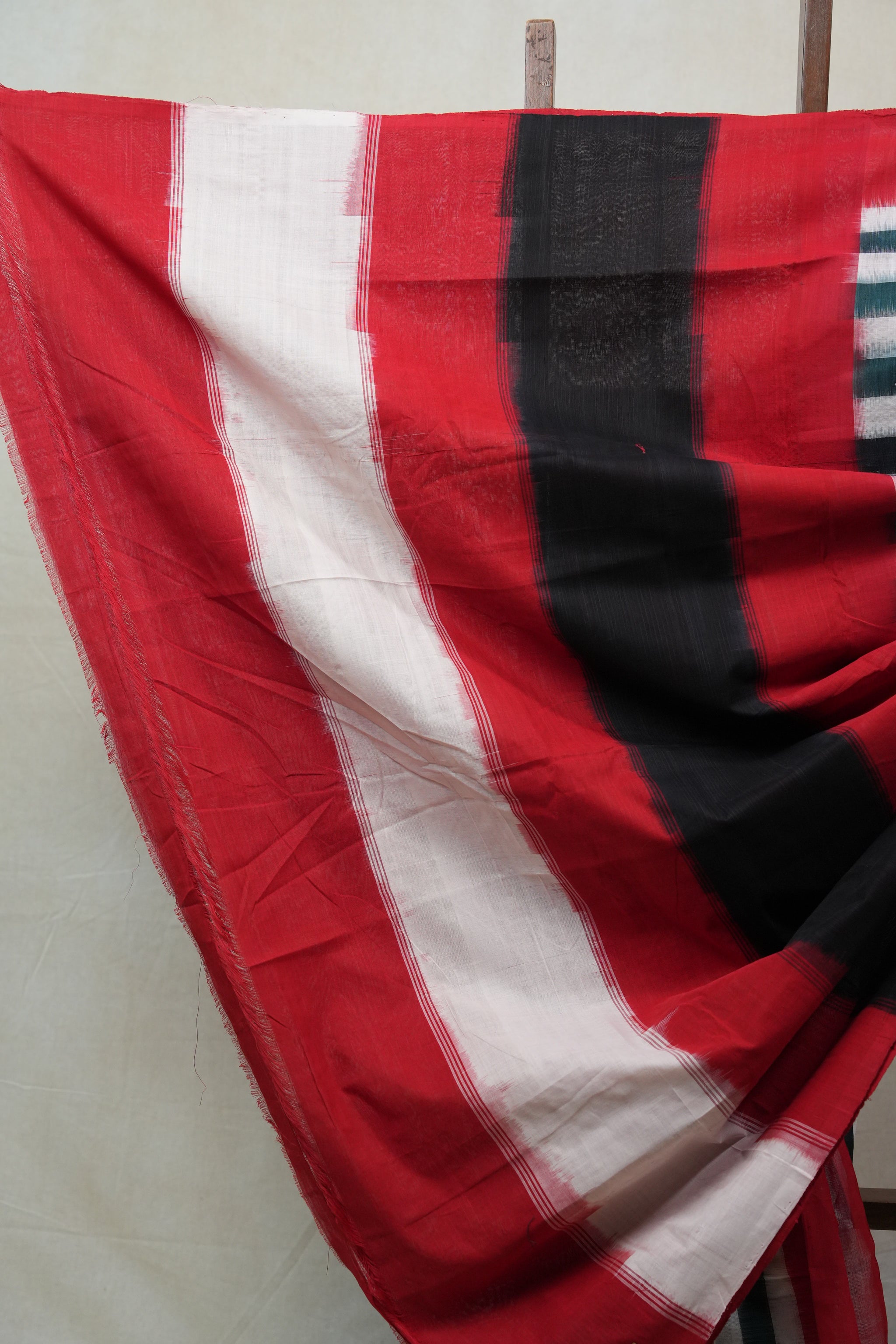 White-Green Pochampalli Cotton Ikat Saree - SRWGPCIS459