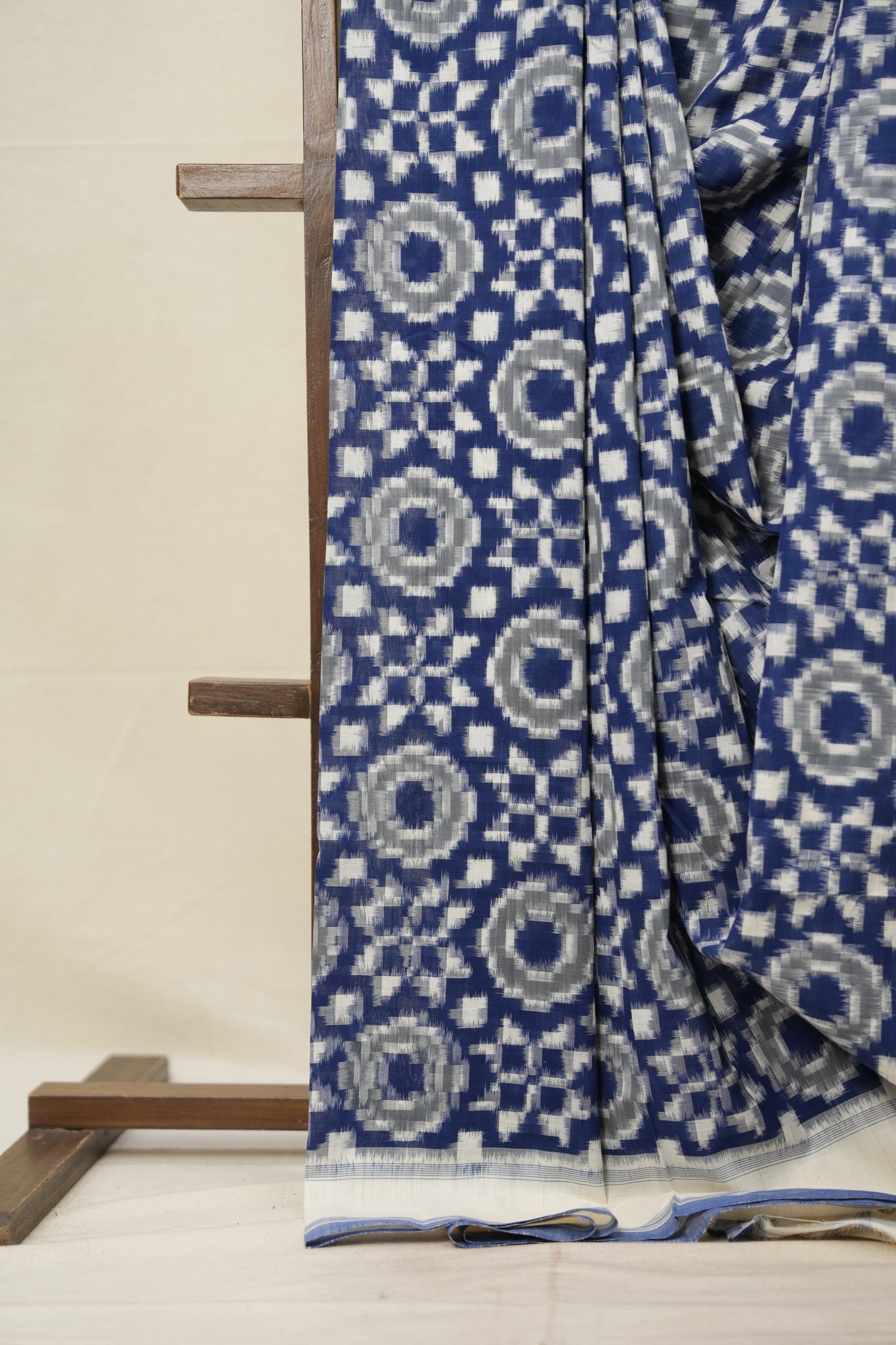 White Blue Pochampalli Cotton Ikat Saree - SRWBPCIS558