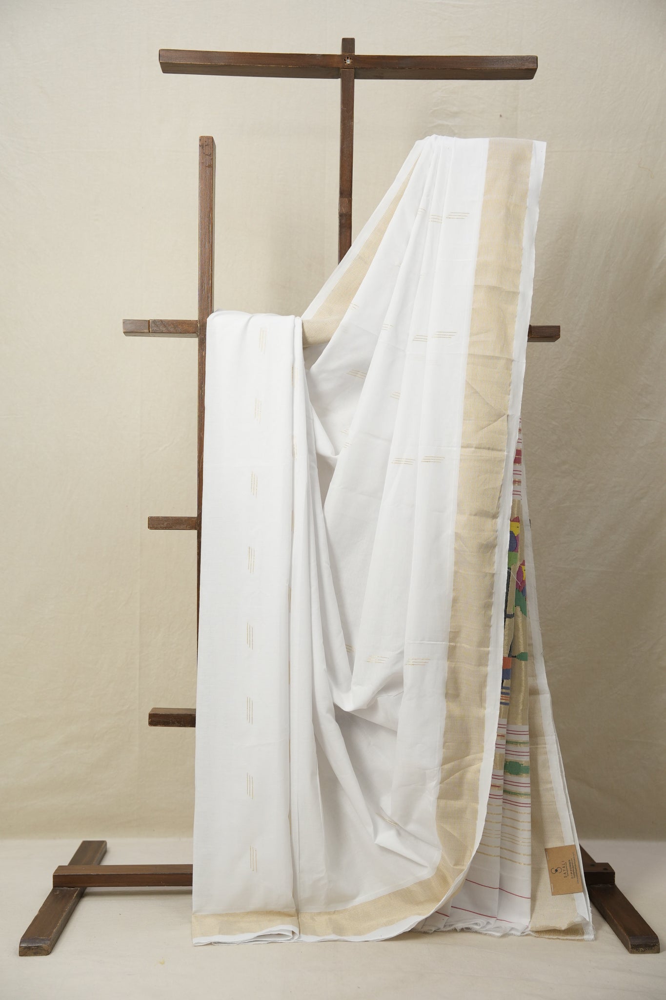 White Cotton Paithani Saree - SRWCPS683