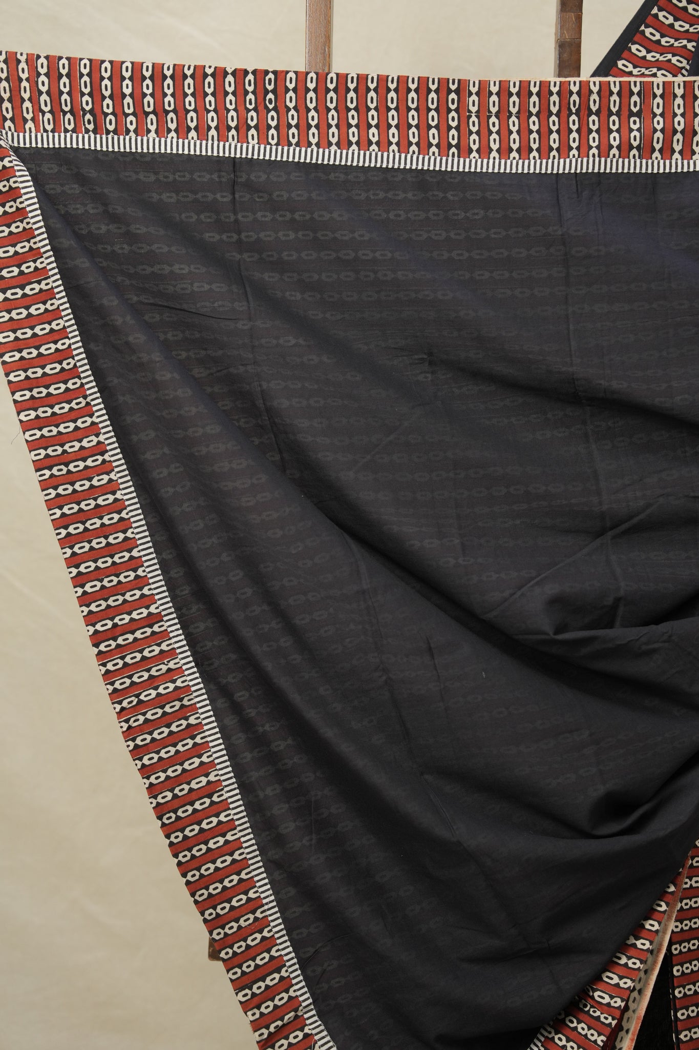Black Cotton Patchwork Saree - SRBCPS283