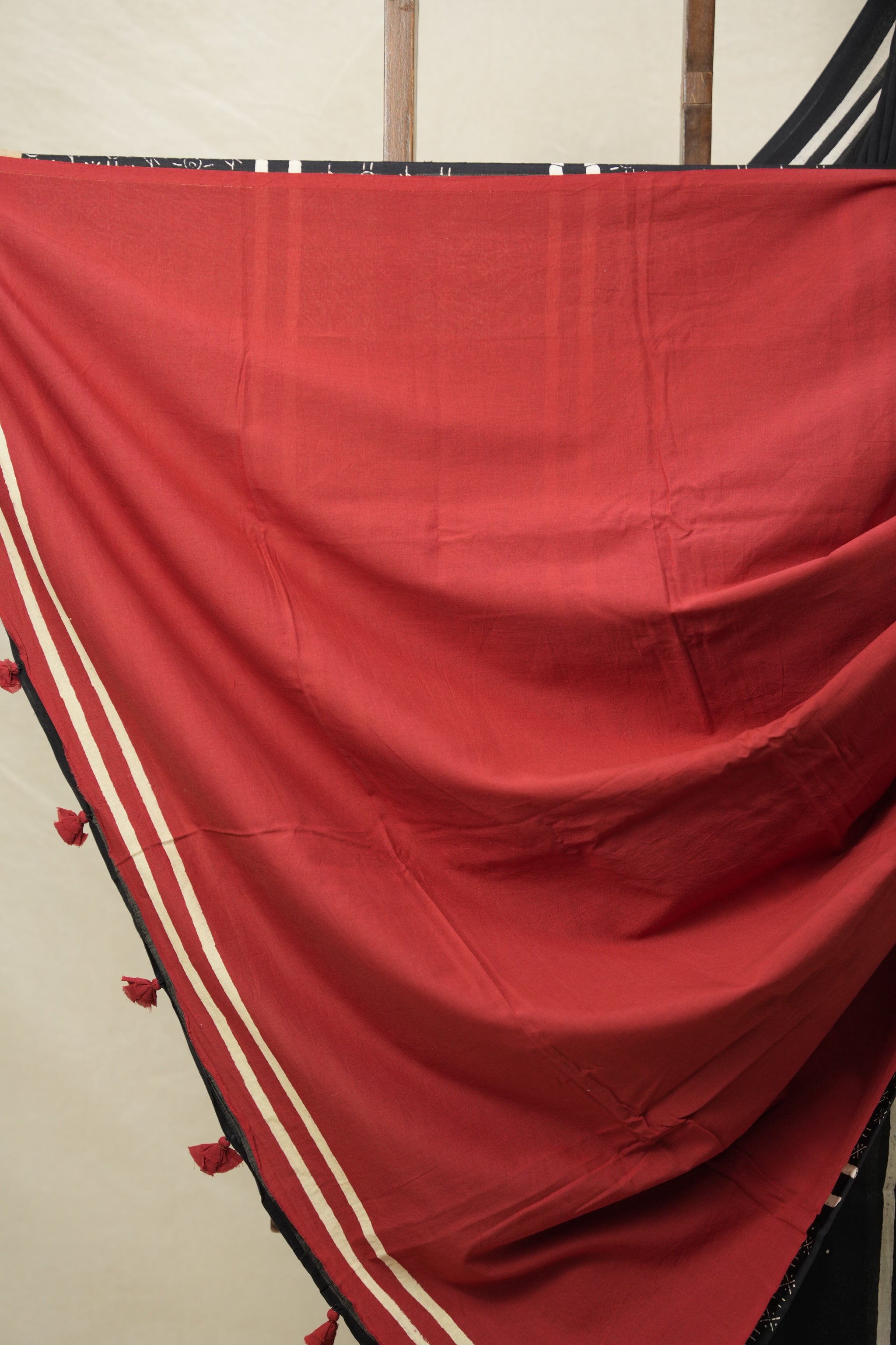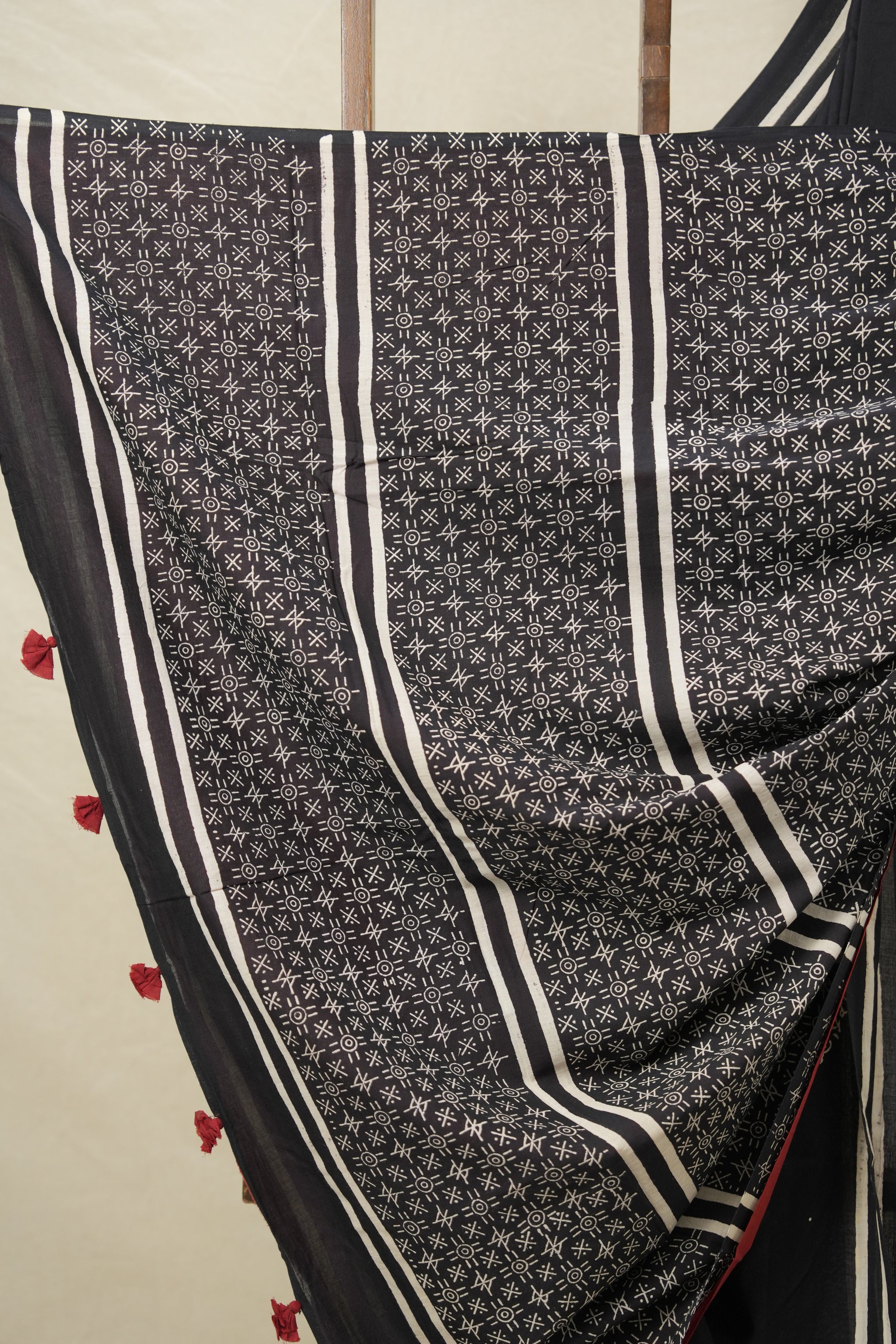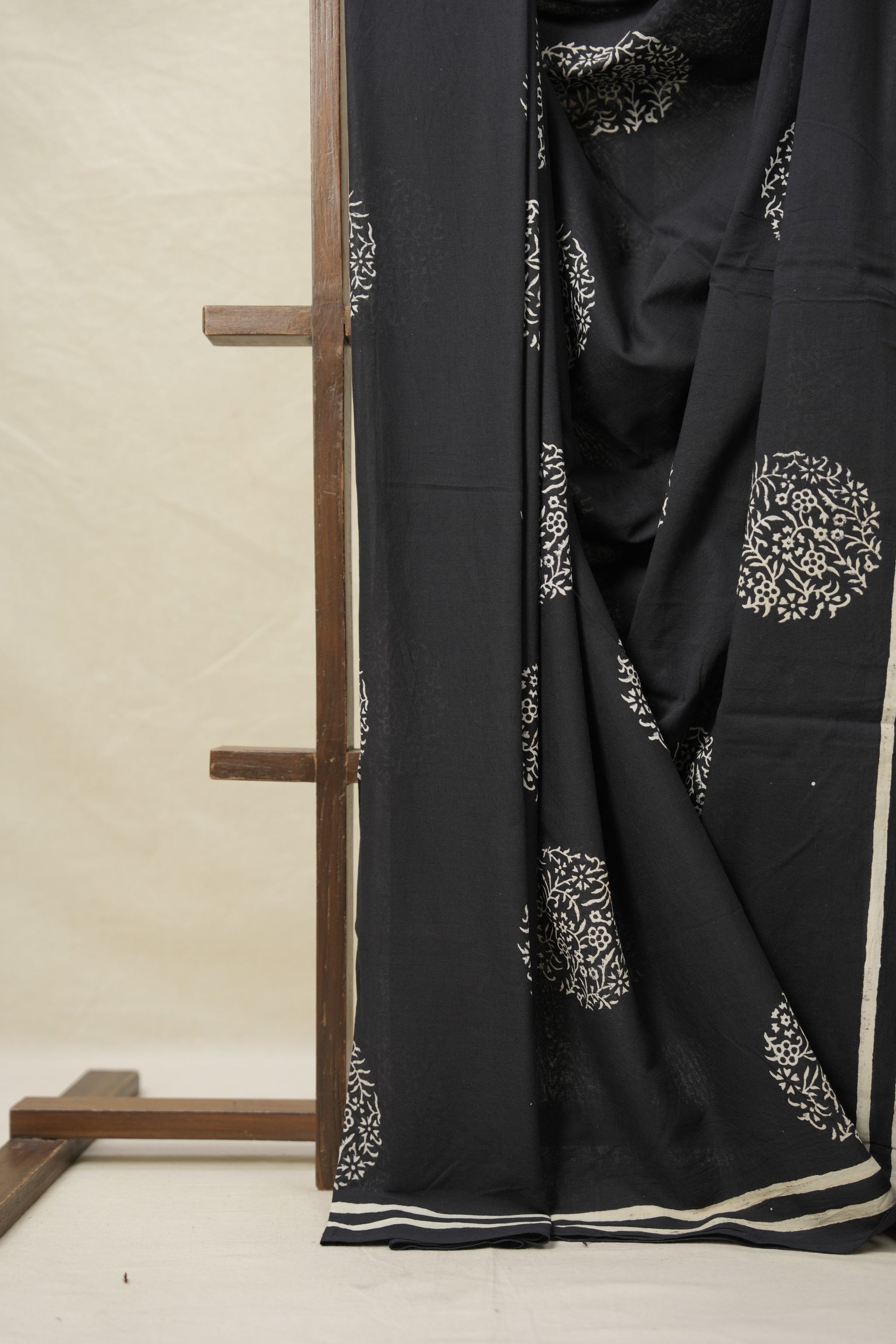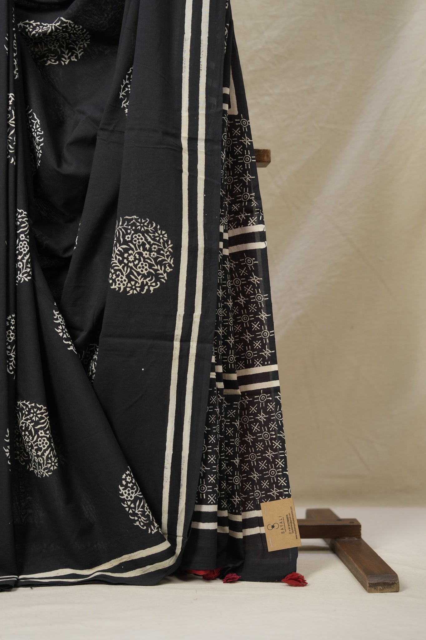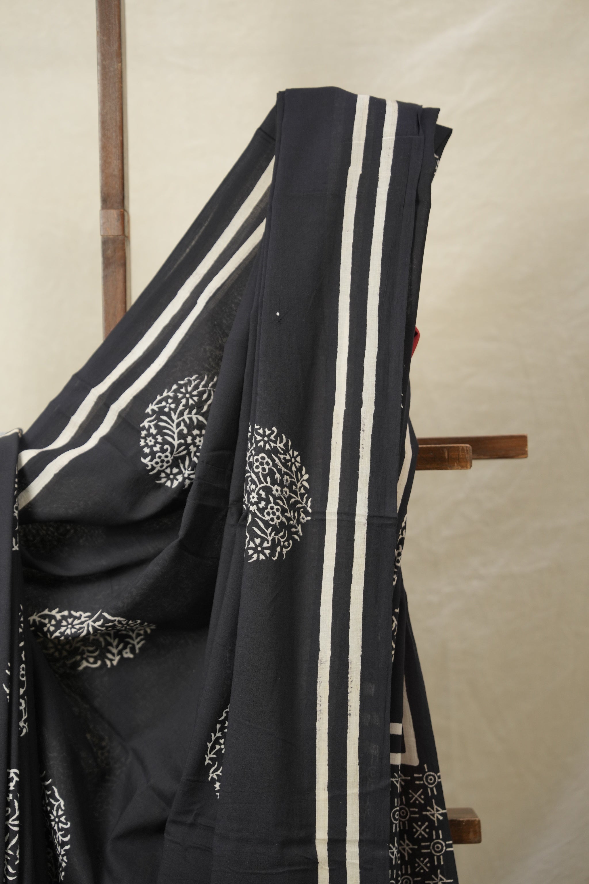 Work - Contrast blouse handblock print saree.
