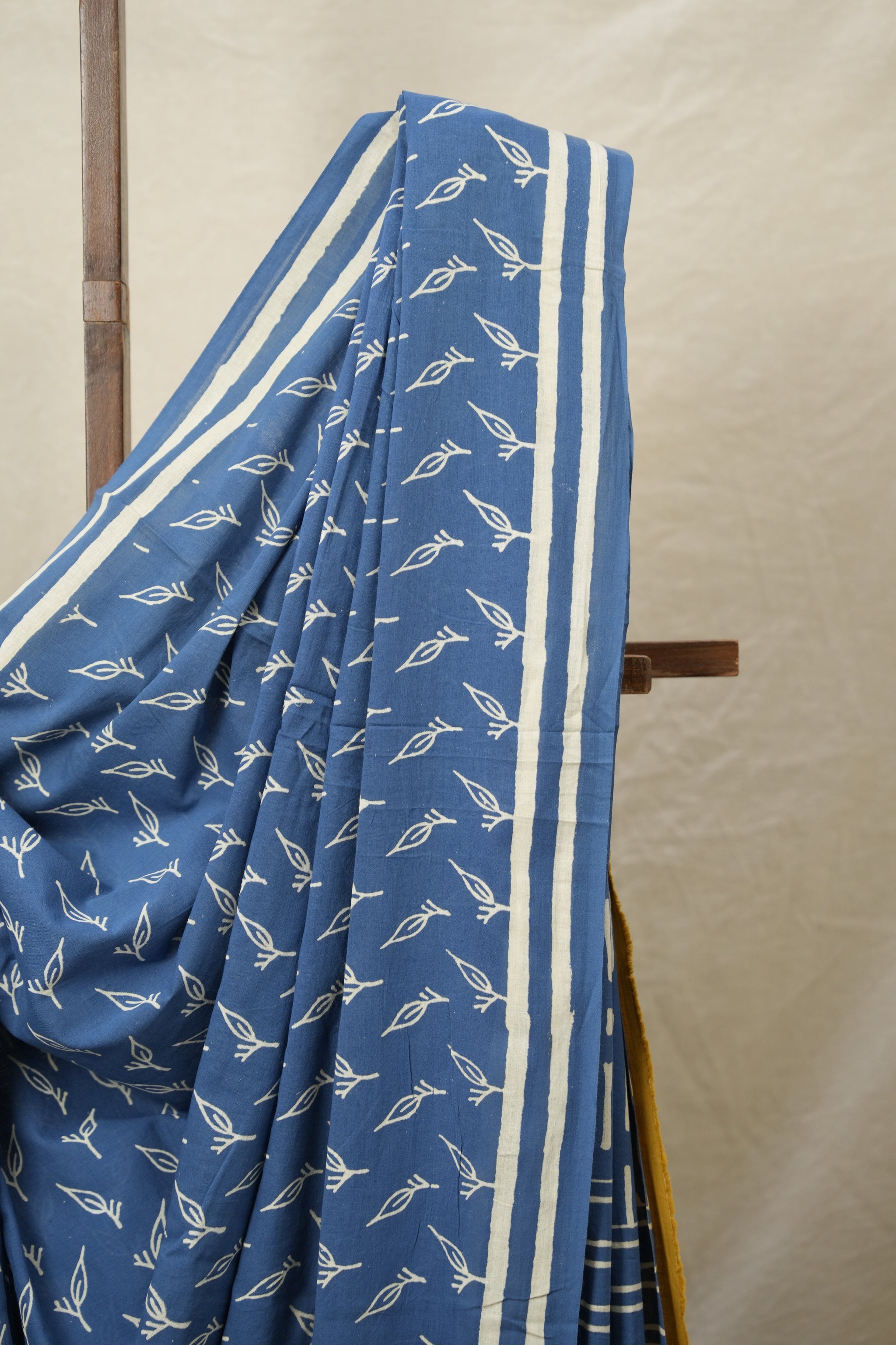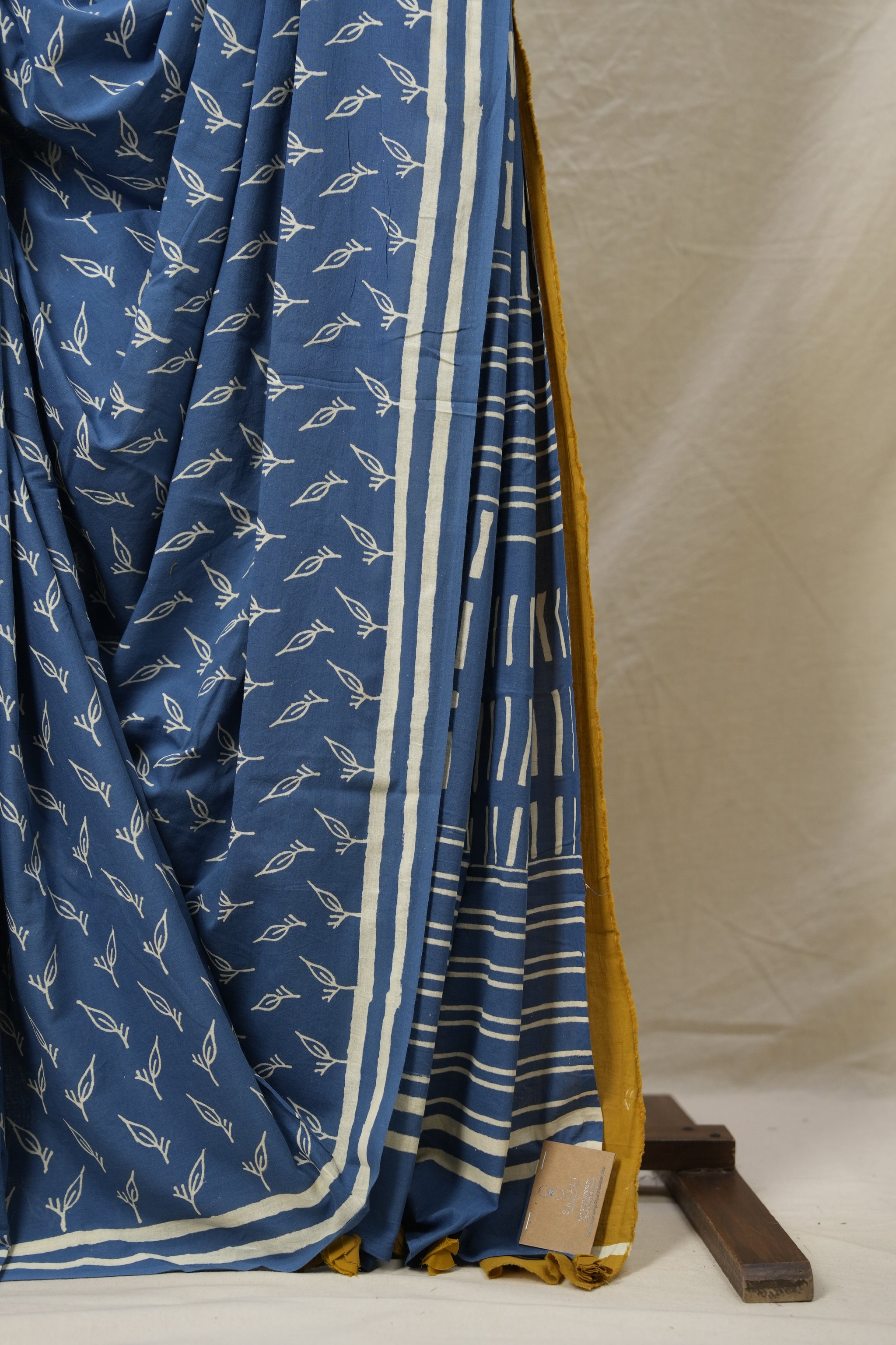 Work - Pastel color saree with contrast blouse handblock print saree.
