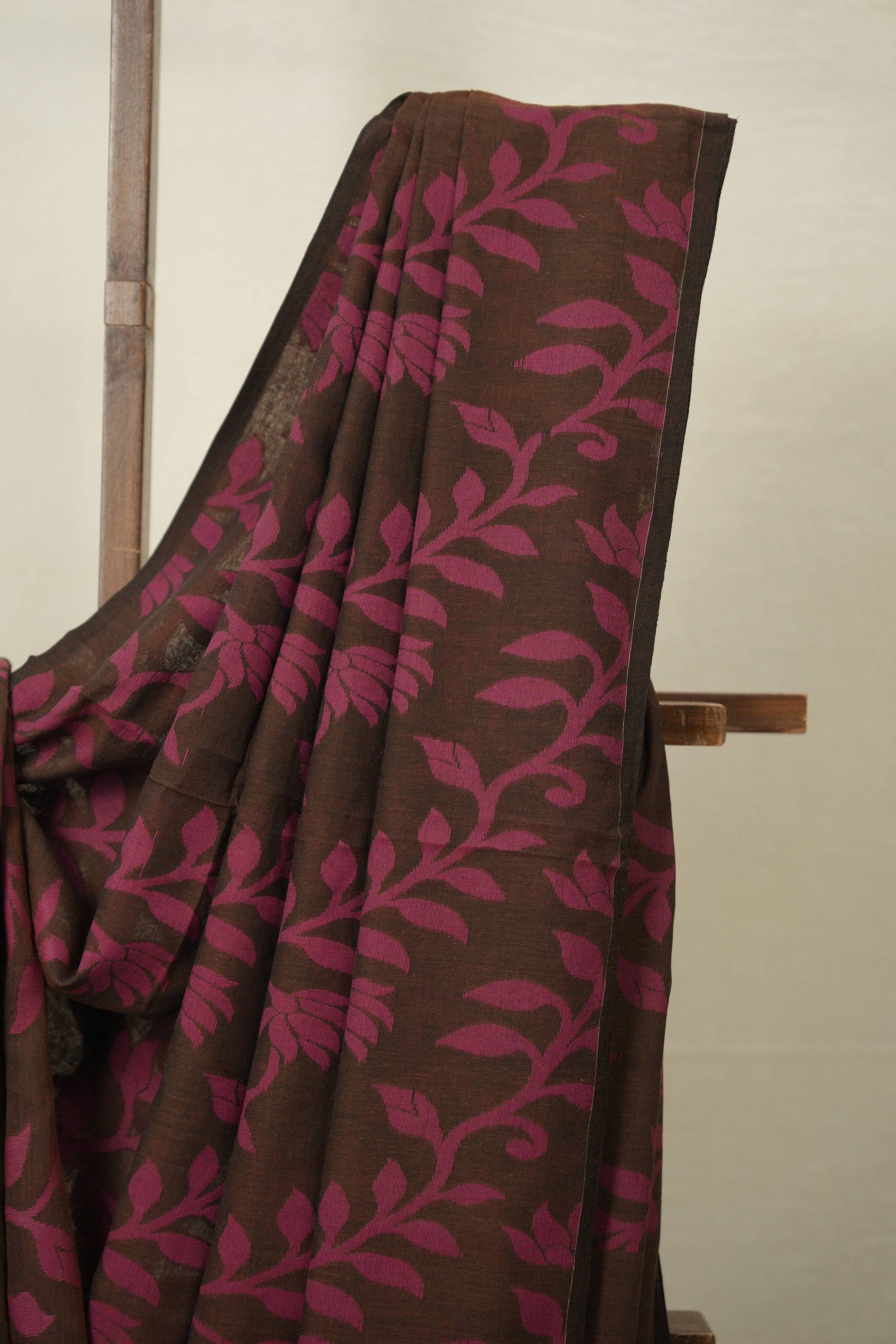 Work - Features subtle abstract motifs on the saree with a refined plain colour border and delicate flower patterns on the pallu.