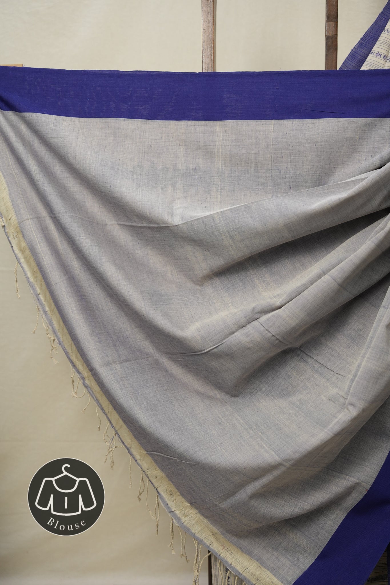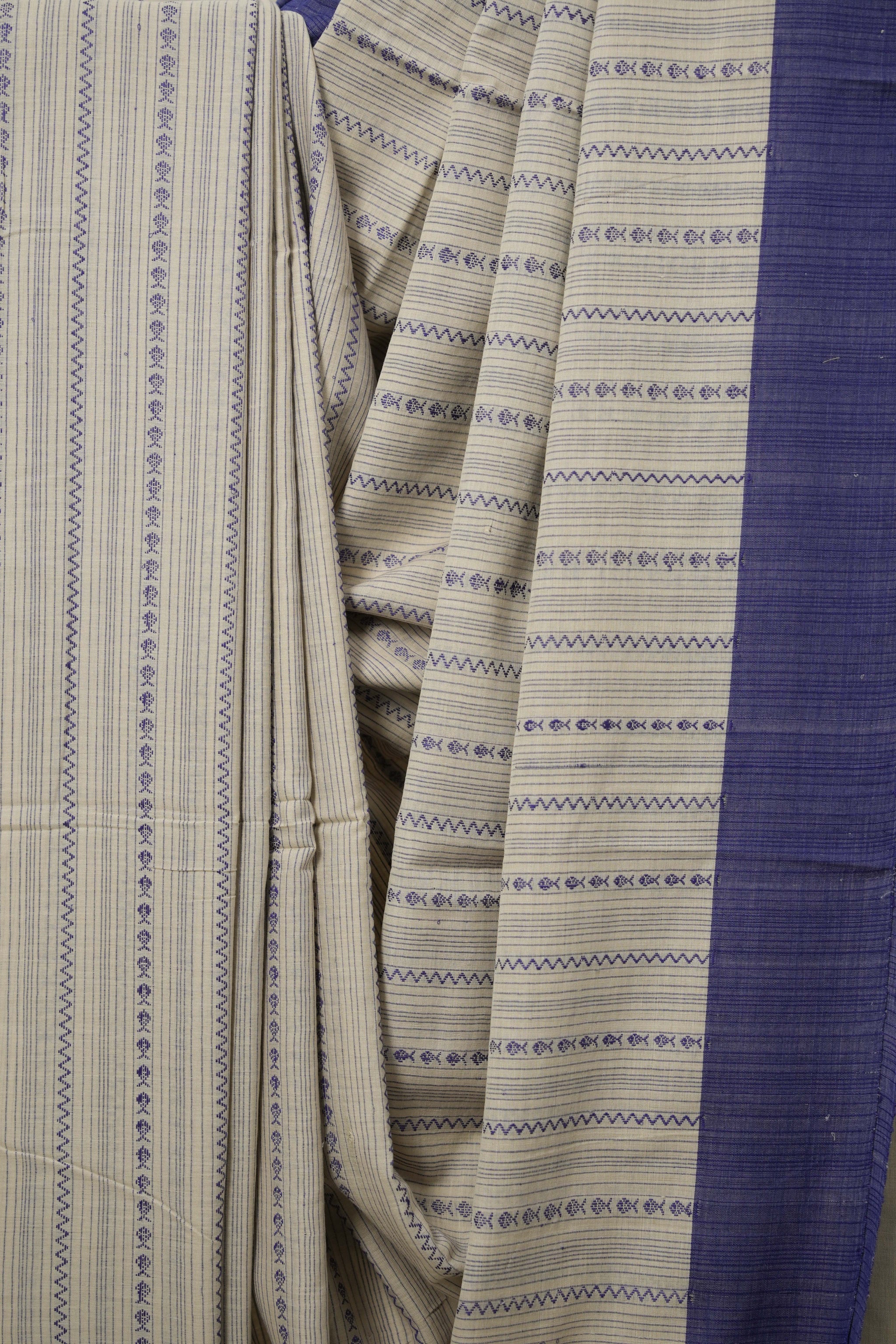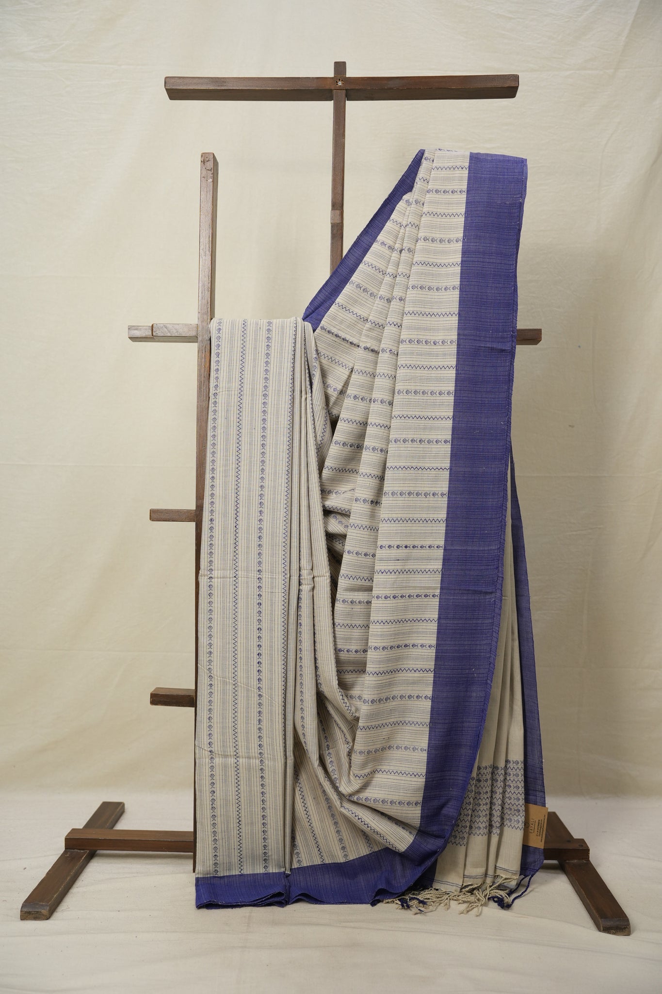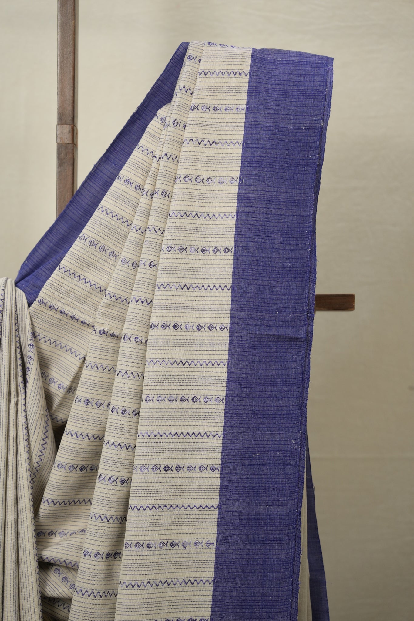 Cream Blue Bengal Cotton Saree - SRCBBCS100