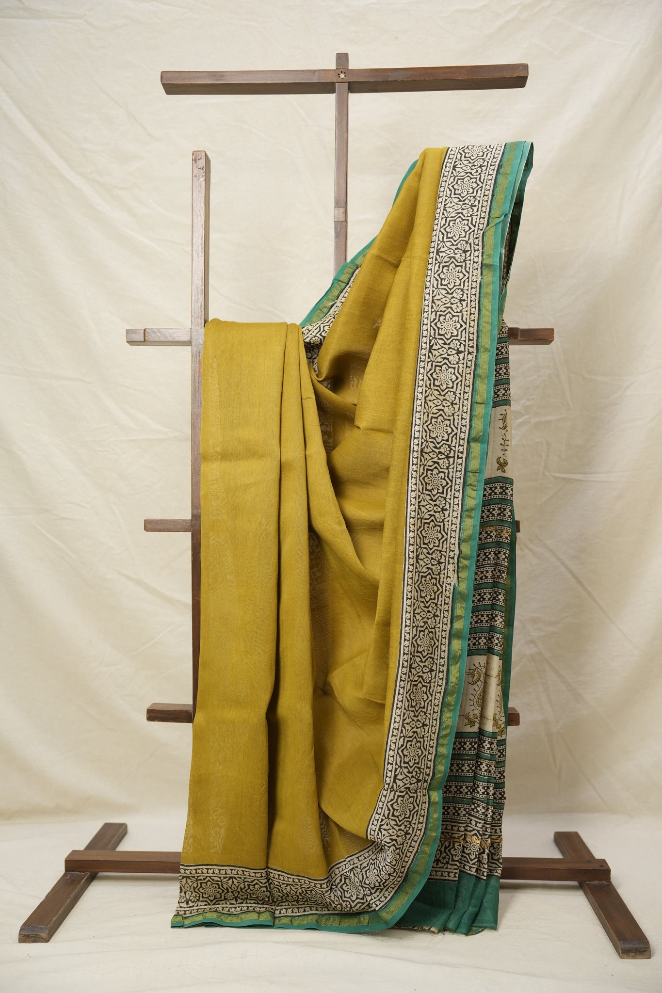 Dark Yellow HBP Cotton Silk Saree With Chanderi Border - SRDYCSS1389