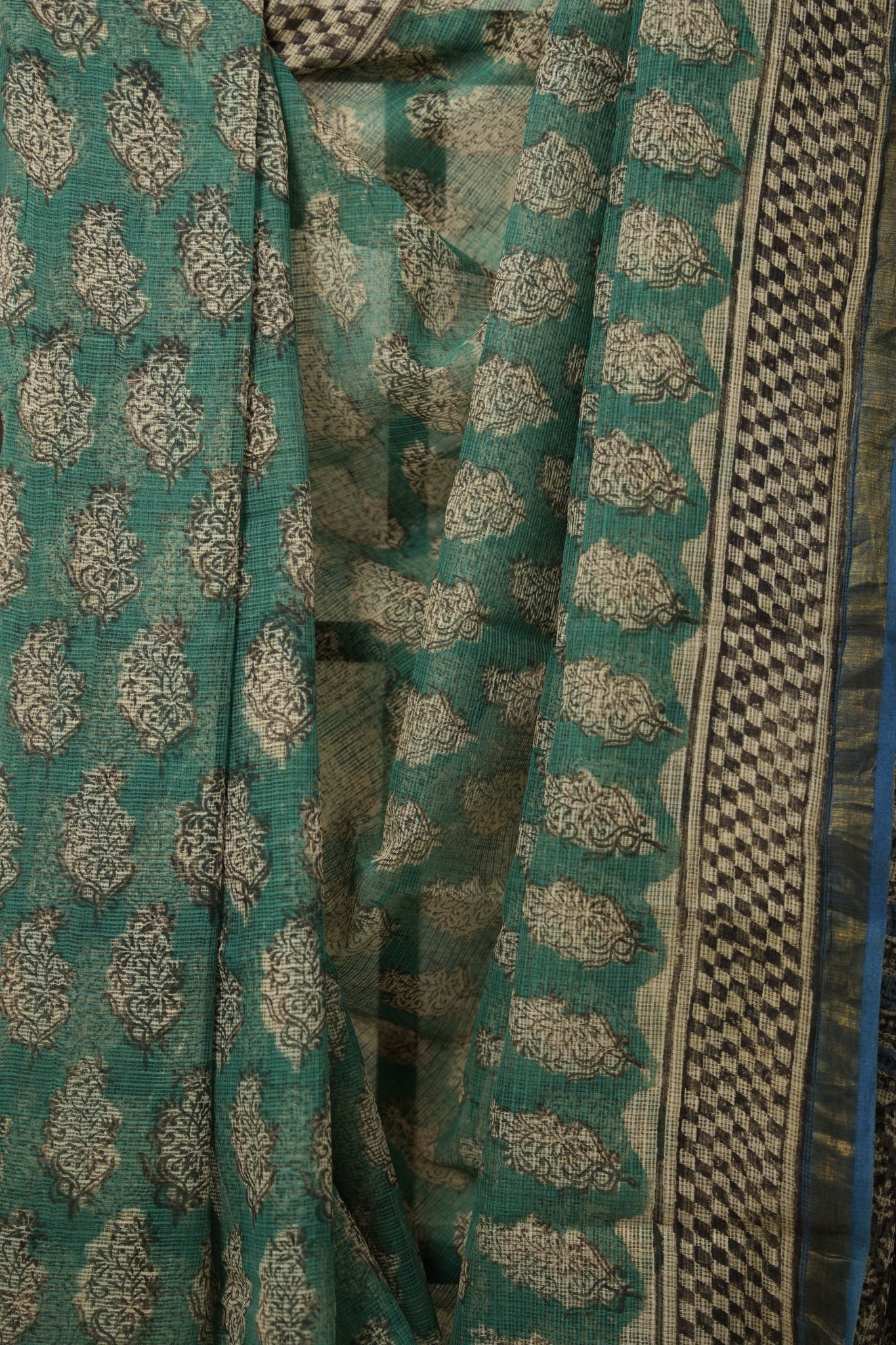 Grass Green HBP Kota Doria Saree - SRGGKDS214