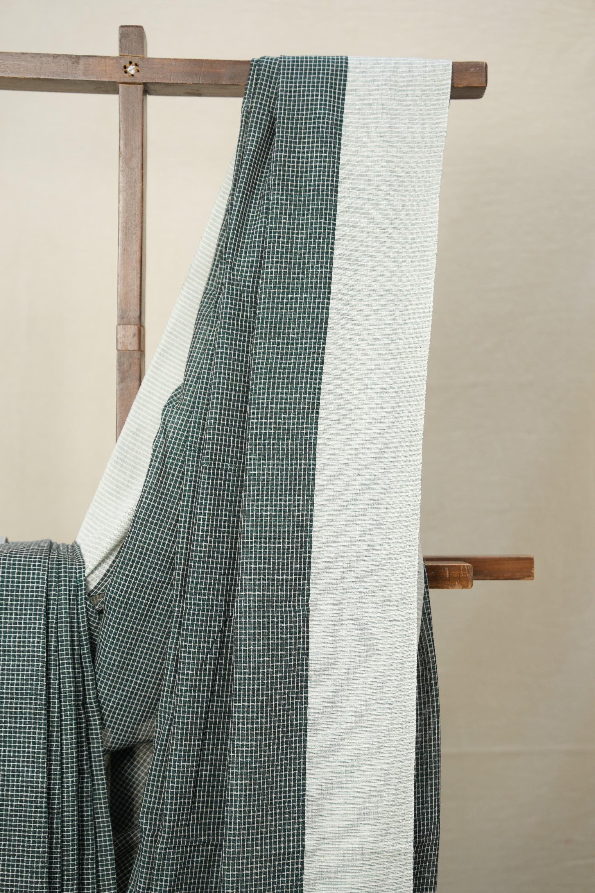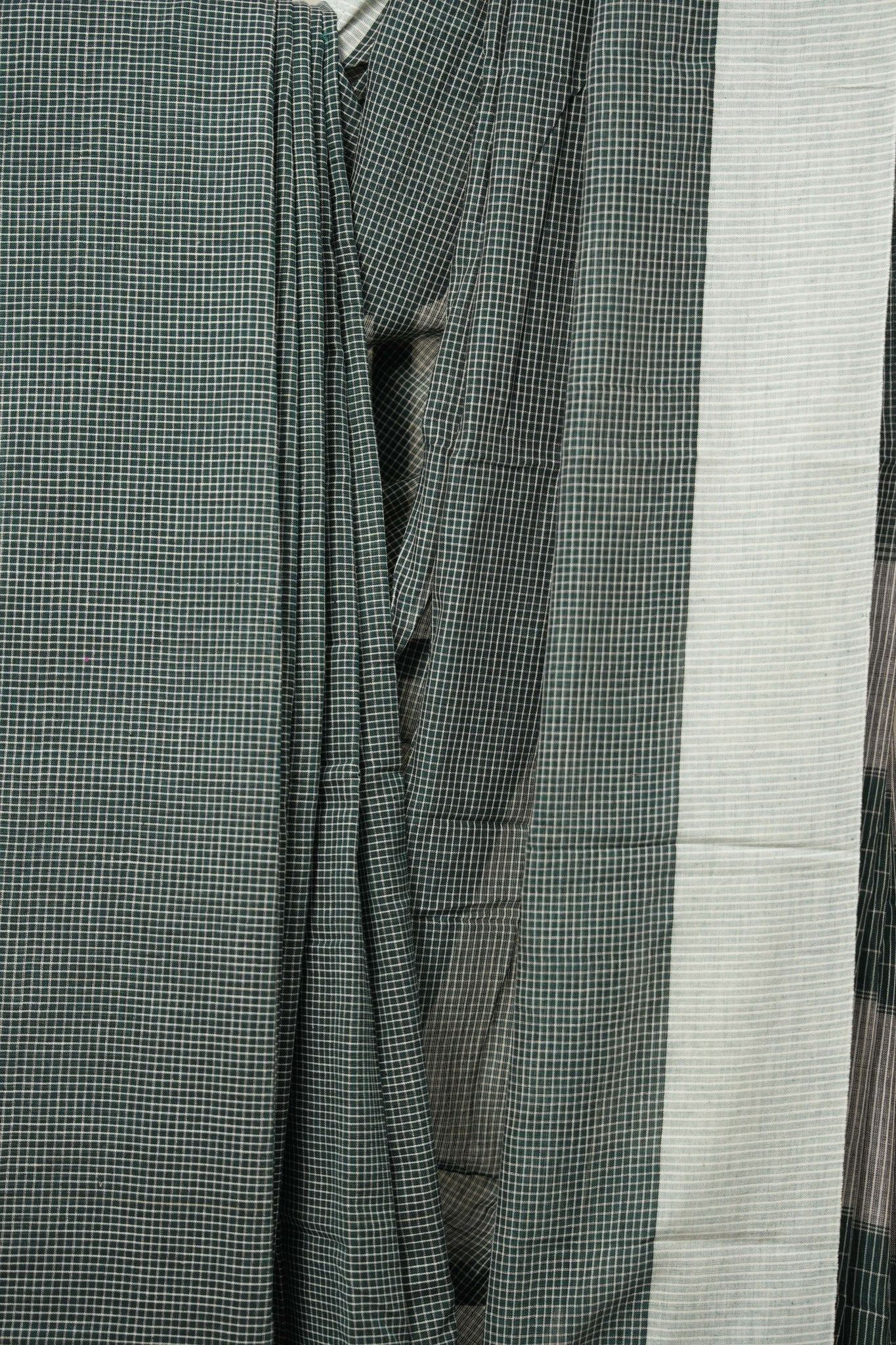 Green Checks Cotton Patteda Anchu Saree - SRGCCPAS298