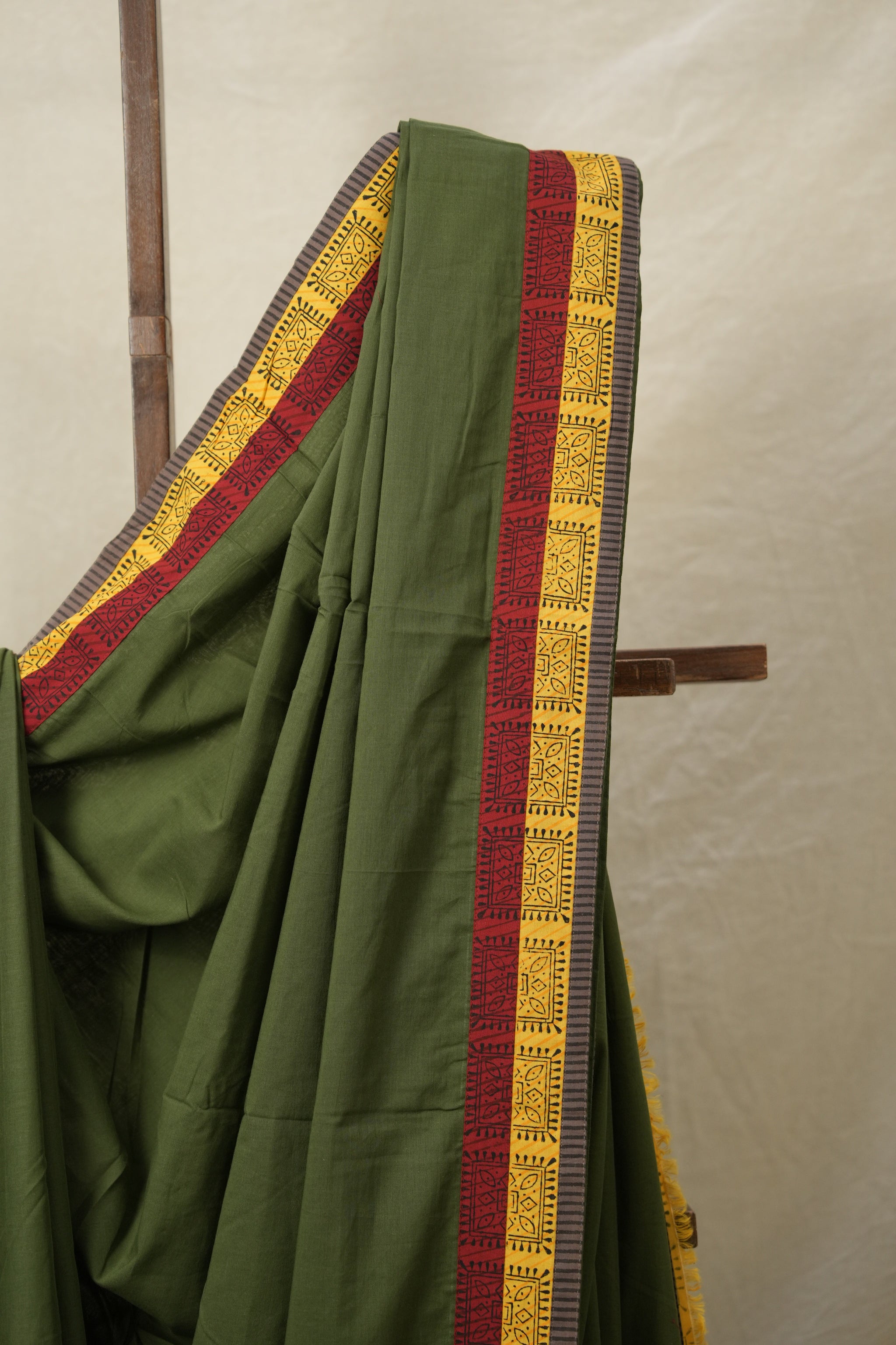 Green Cotton Patchwork Saree - SRGCPS281