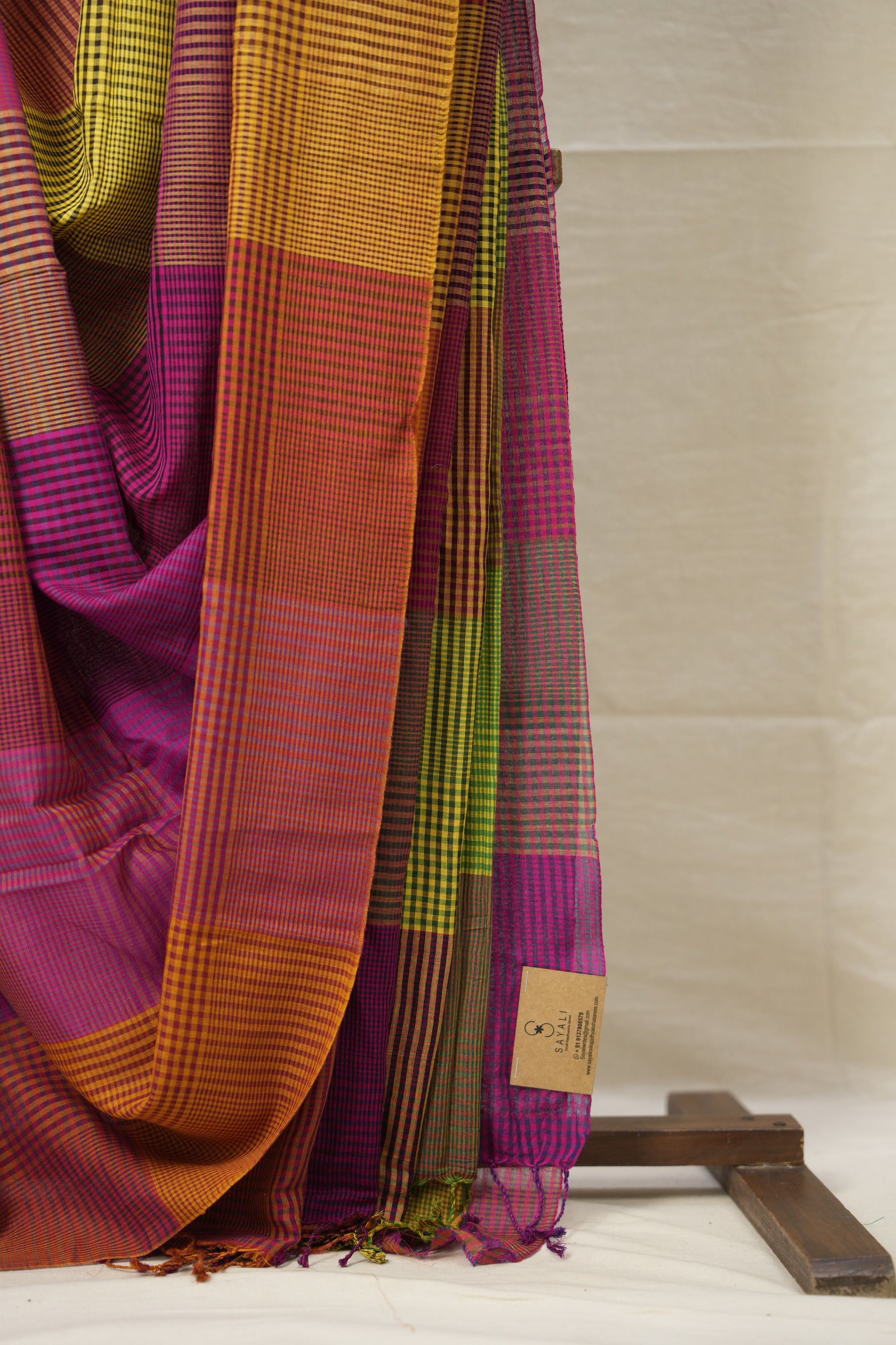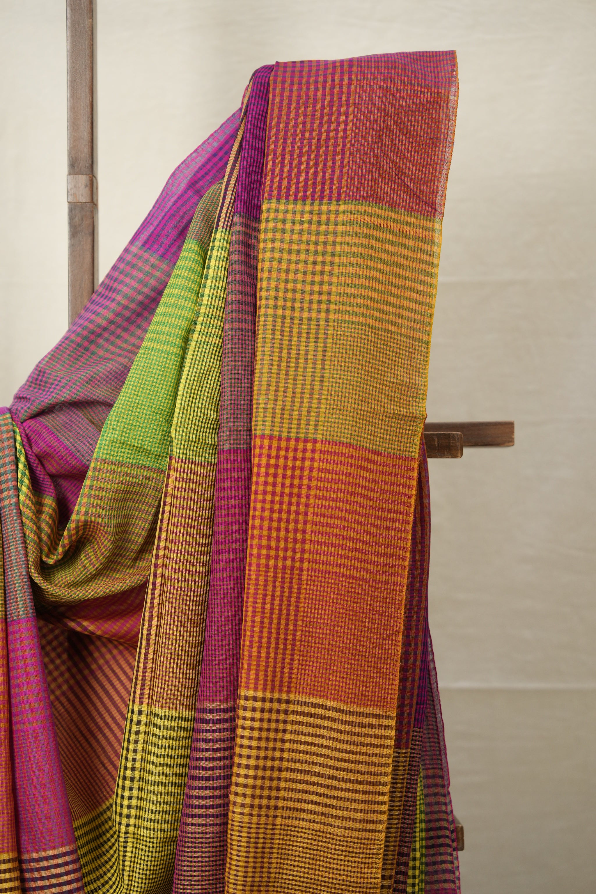 Green Pink Checks Bengal Cotton Saree - SRGPCBCS115