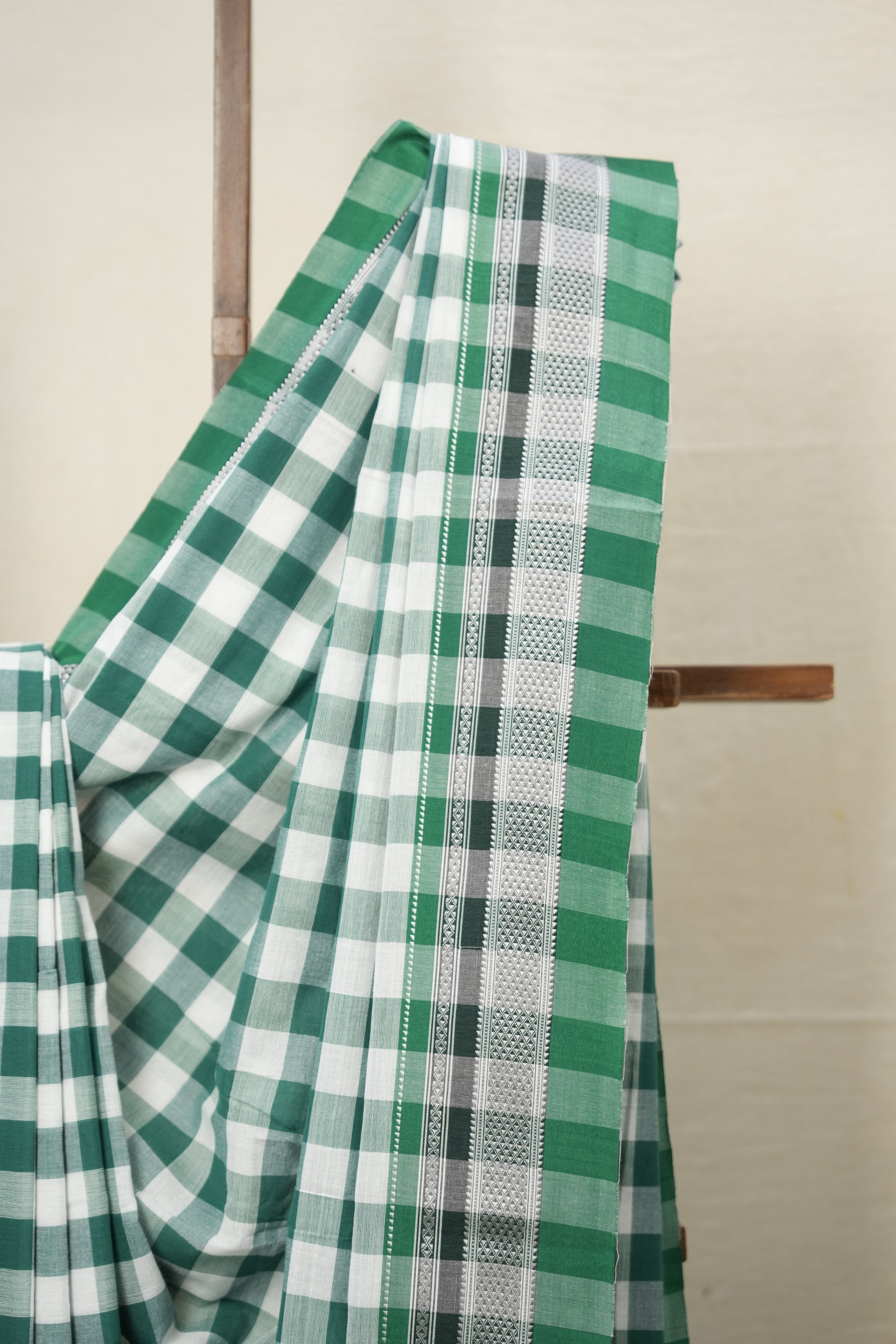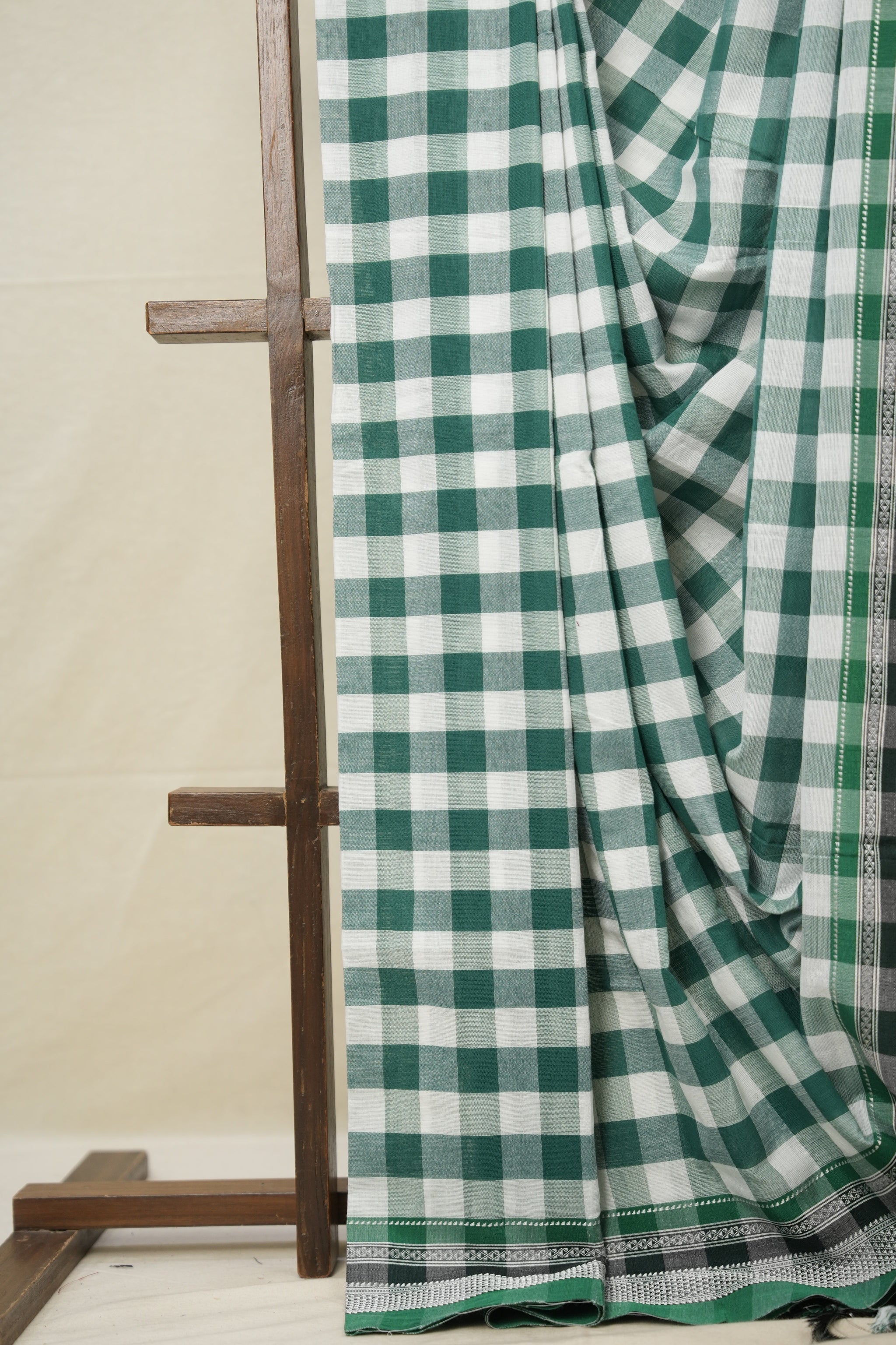 Green - White Checks Cotton Ilkal Saree with Chikki Border - SRGWCCIS628
