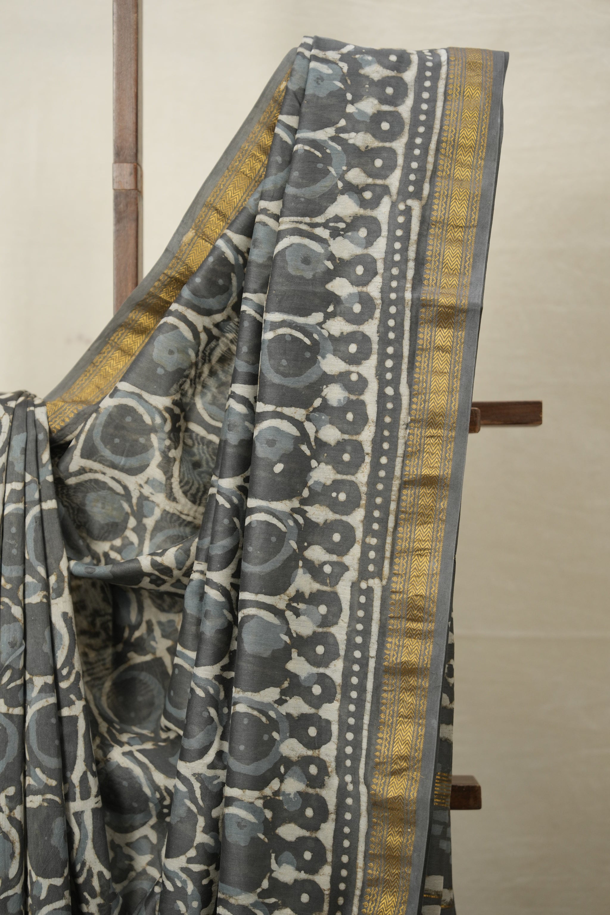 Grey HBP Cotton Silk Saree With Maheshwari Border - SRGCSS1386