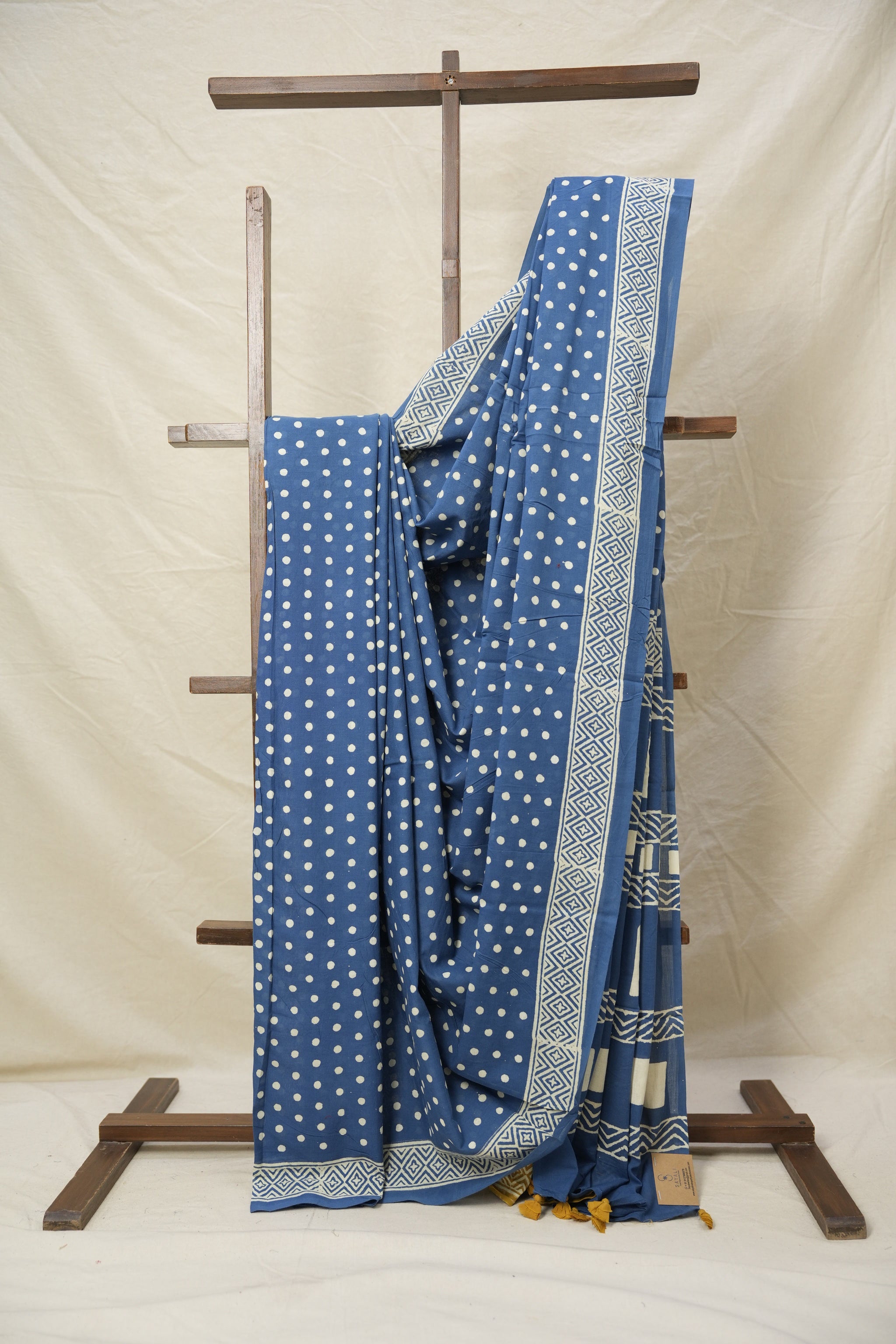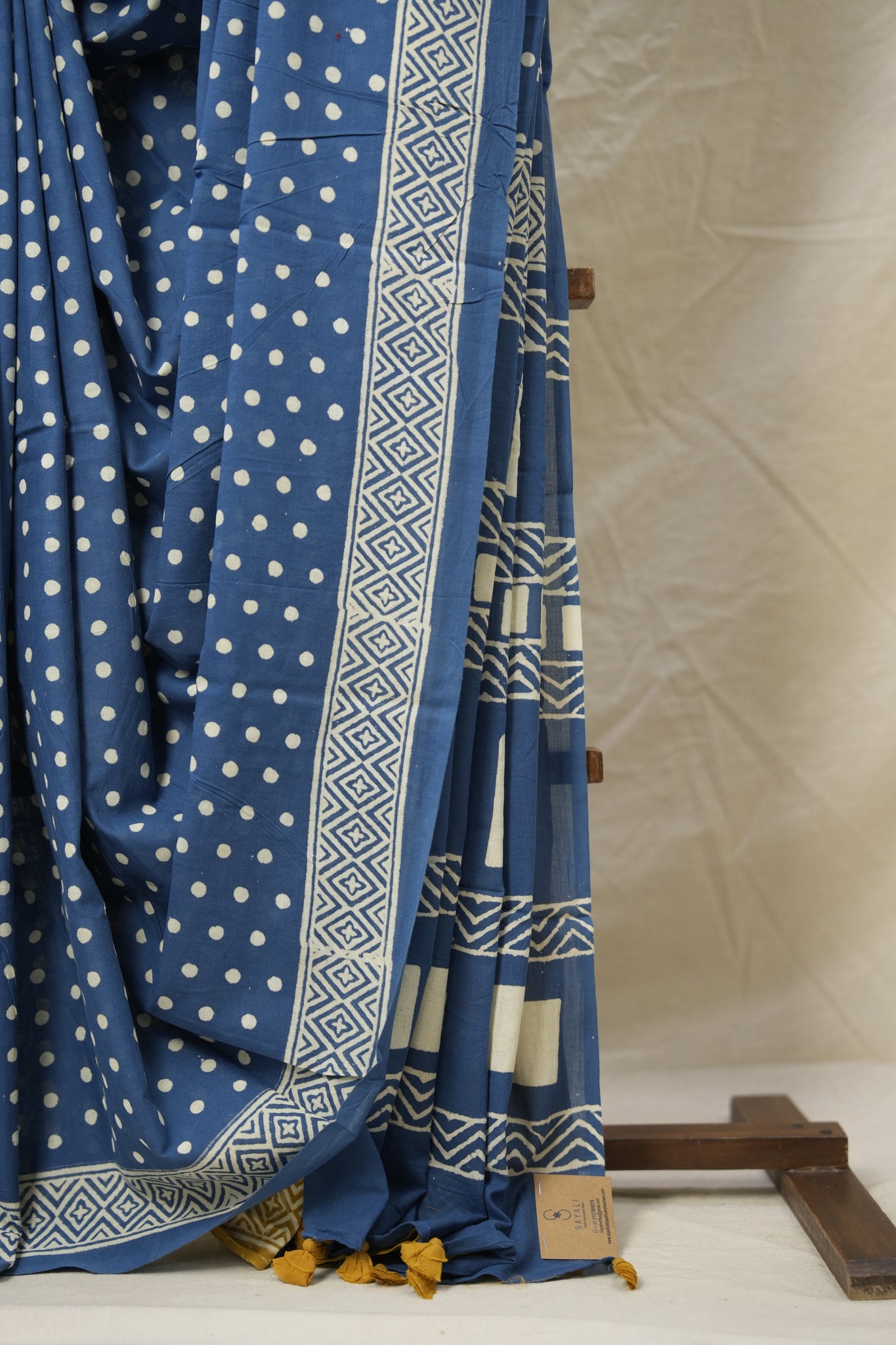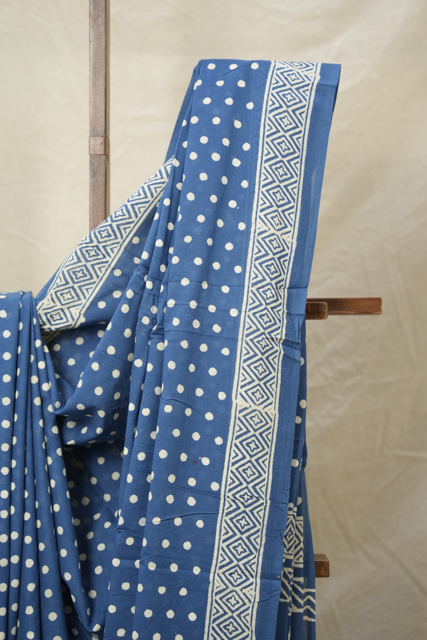 Indigo Blue HBP Cotton Saree - SRIBCS2982