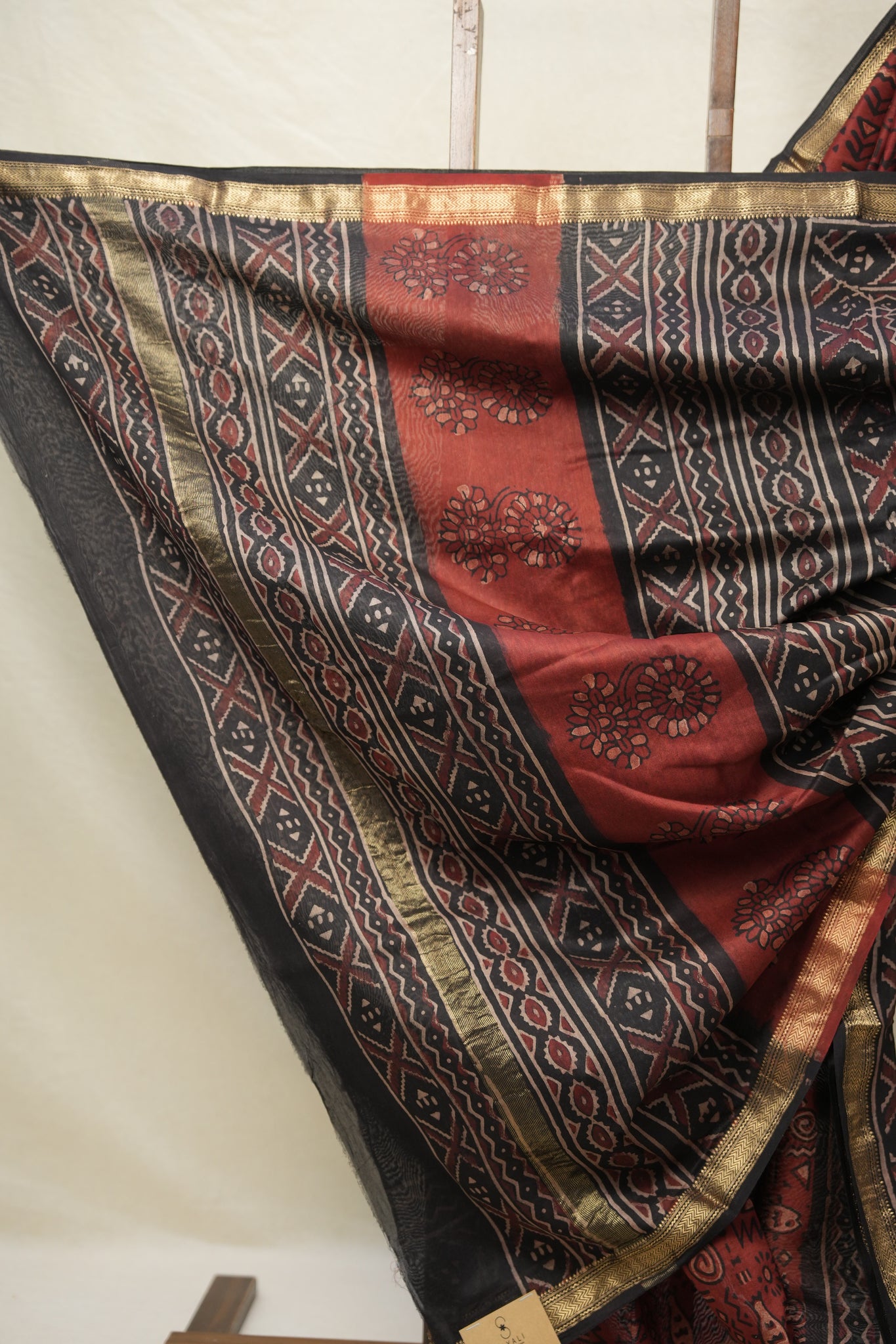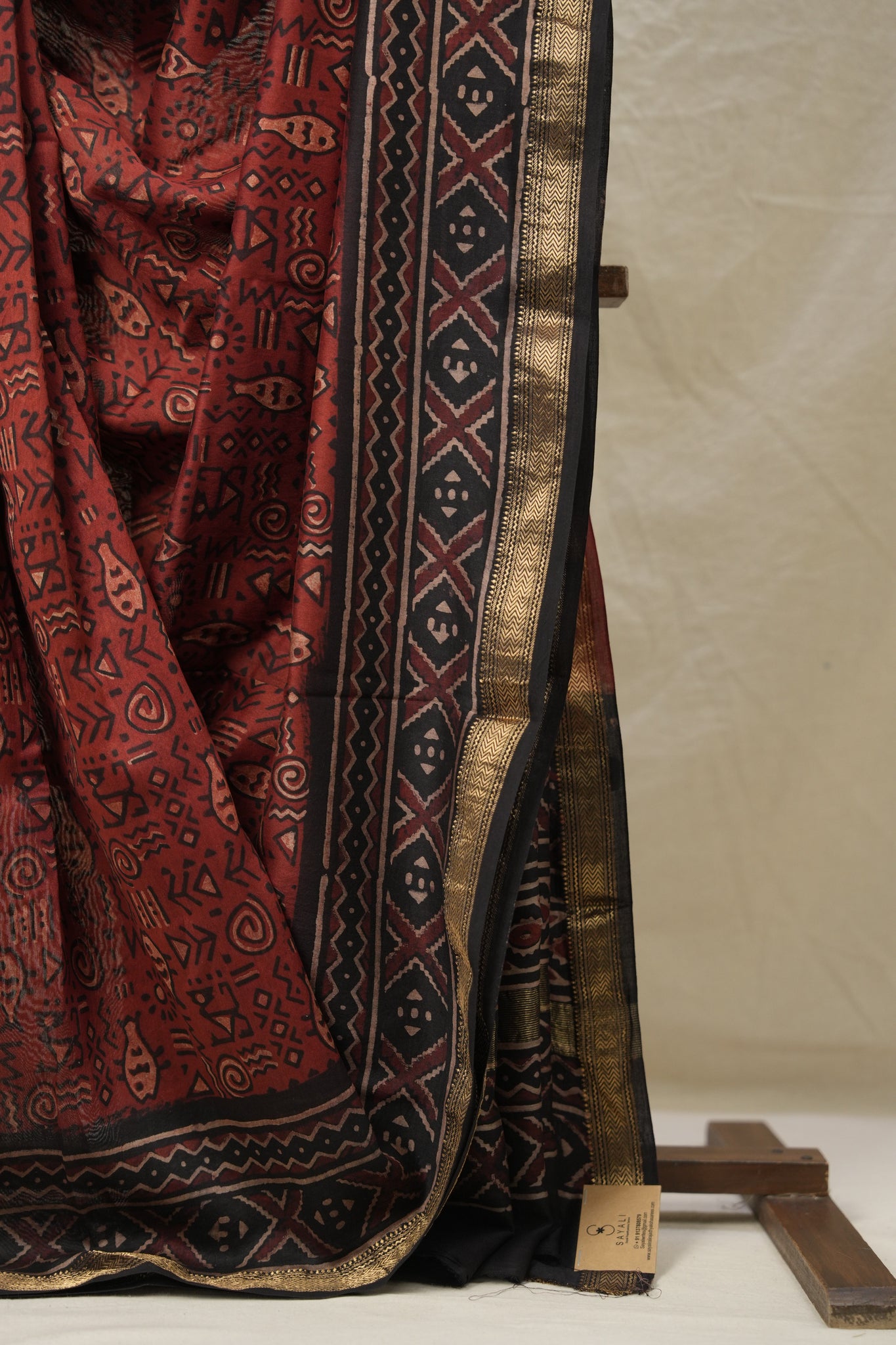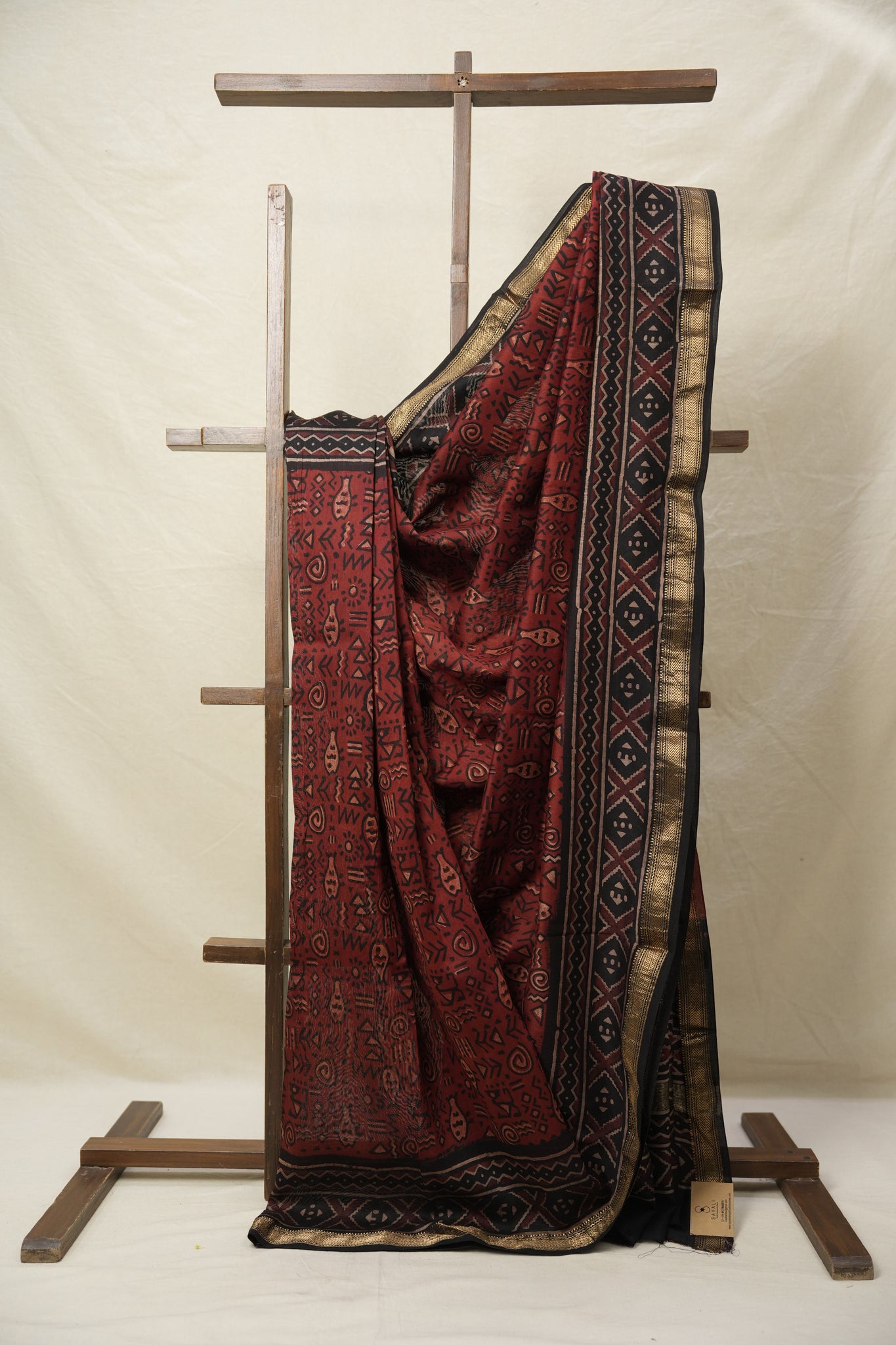 Maroon HBP Cotton Silk Saree With Maheshwari Border - SRMCSS1407