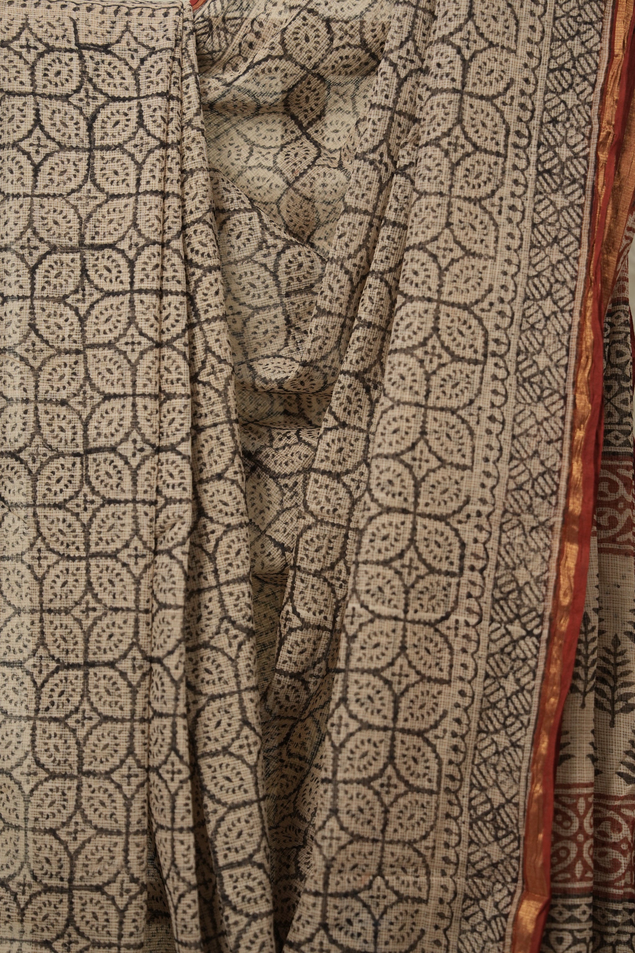 Work - Hand-Block Print kota doria sarees with contrast blouse and vibrant and fresh colors base.