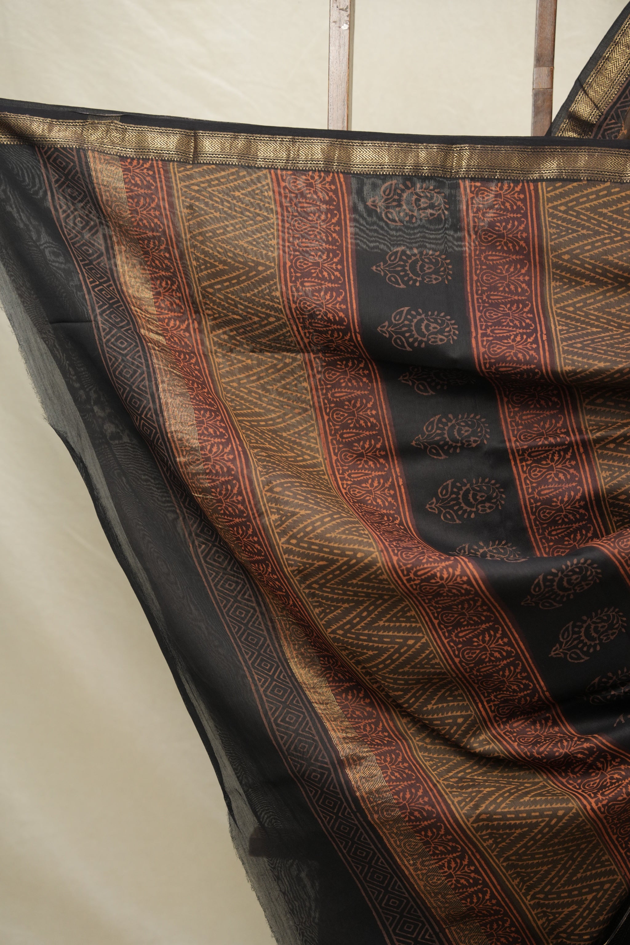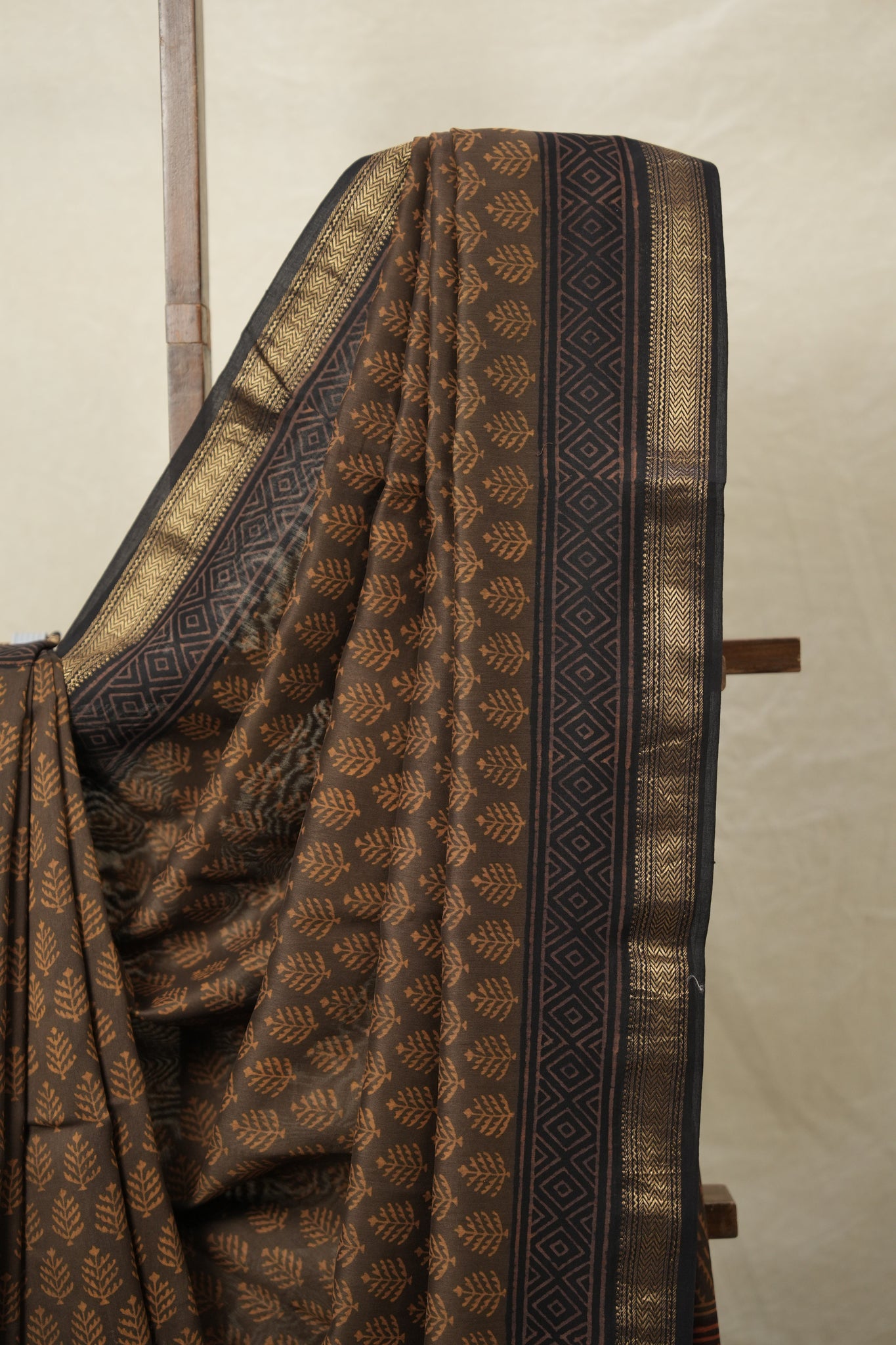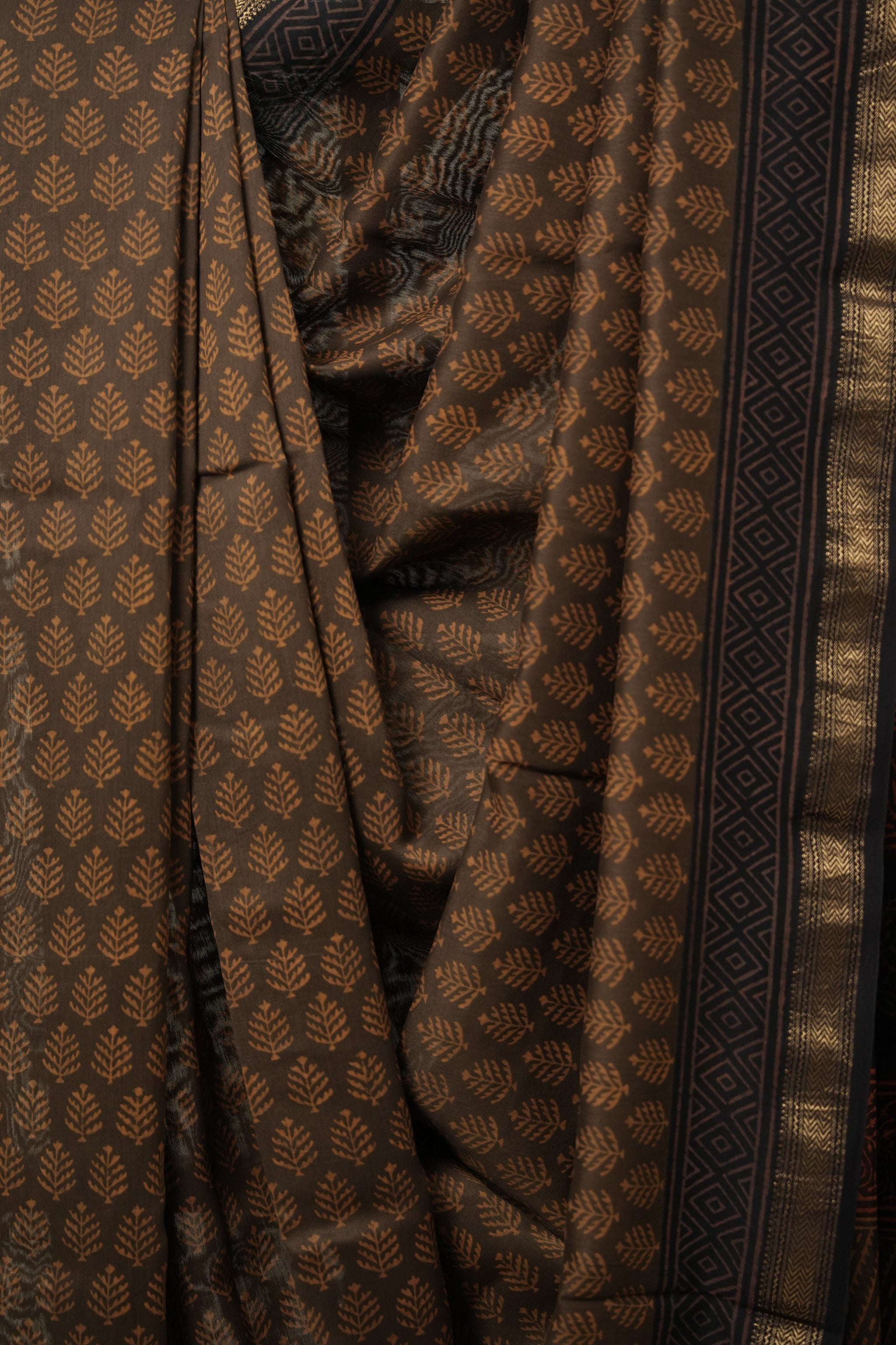 Moss Green HBP Cotton Silk Saree With Maheshwari Border - SRMGCSS1414