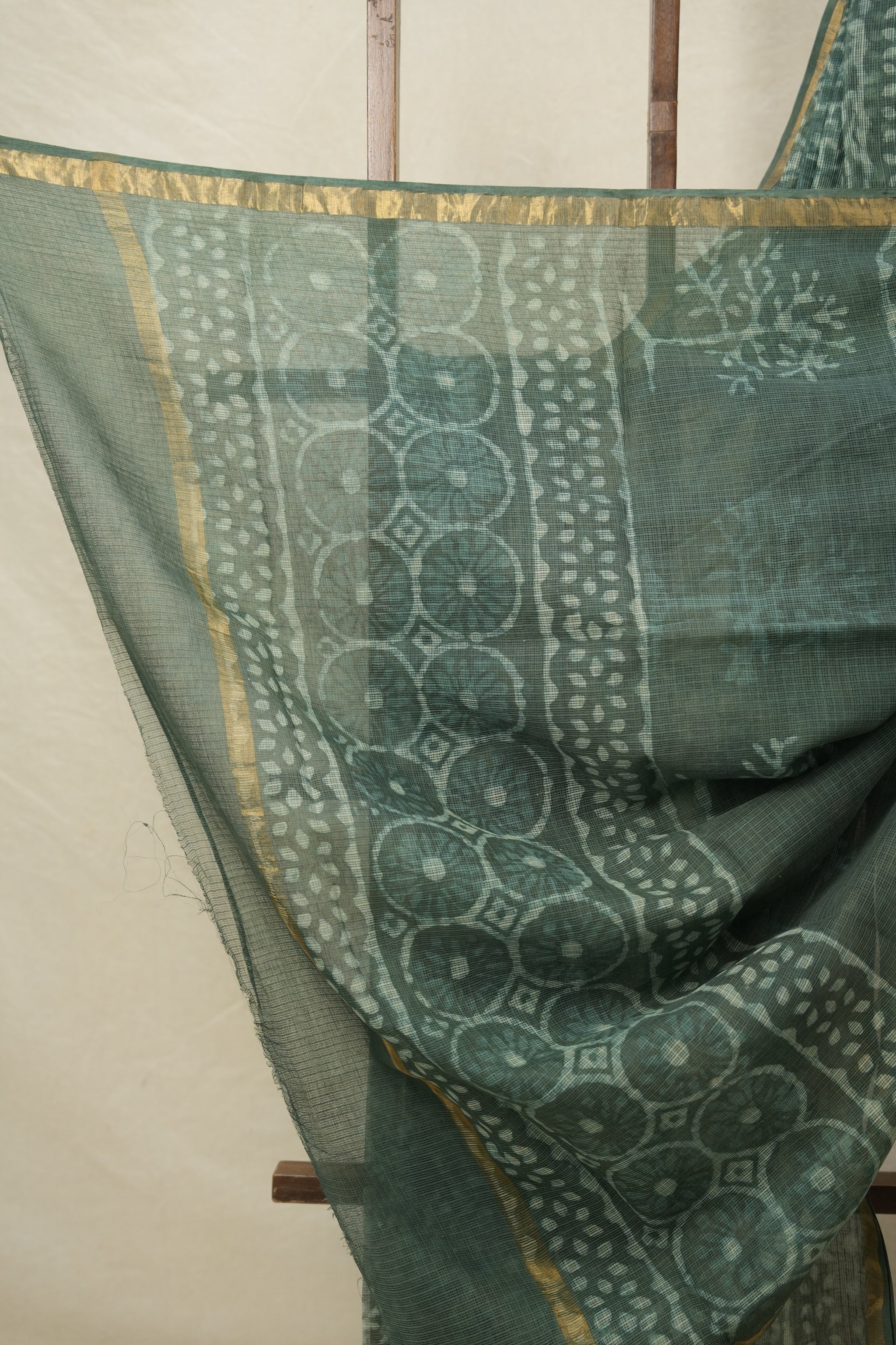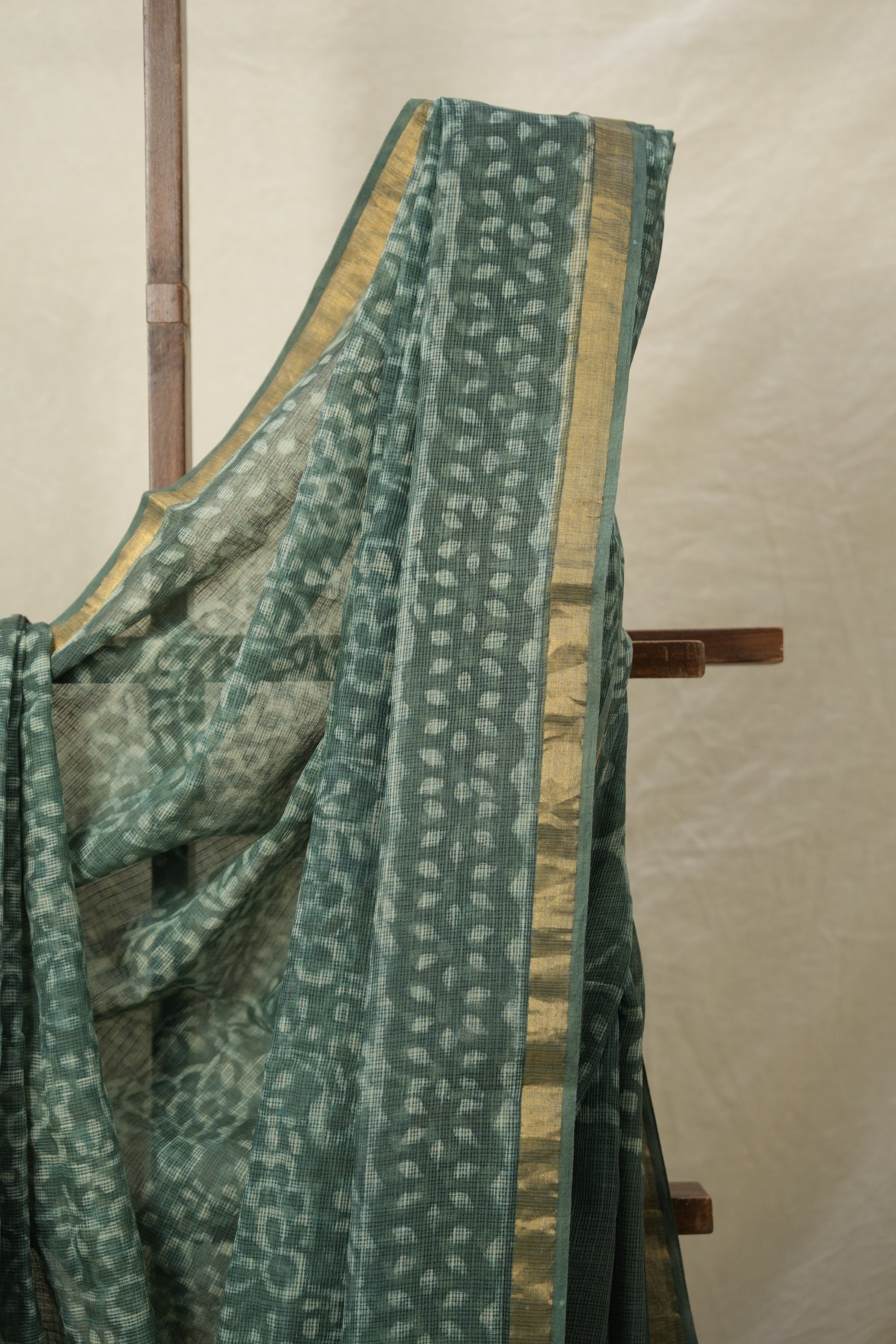 Moss Green HBP Kota Doria Saree - SRMGKDS232