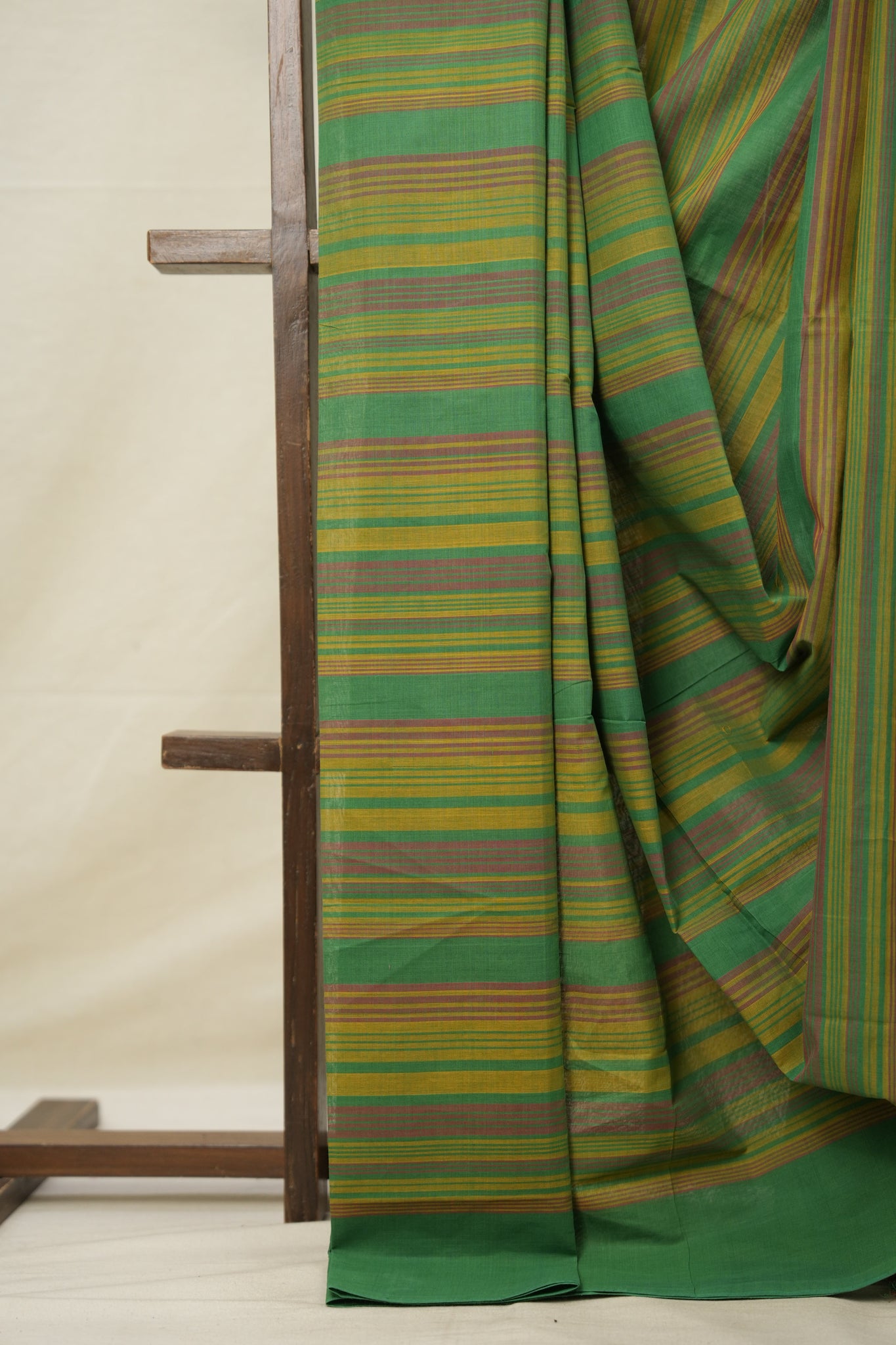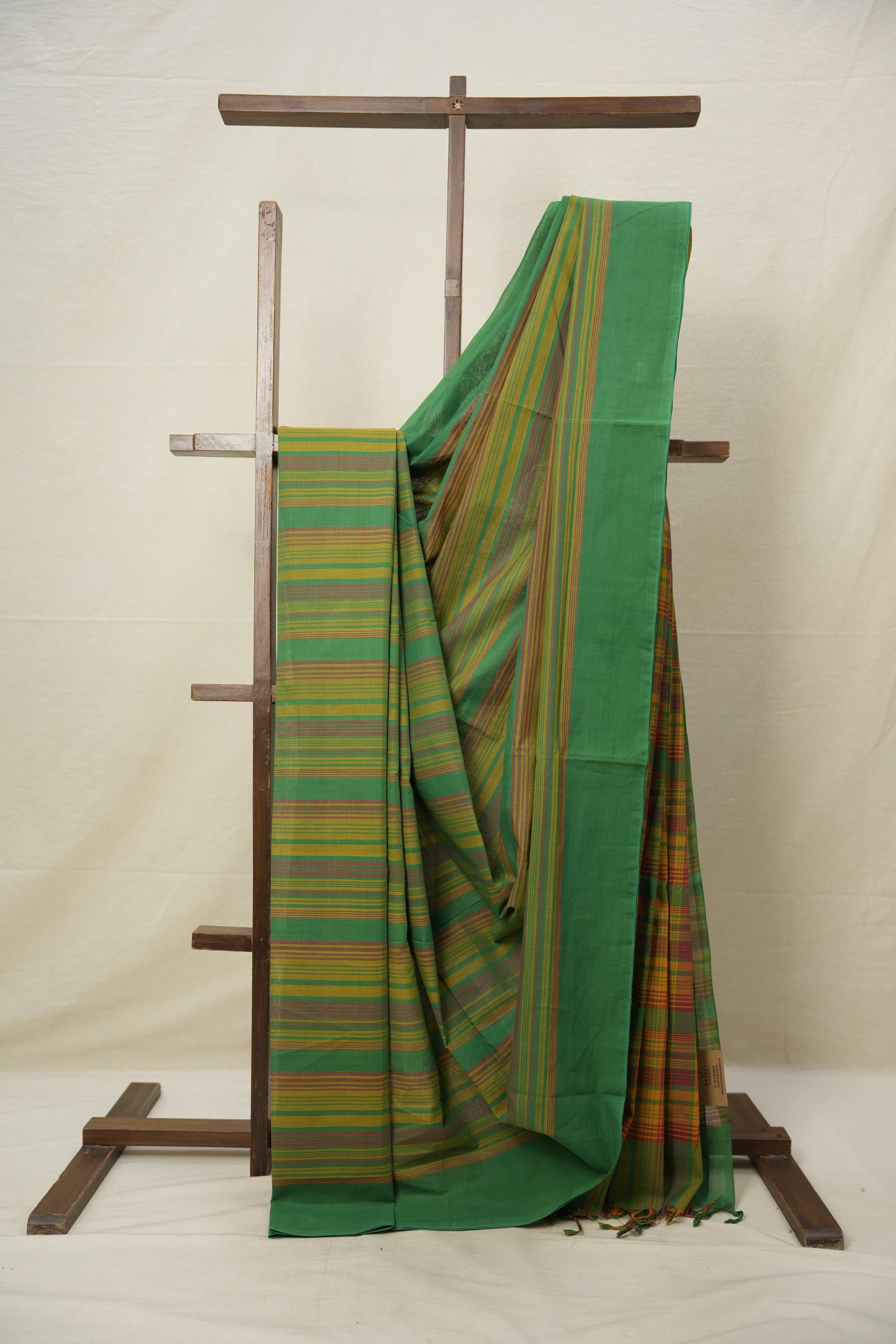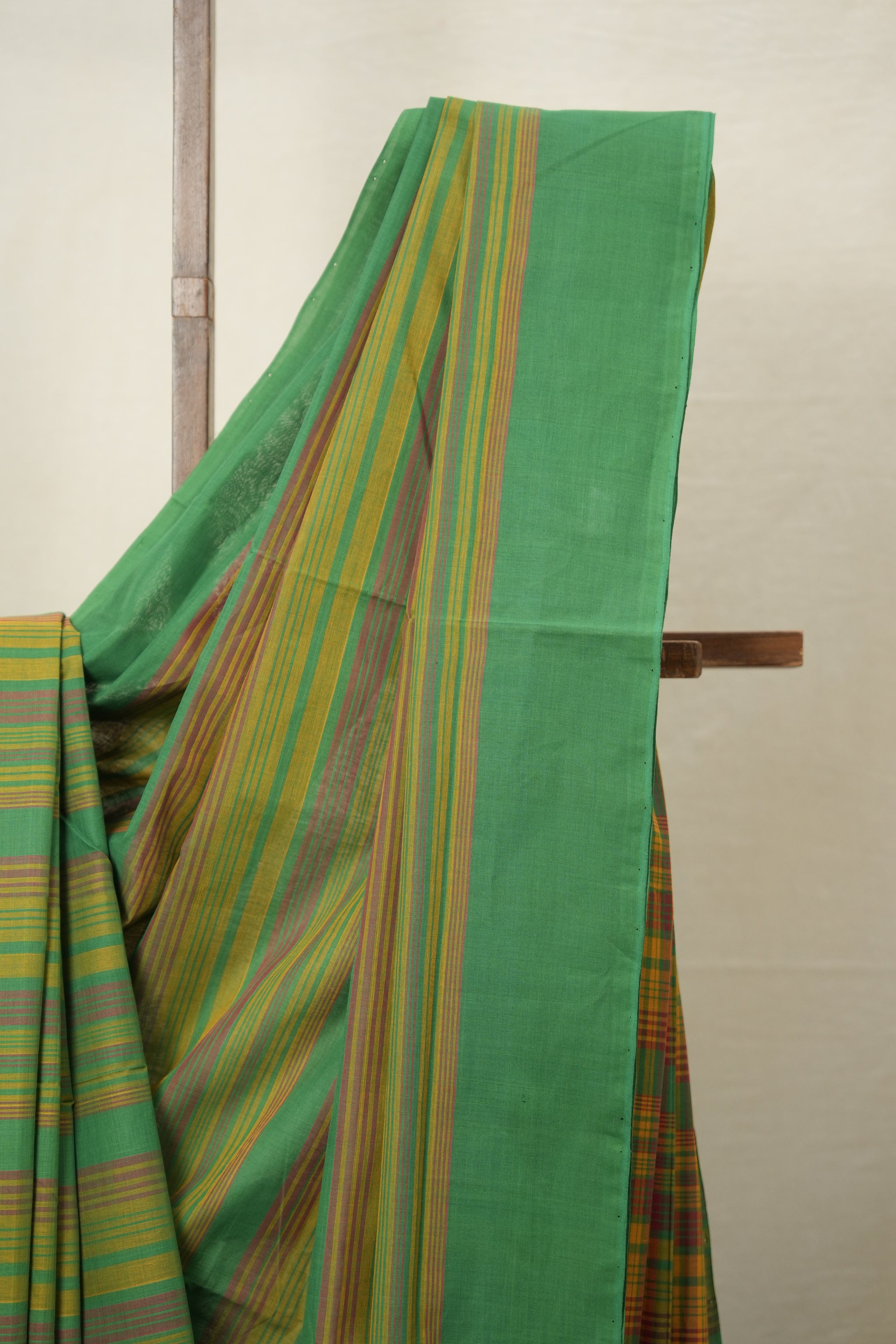 Work - This is a mangalgiri cotton saree with multicolor stripes all over body and border.