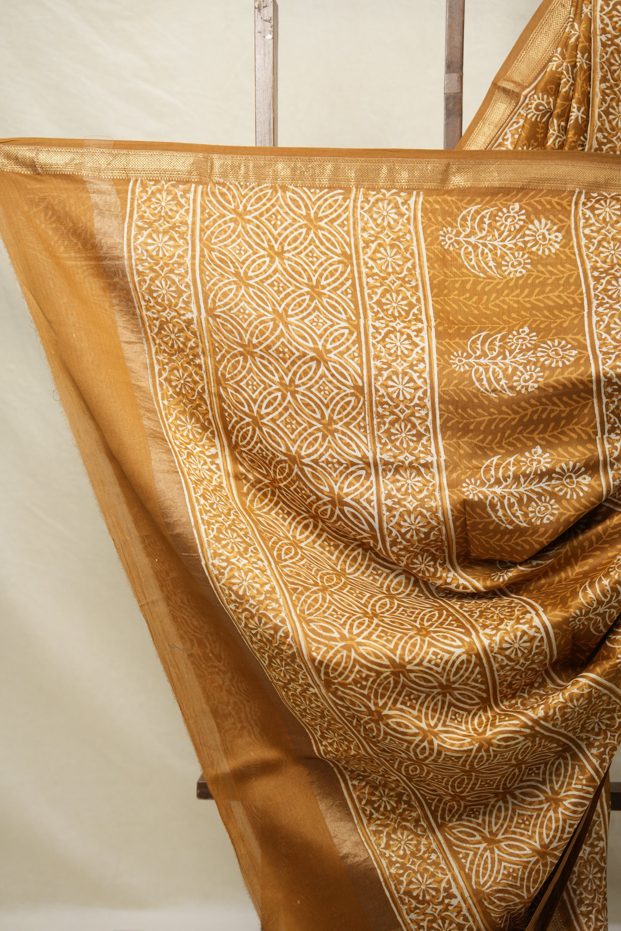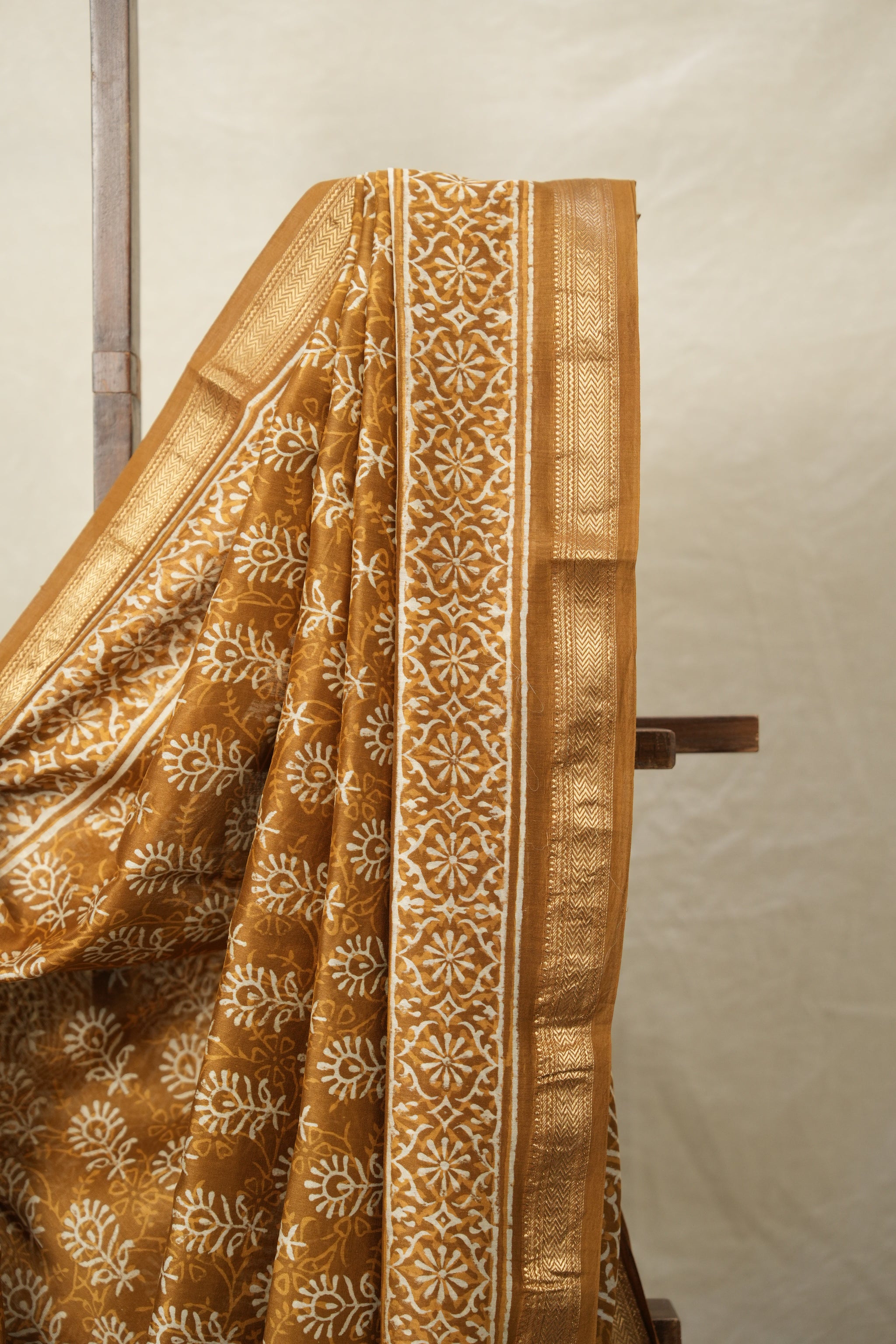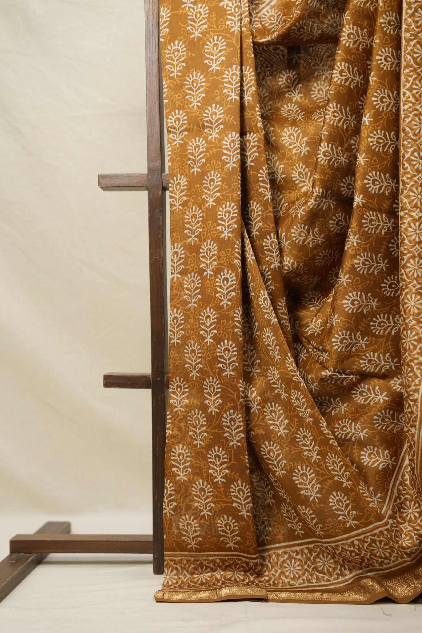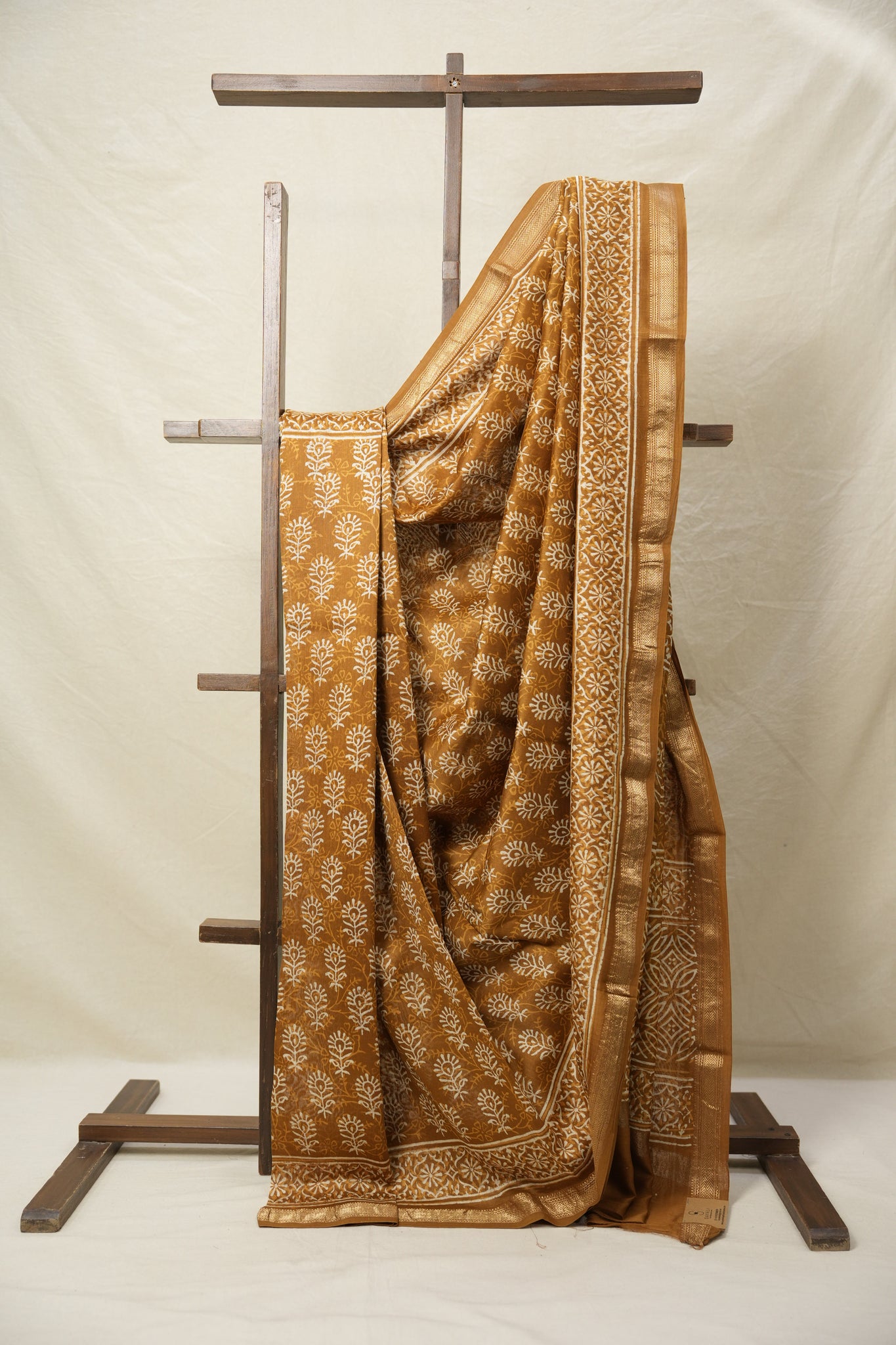 Mustard Brown HBP Cotton Silk Saree With Maheshwari Border - SRMBCSS1422