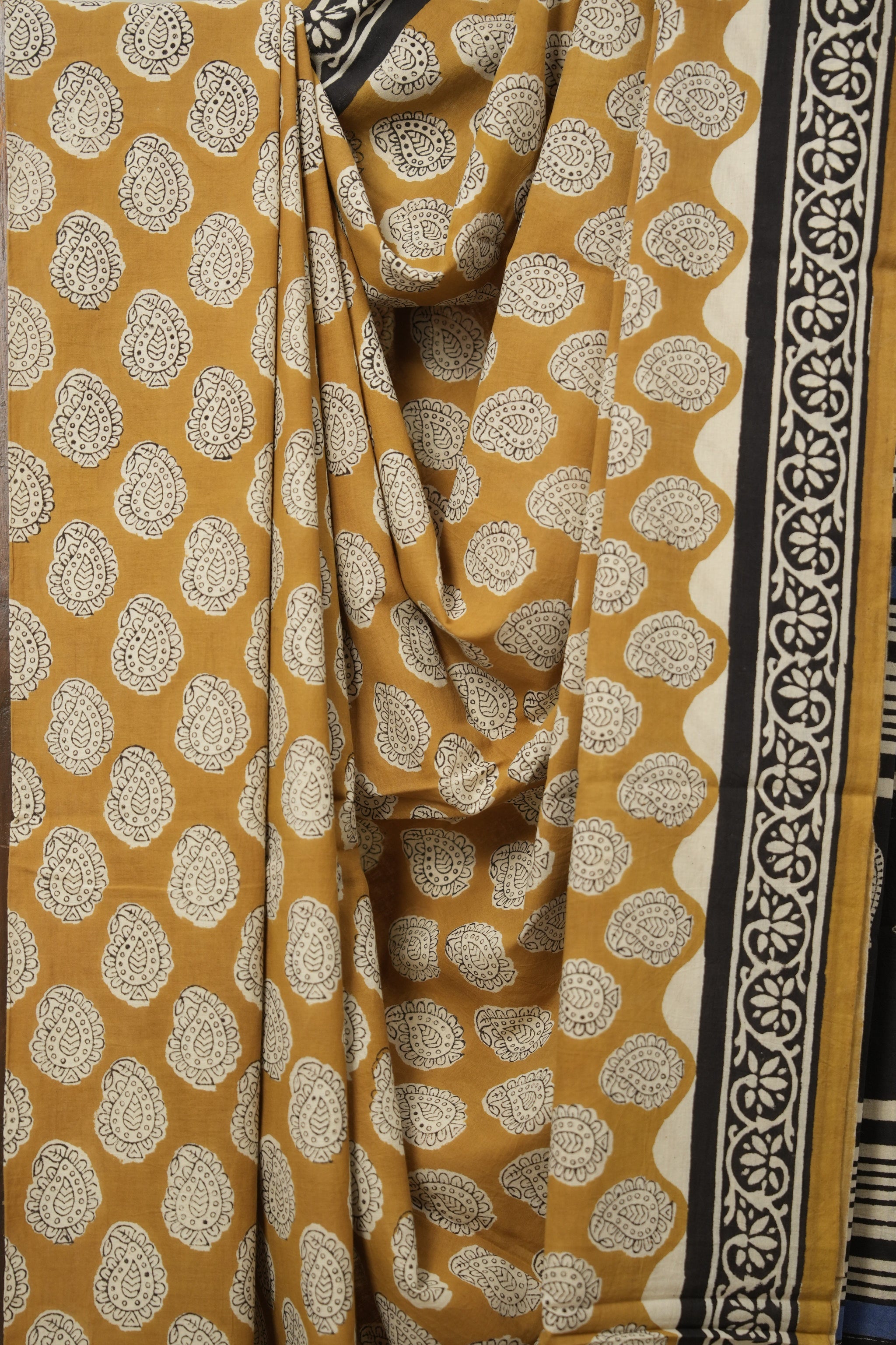 Mustard Yellow HBP Cotton Saree - SRMYCS3015