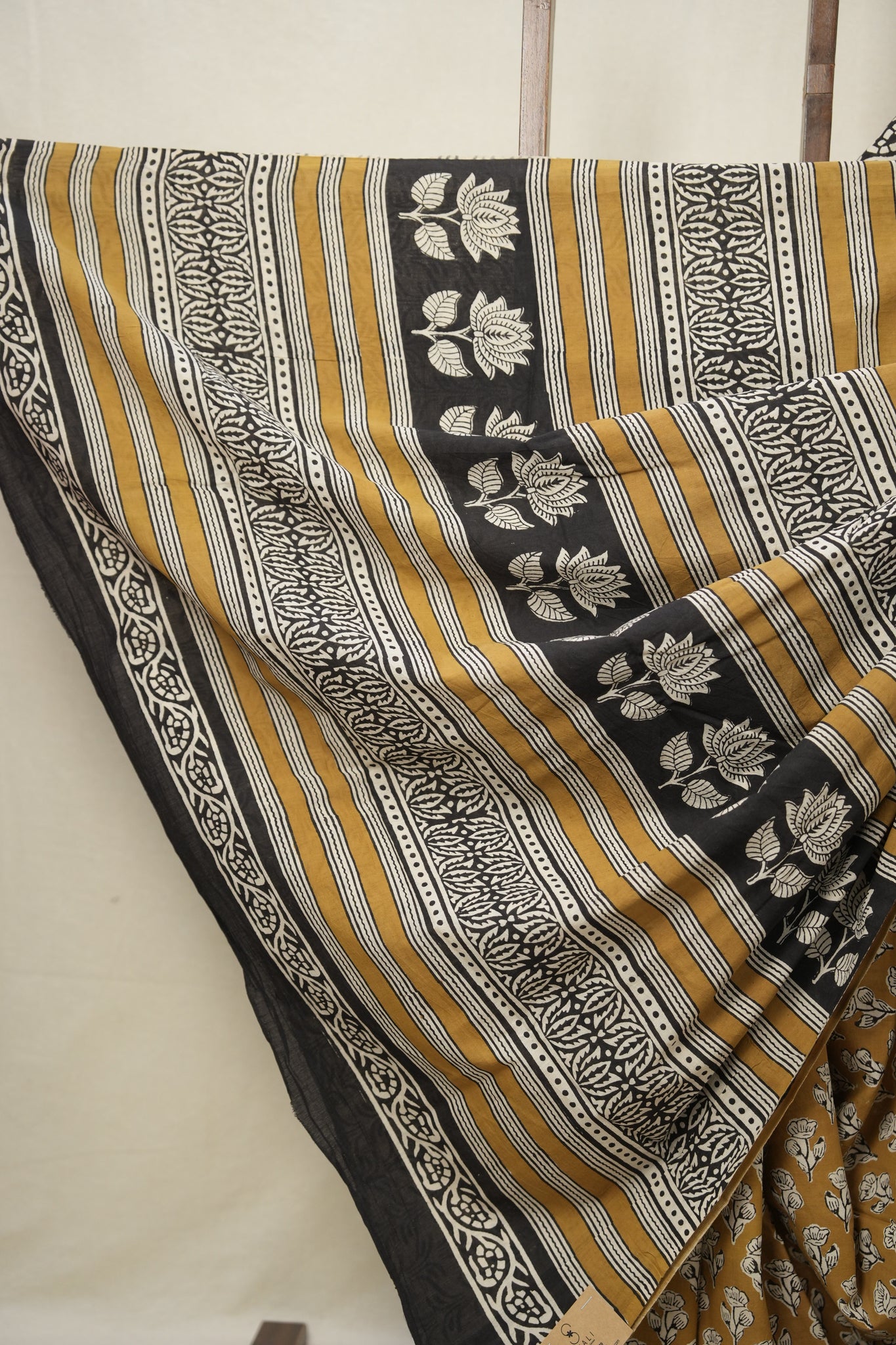 Mustard Yellow HBP Cotton Saree - SRMYCS3016