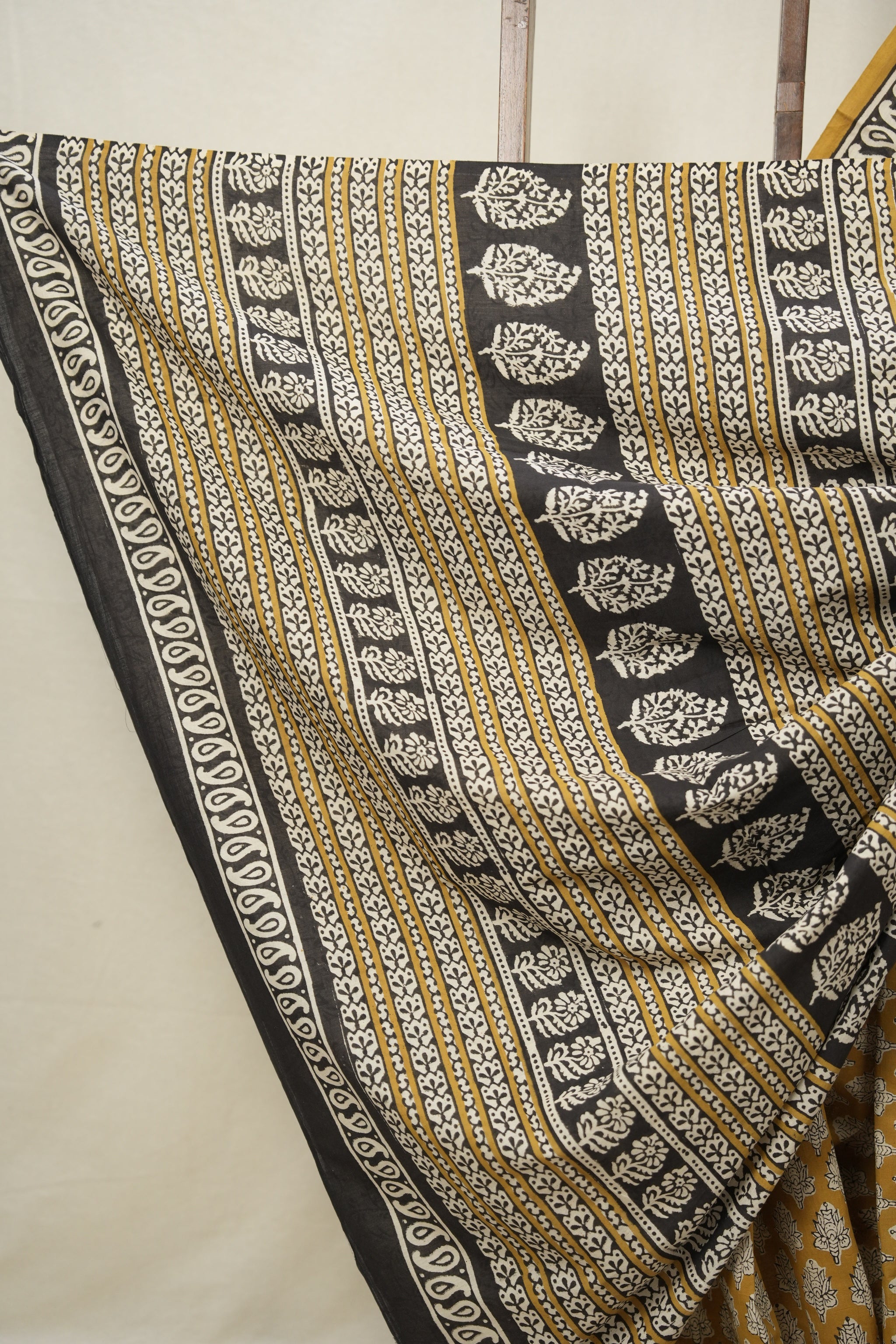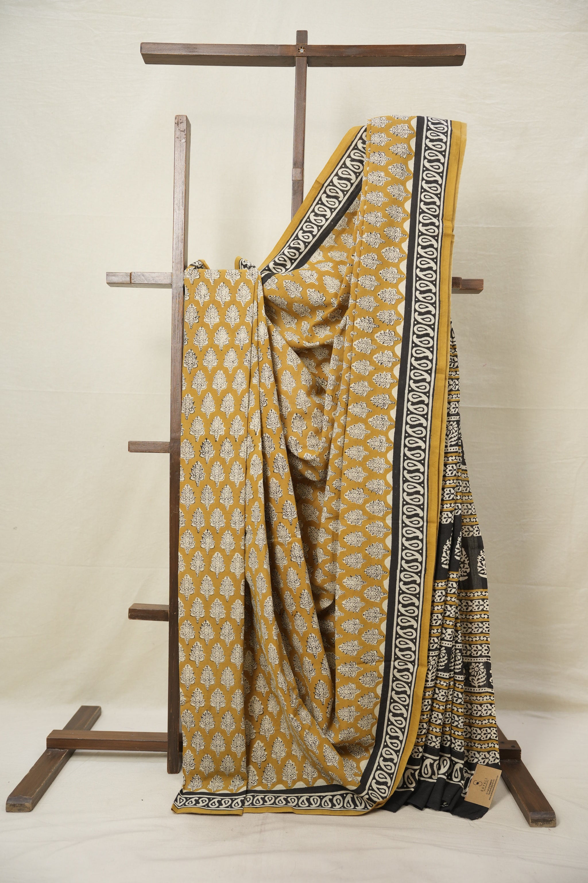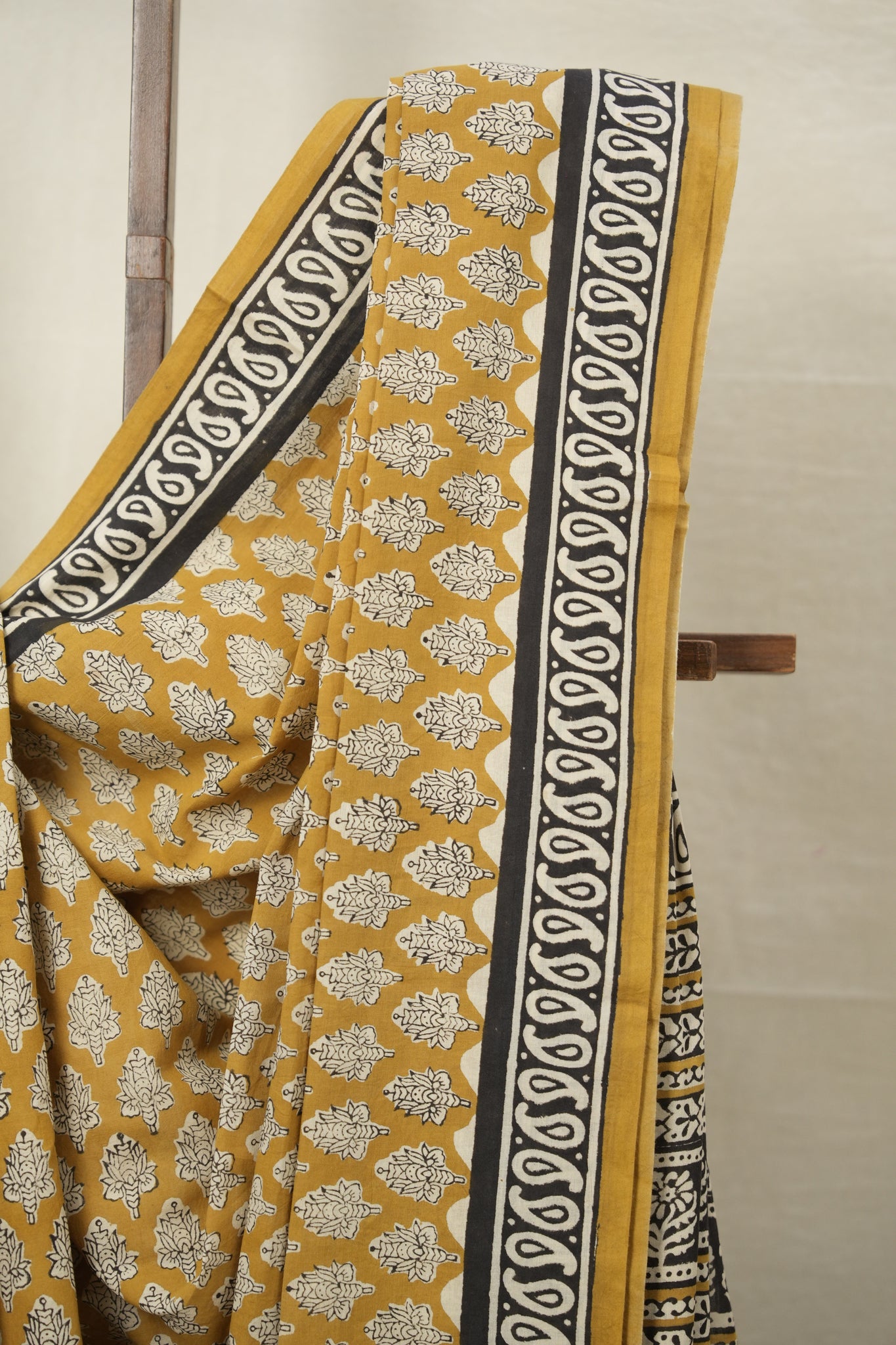 Mustard Yellow HBP Cotton Saree - SRMYCS3029