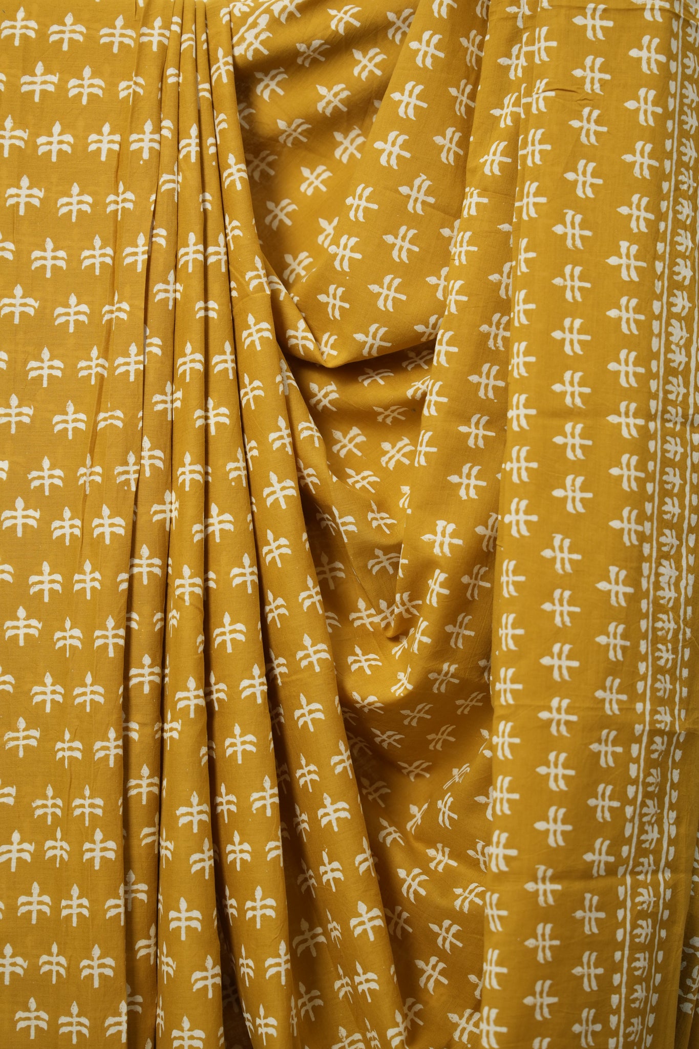 Mustard Yellow HBP Cotton Saree - SRMYCS3043