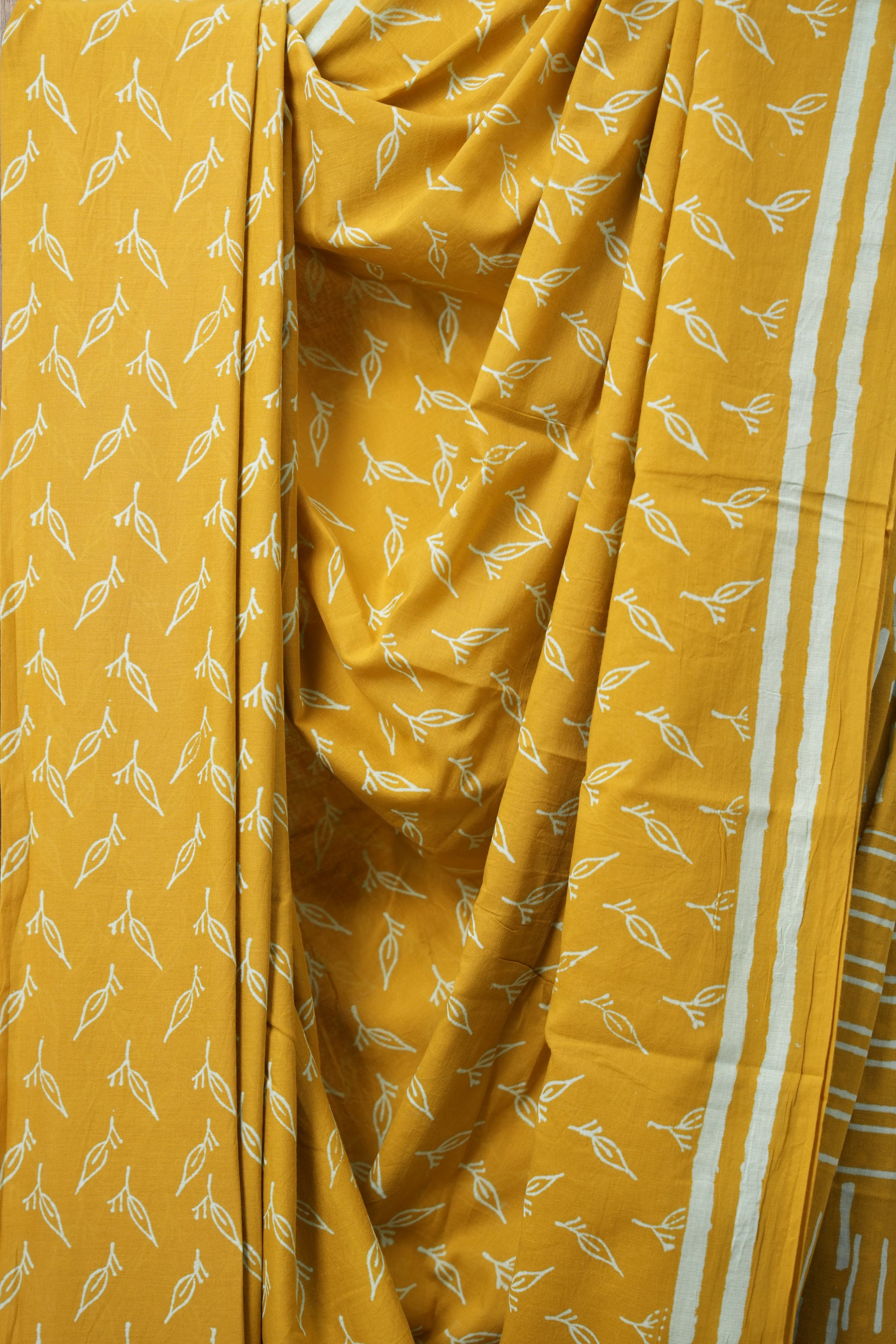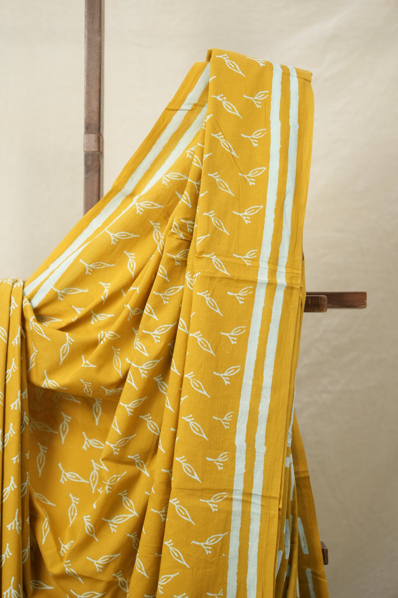 Mustard Yellow HBP Cotton Saree - SRMYCS3077