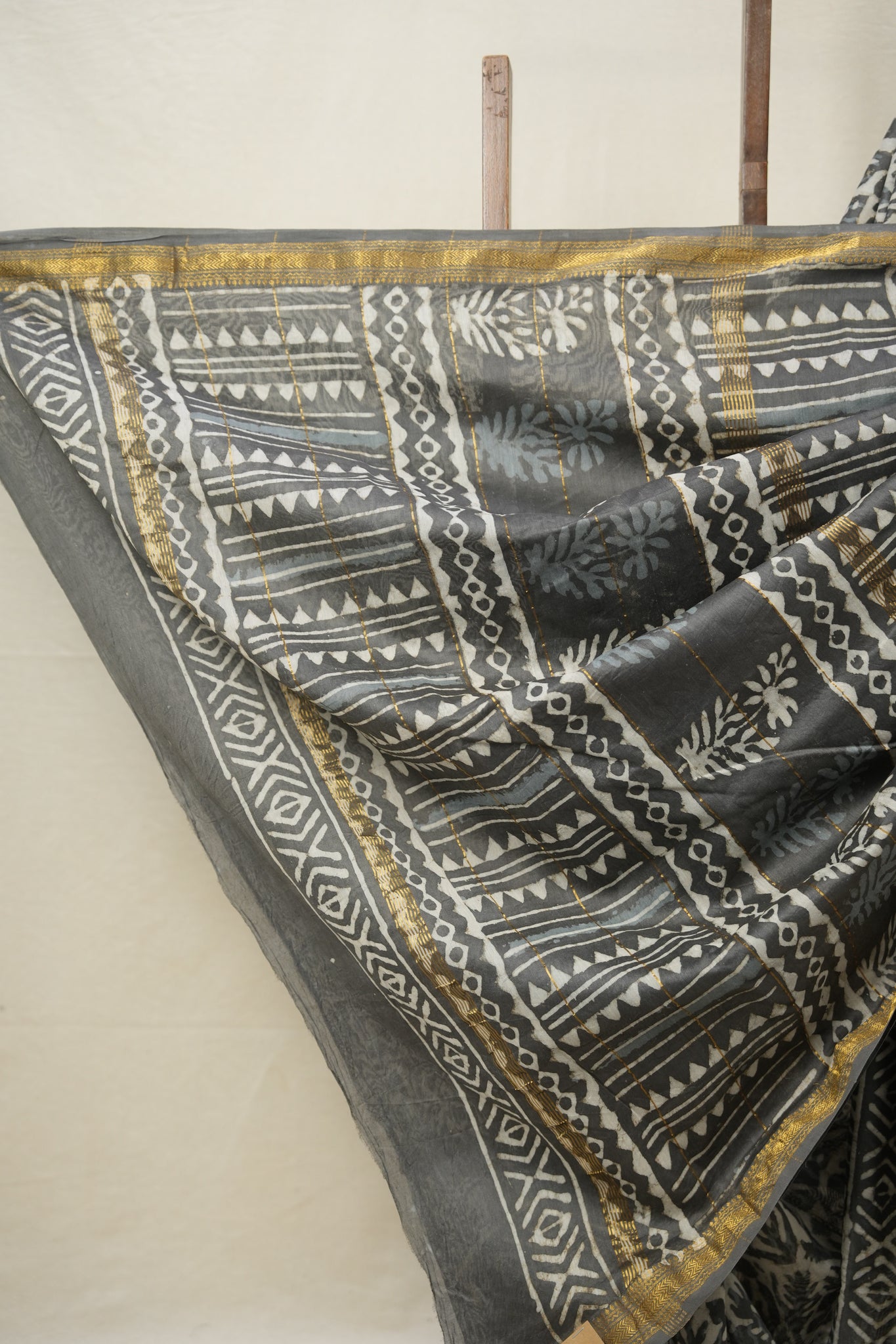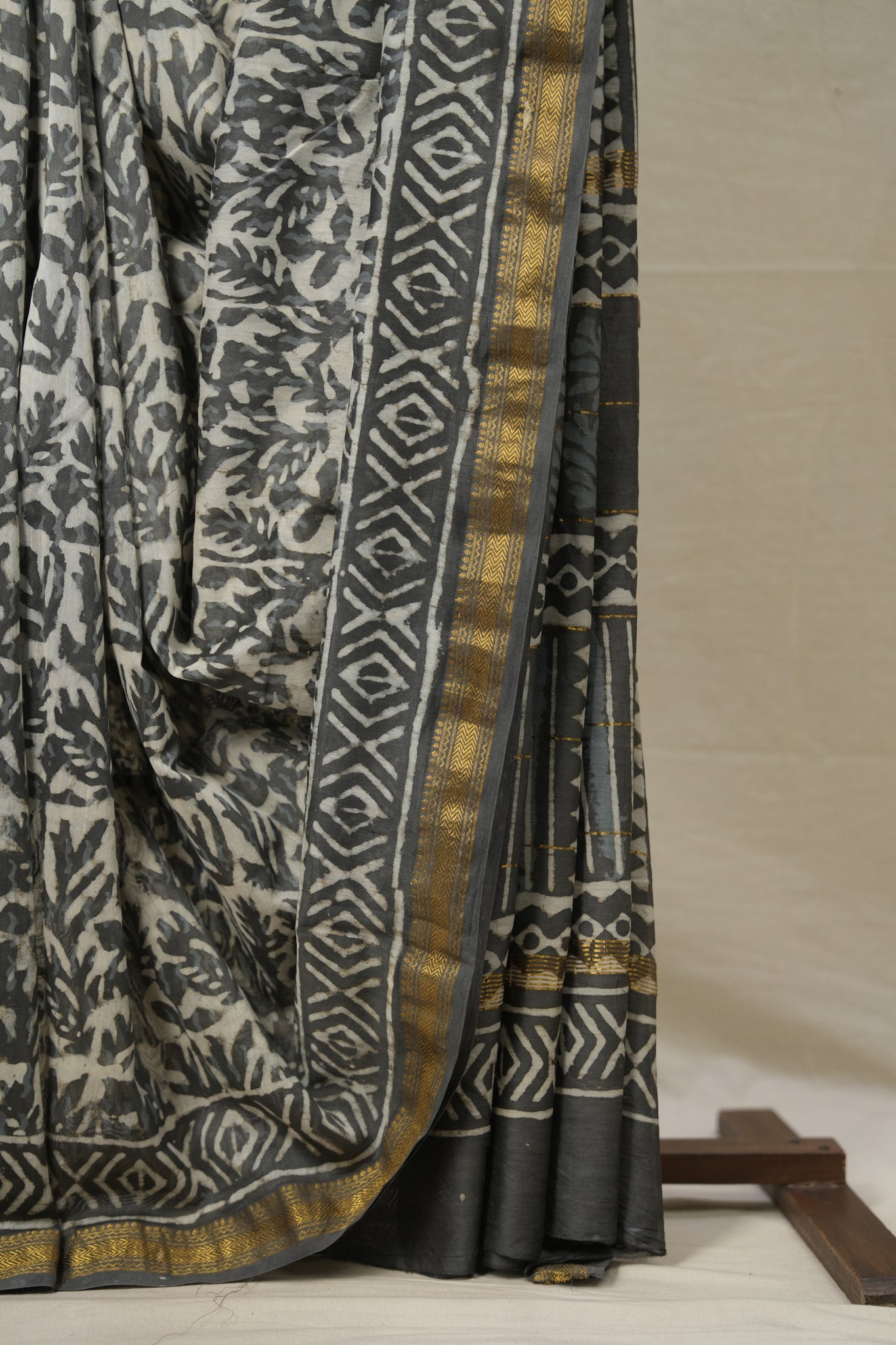 Off White Grey HBP Cotton Silk Saree With Maheshwari Border - SROWGCSS1359