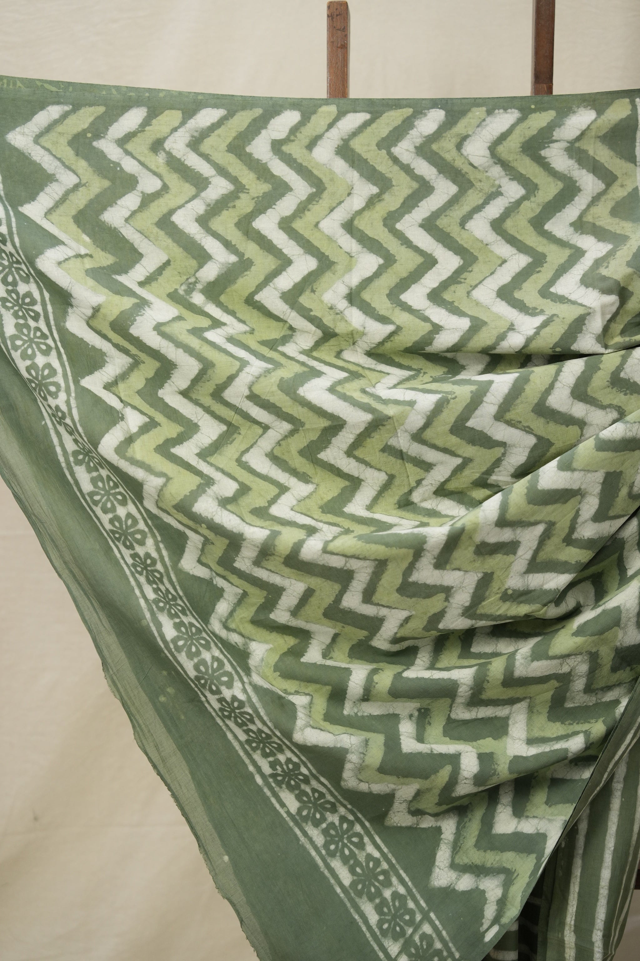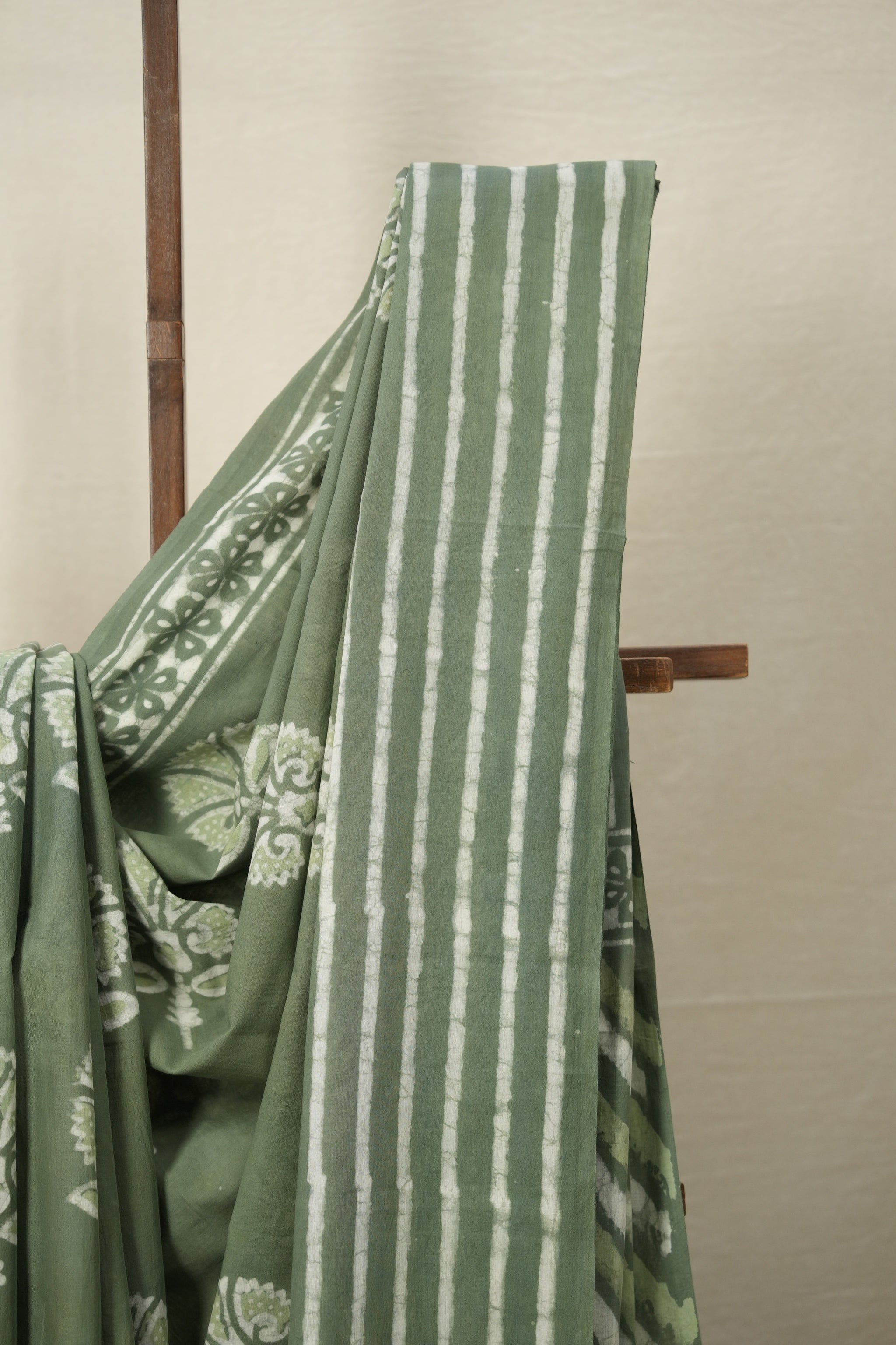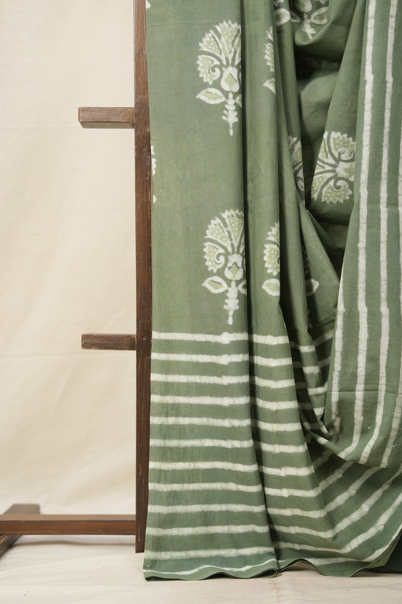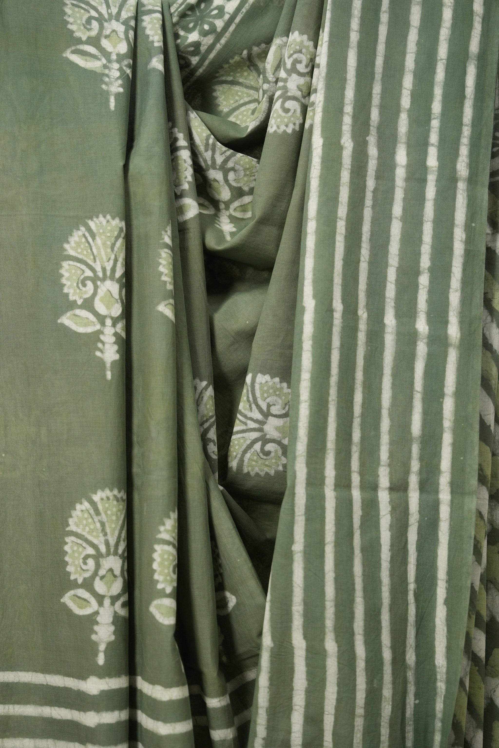 Saree Color - Olive Green n White