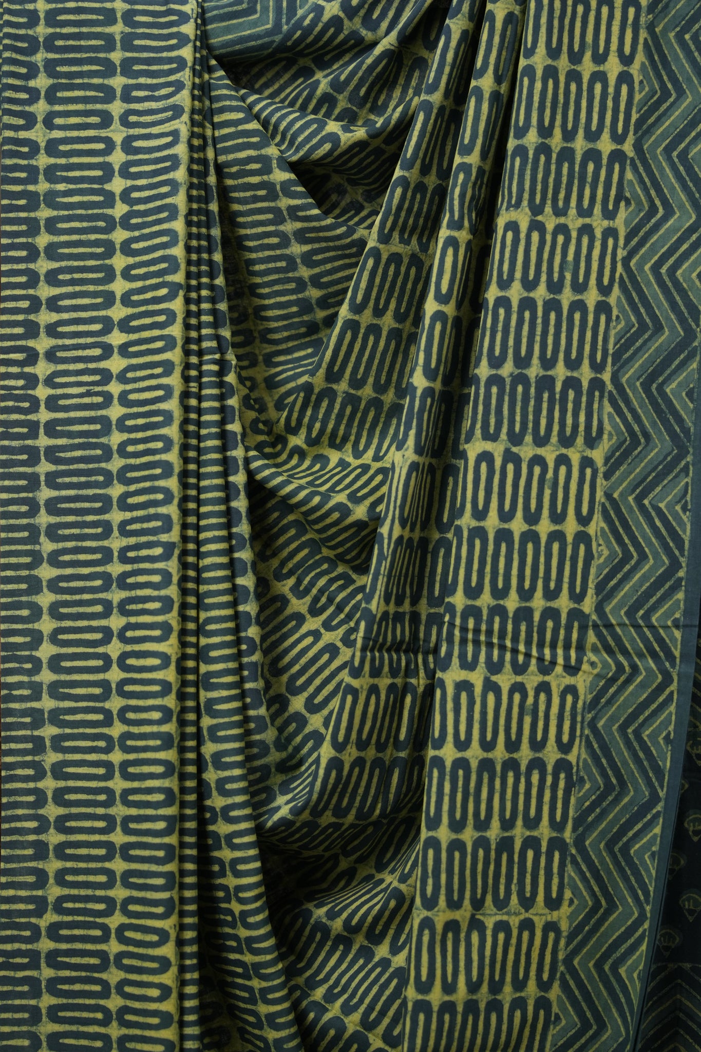 Olive Green Yellow HBP Cotton Saree - SROGYCS3106