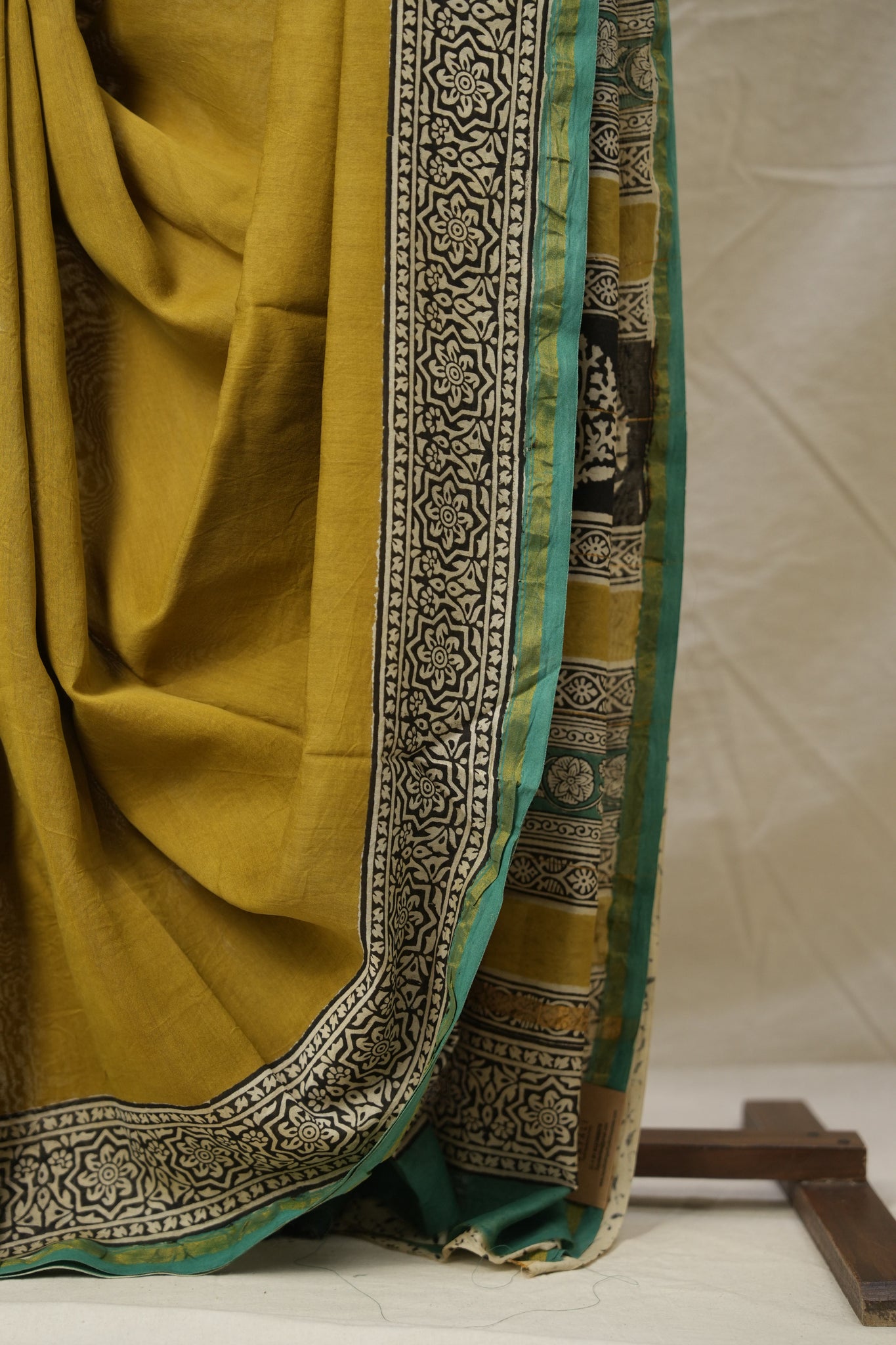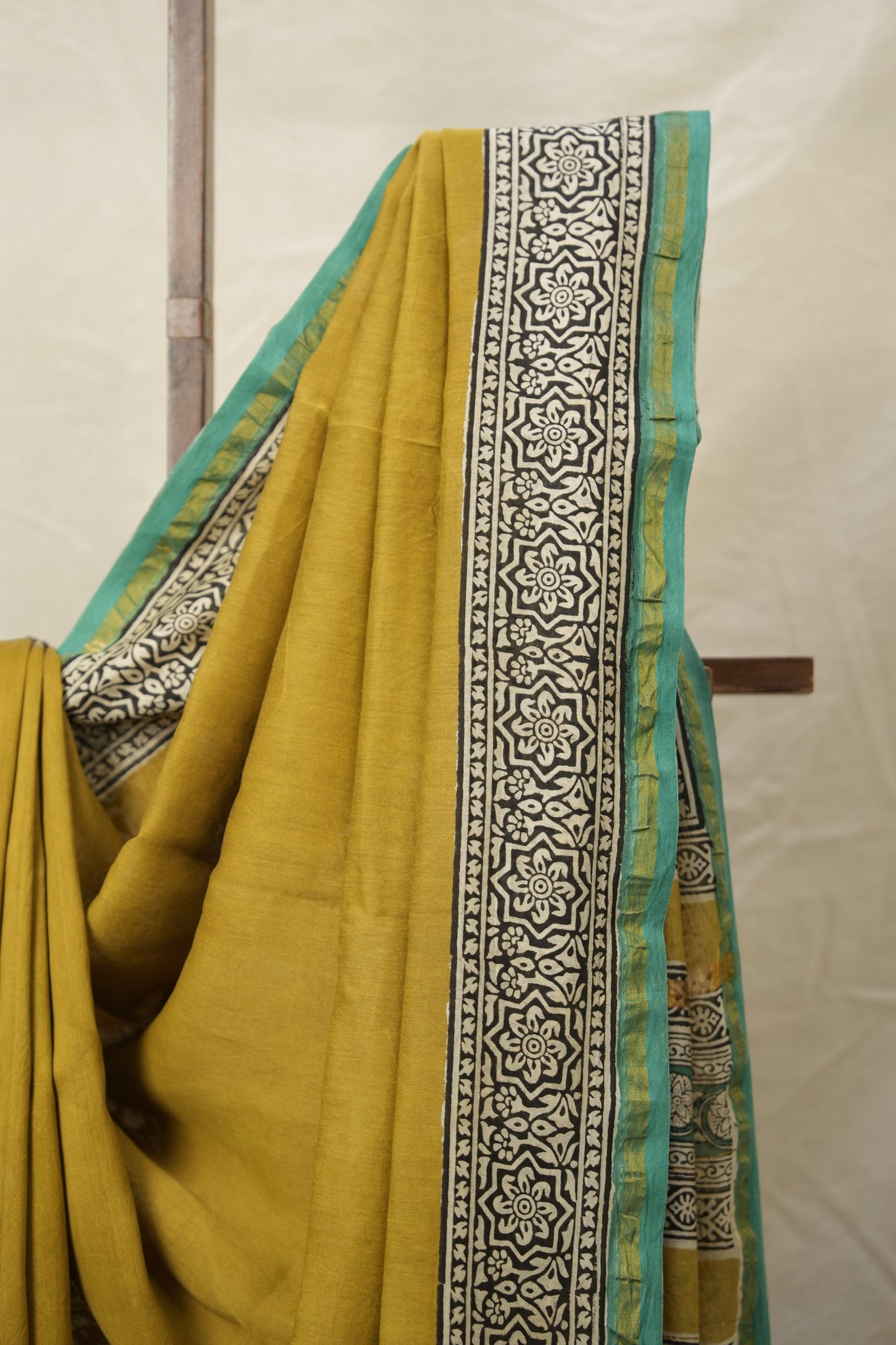 Olive Yellow HBP Cotton Silk Saree With Chanderi Border - SROYCSS1397
