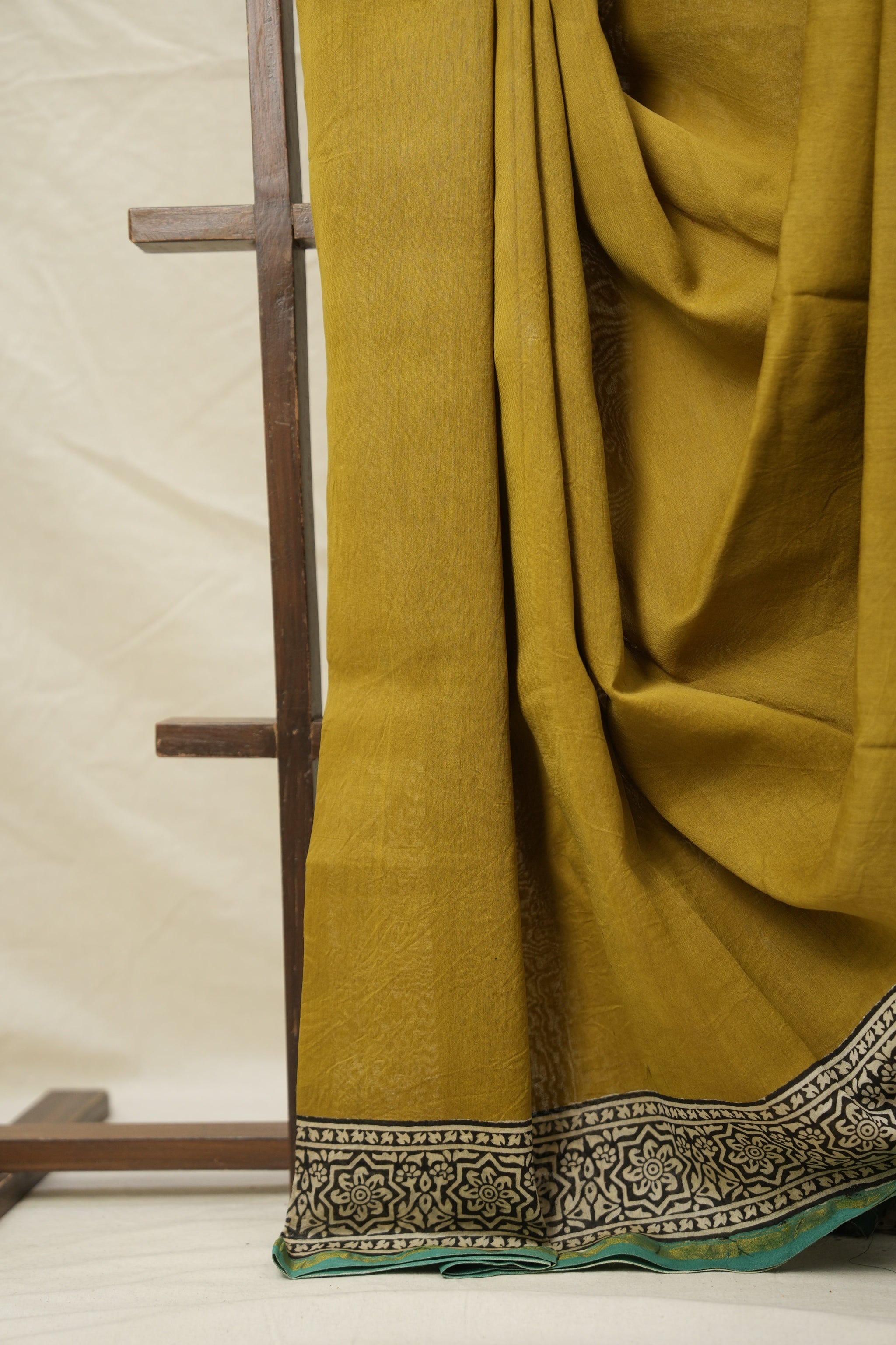 Olive Yellow  HBP Cotton Silk Saree With Chanderi Border - SROYCSS1397