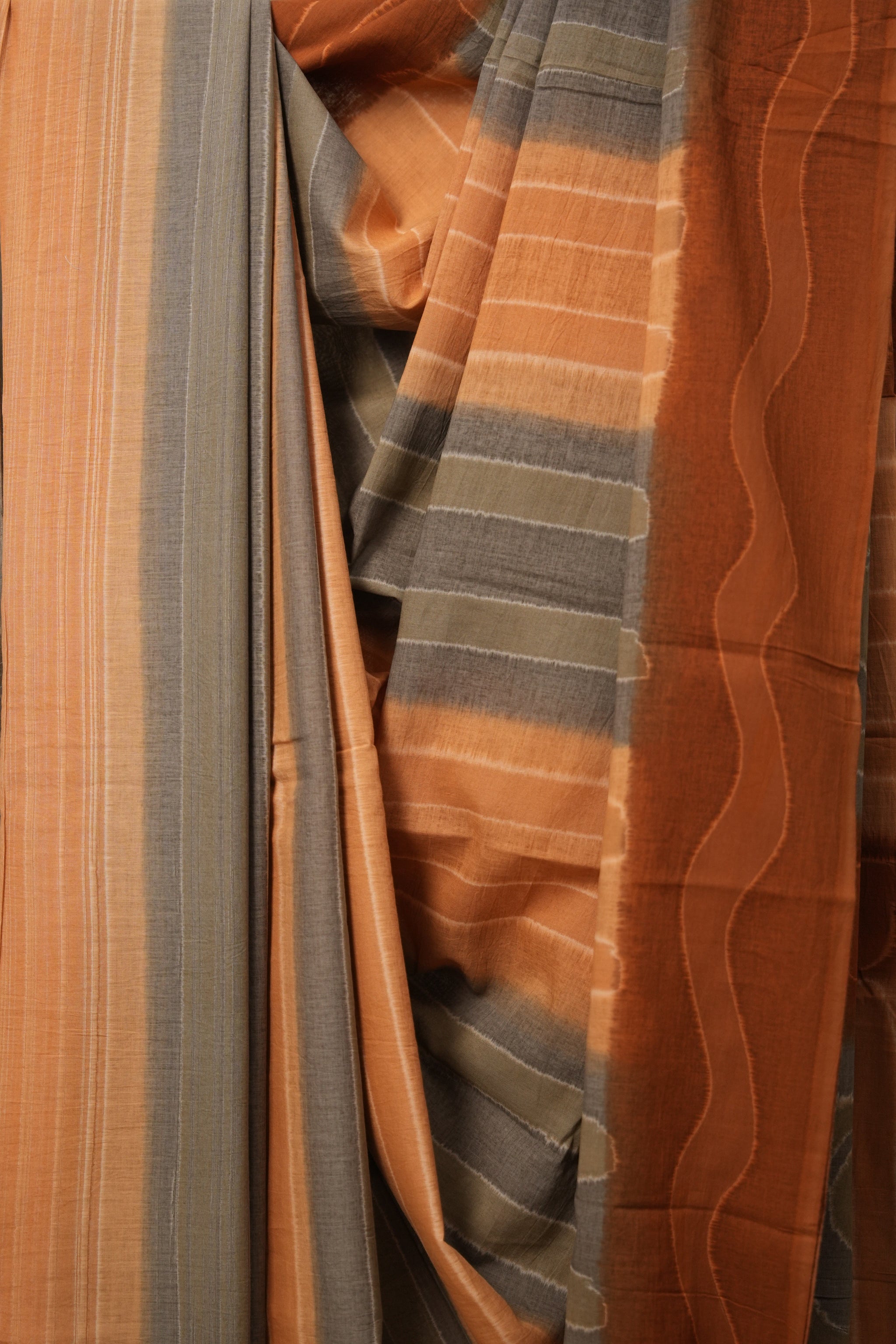 Orange Grey Cotton Saree - SROGCS3074