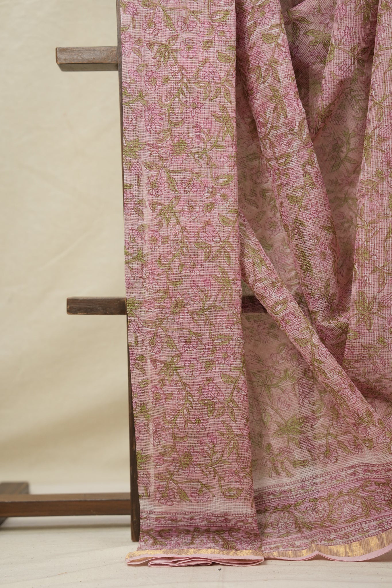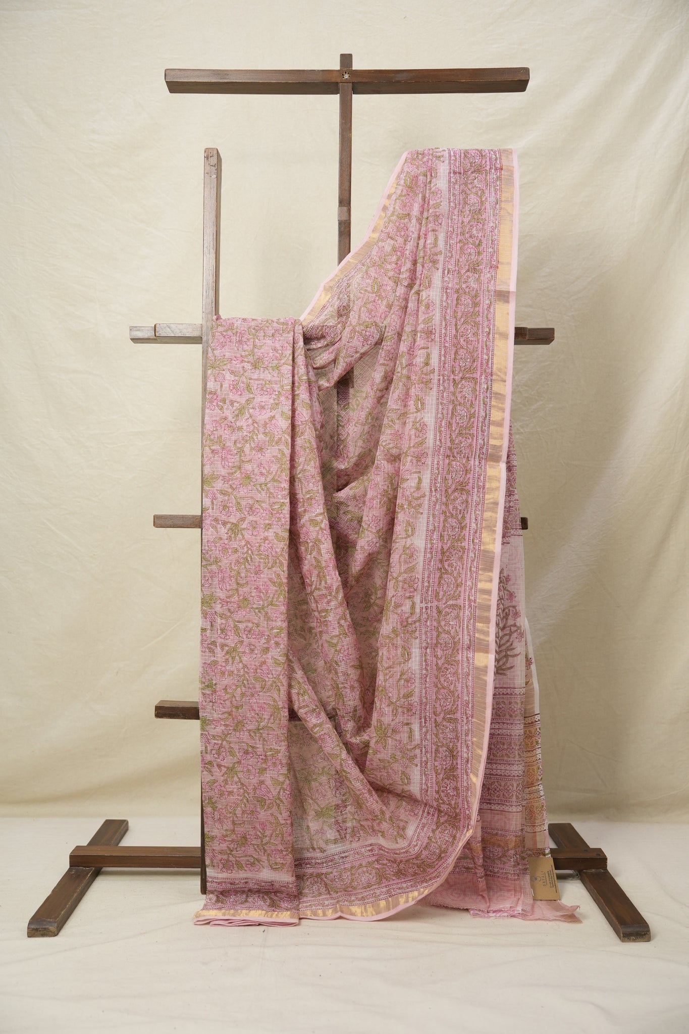 Work - Hand-Block Print kota doria sarees with contrast blouse and vibrant and fresh colors base.