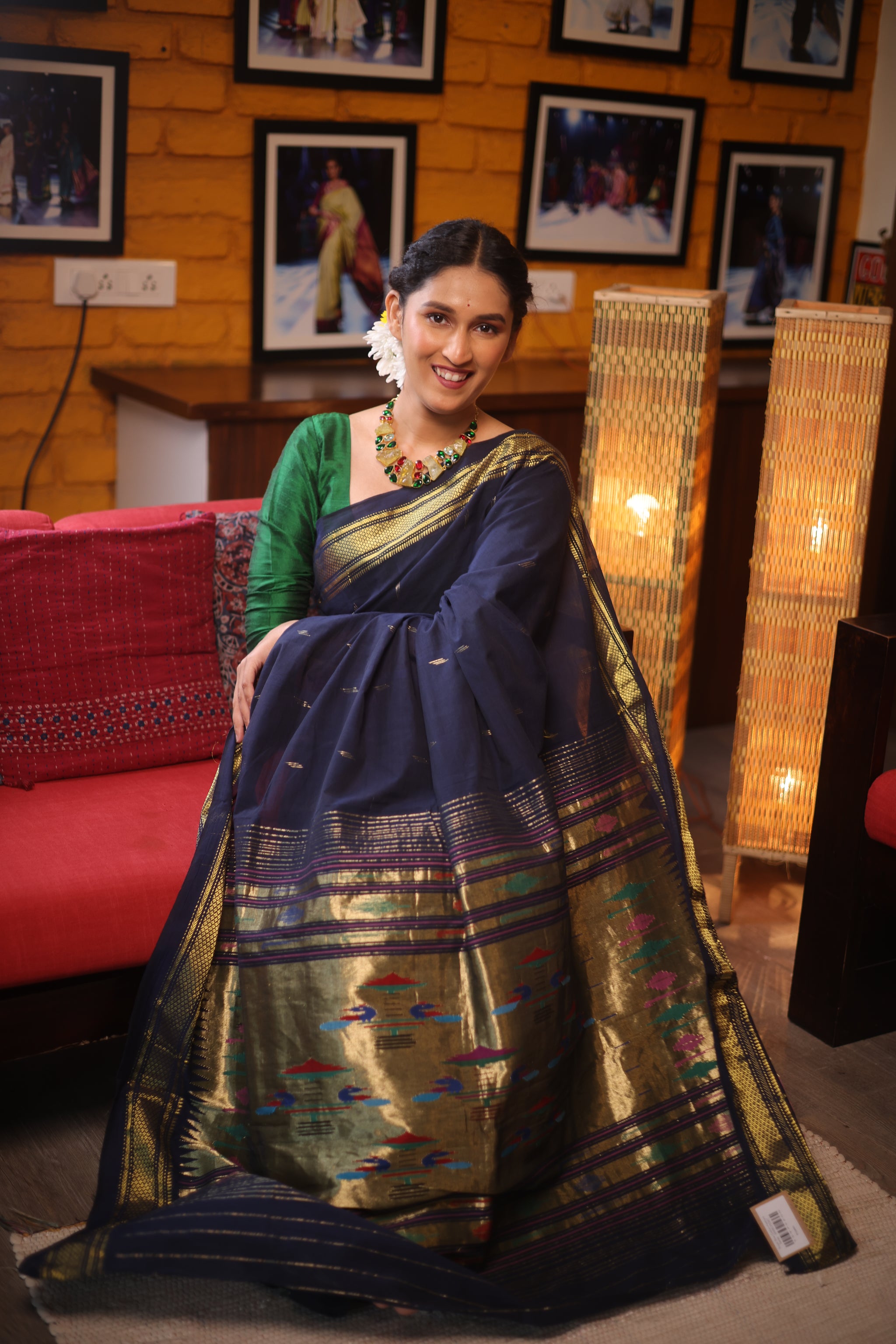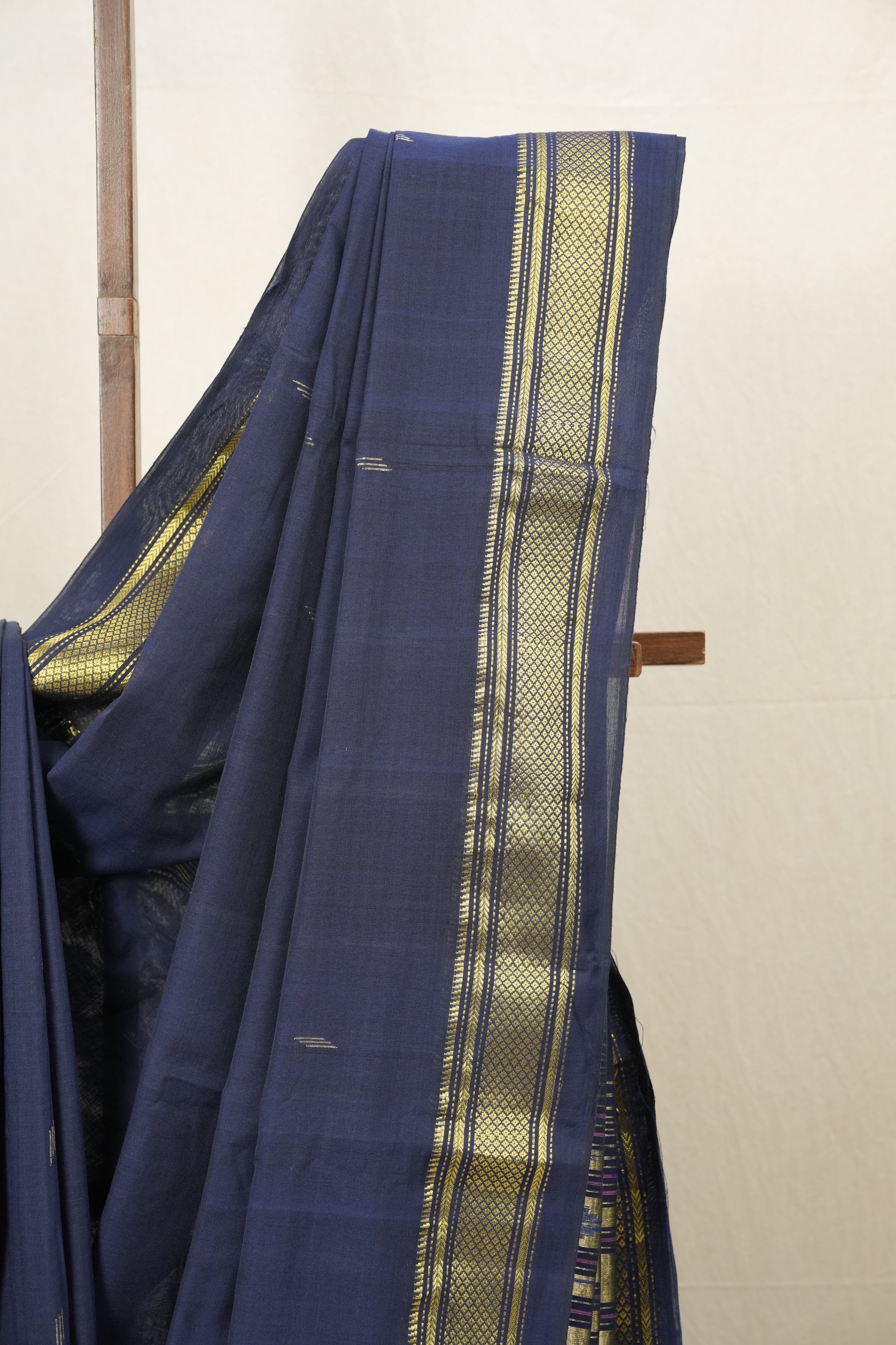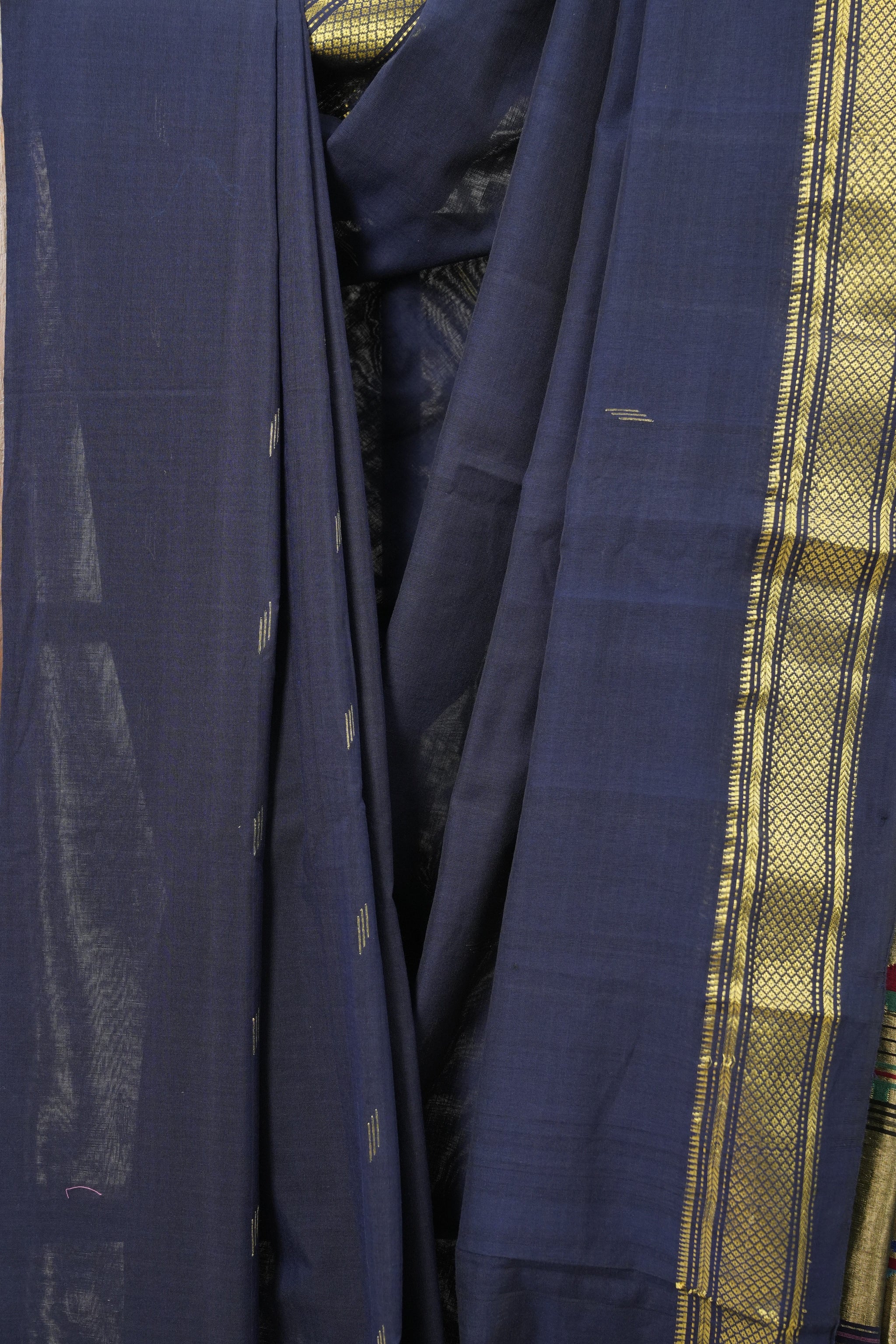 Work - Royal Blue cotton paithani saree with narli border and morbangdi pallu.