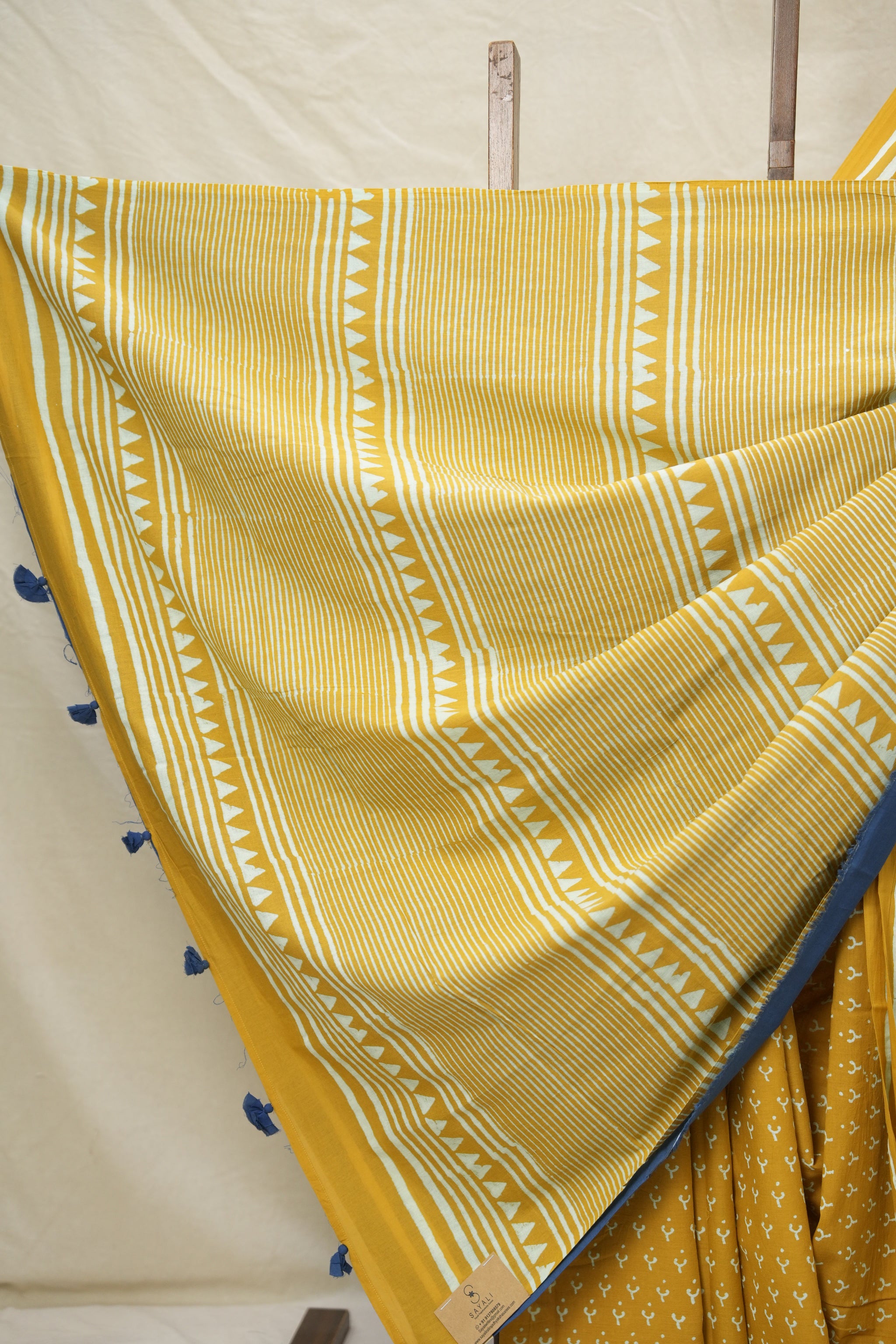 Turmeric Yellow Blue HBP Cotton Saree - SRTYCS2994