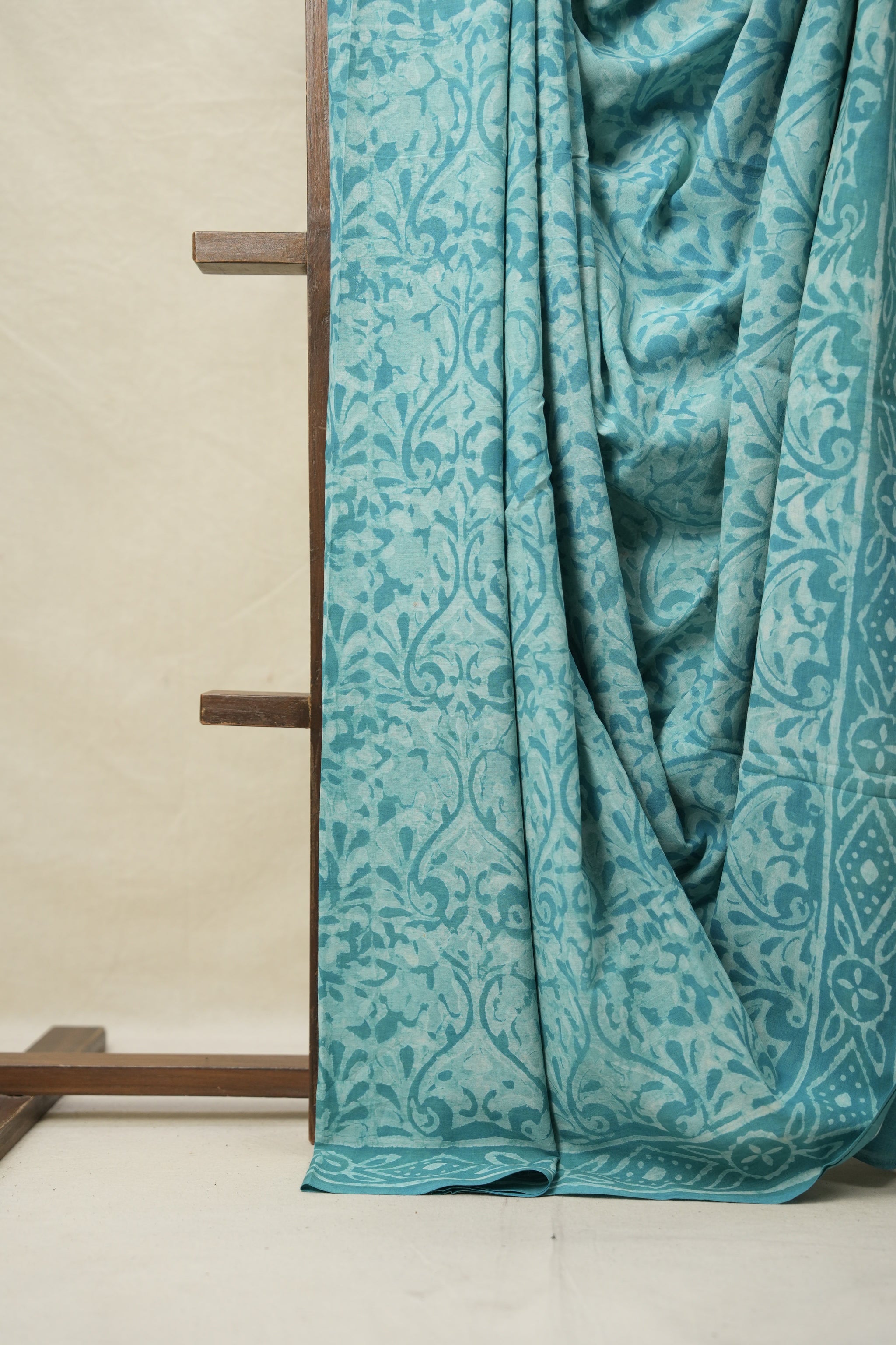 Turquoise Blue HBP Cotton Saree - SRTBCS3151