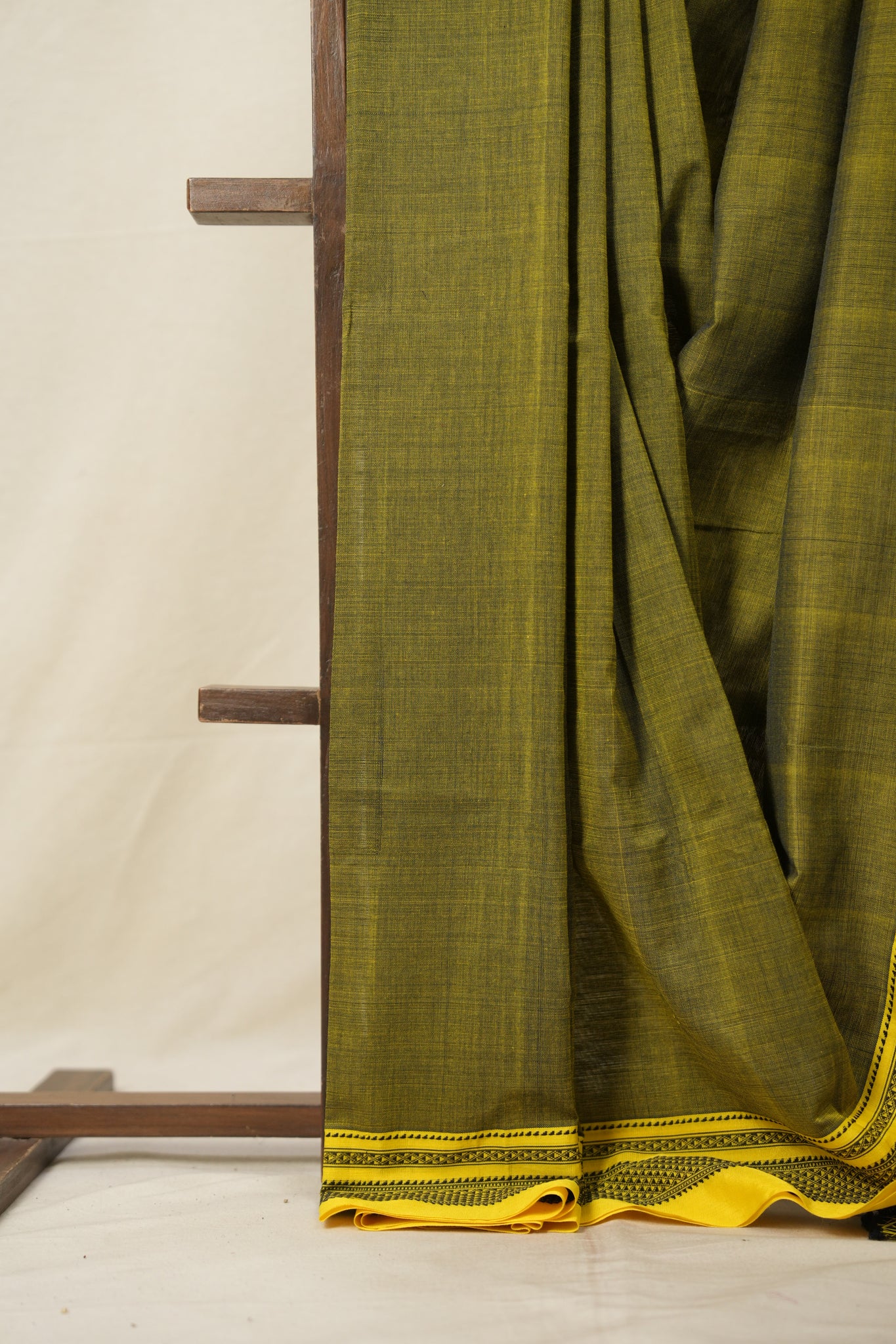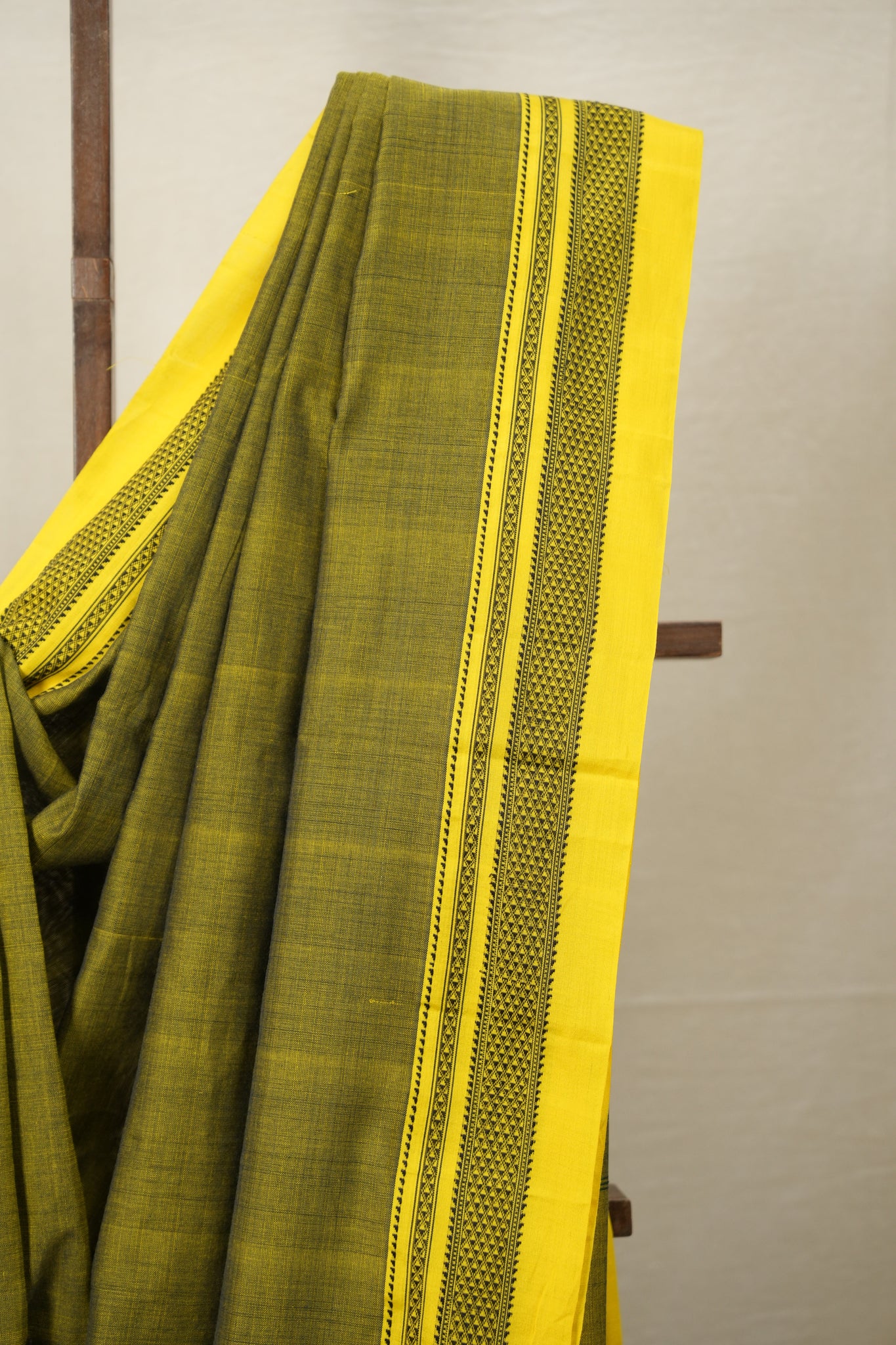 Yellow Black Plain Cotton Ilkal Saree - SRYBCIS715