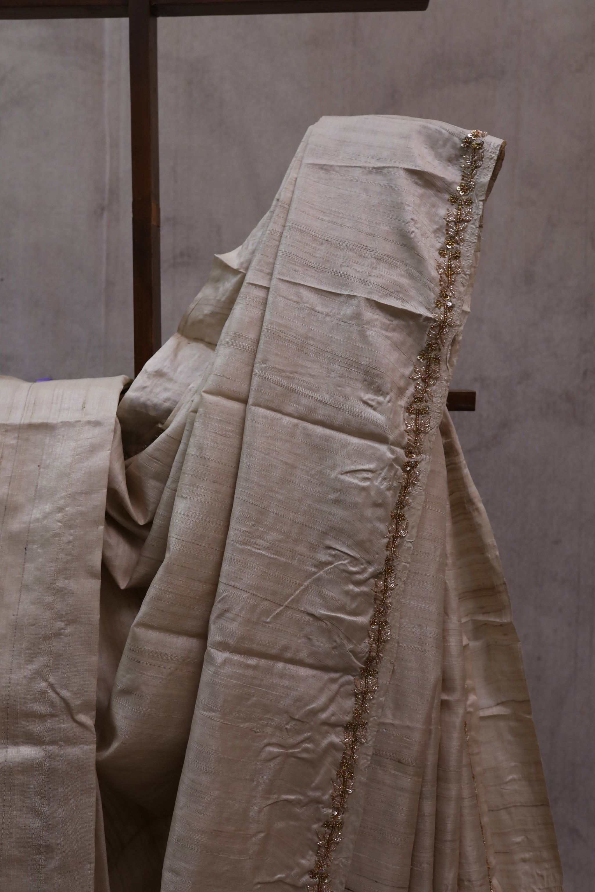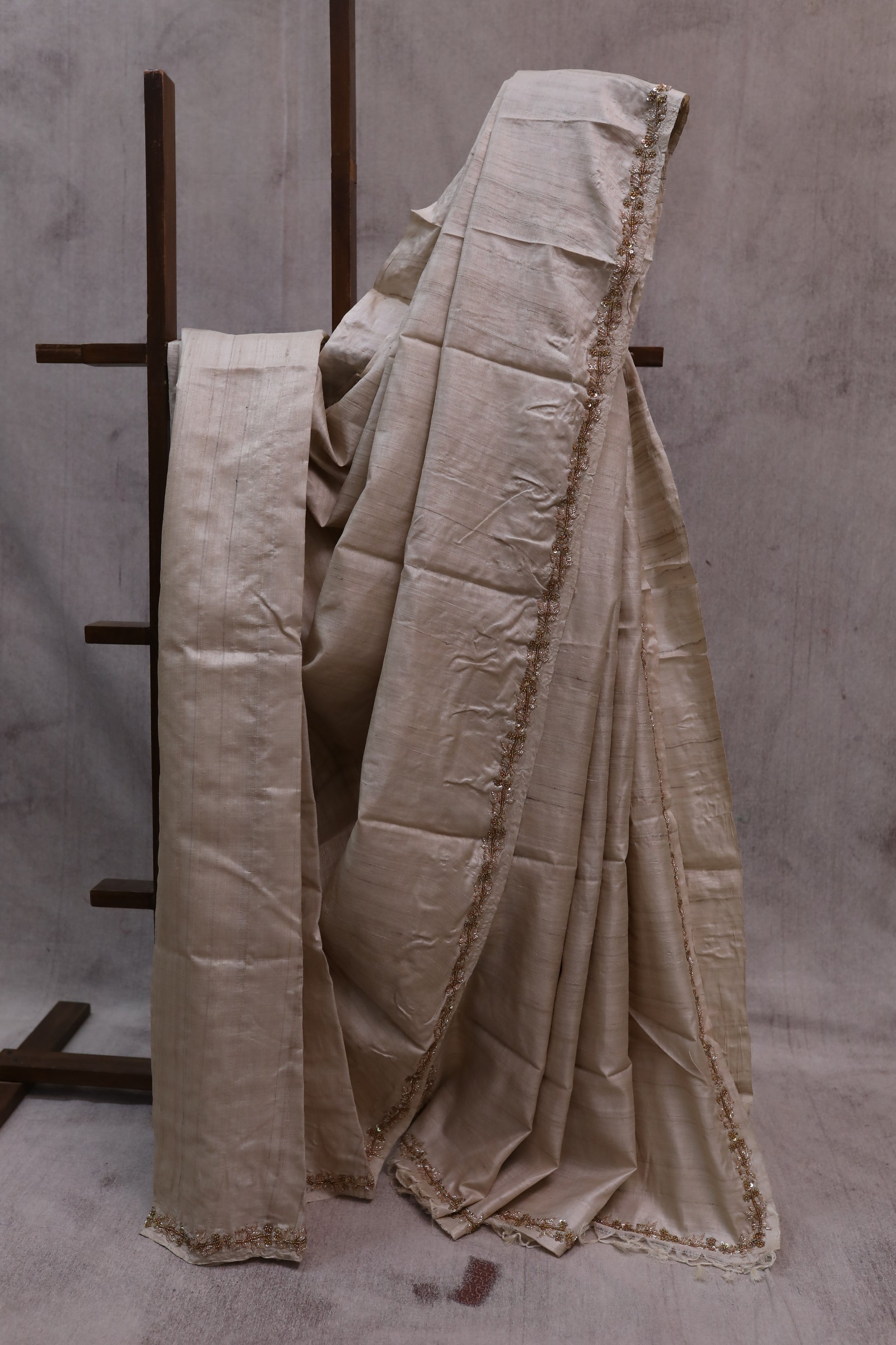 Cream Zardosi Tussar Silk Saree-SRCZTSS17