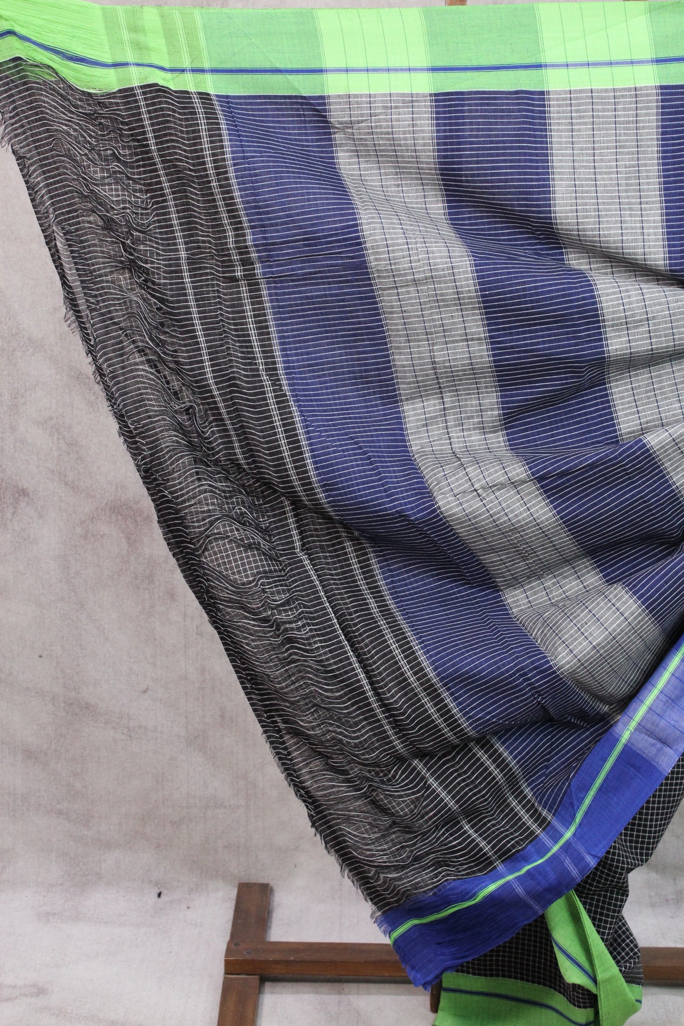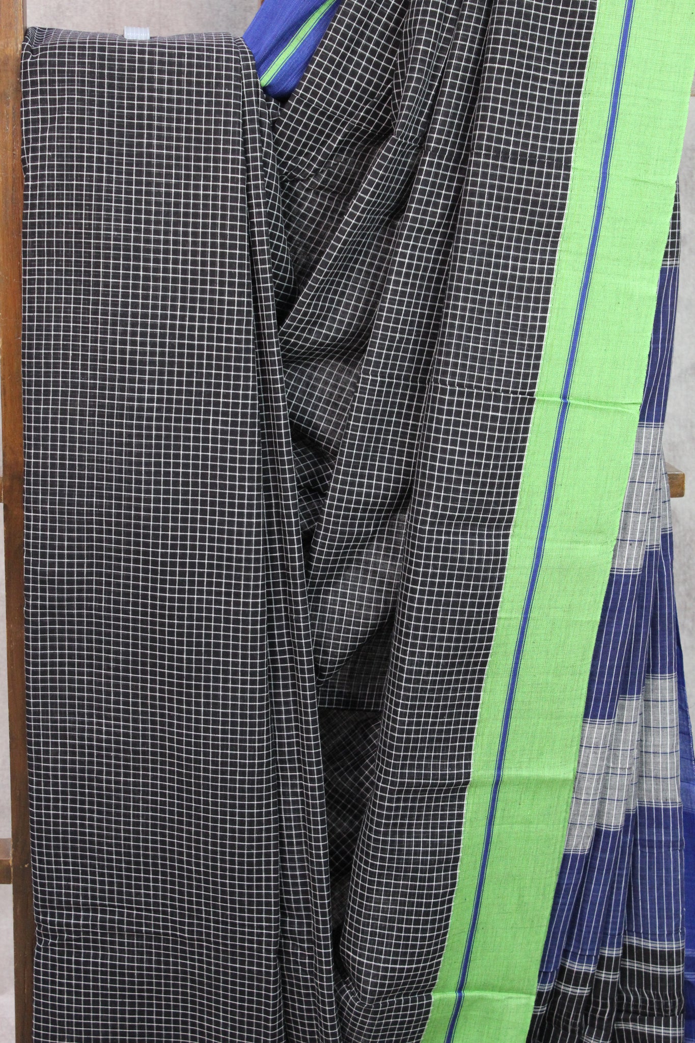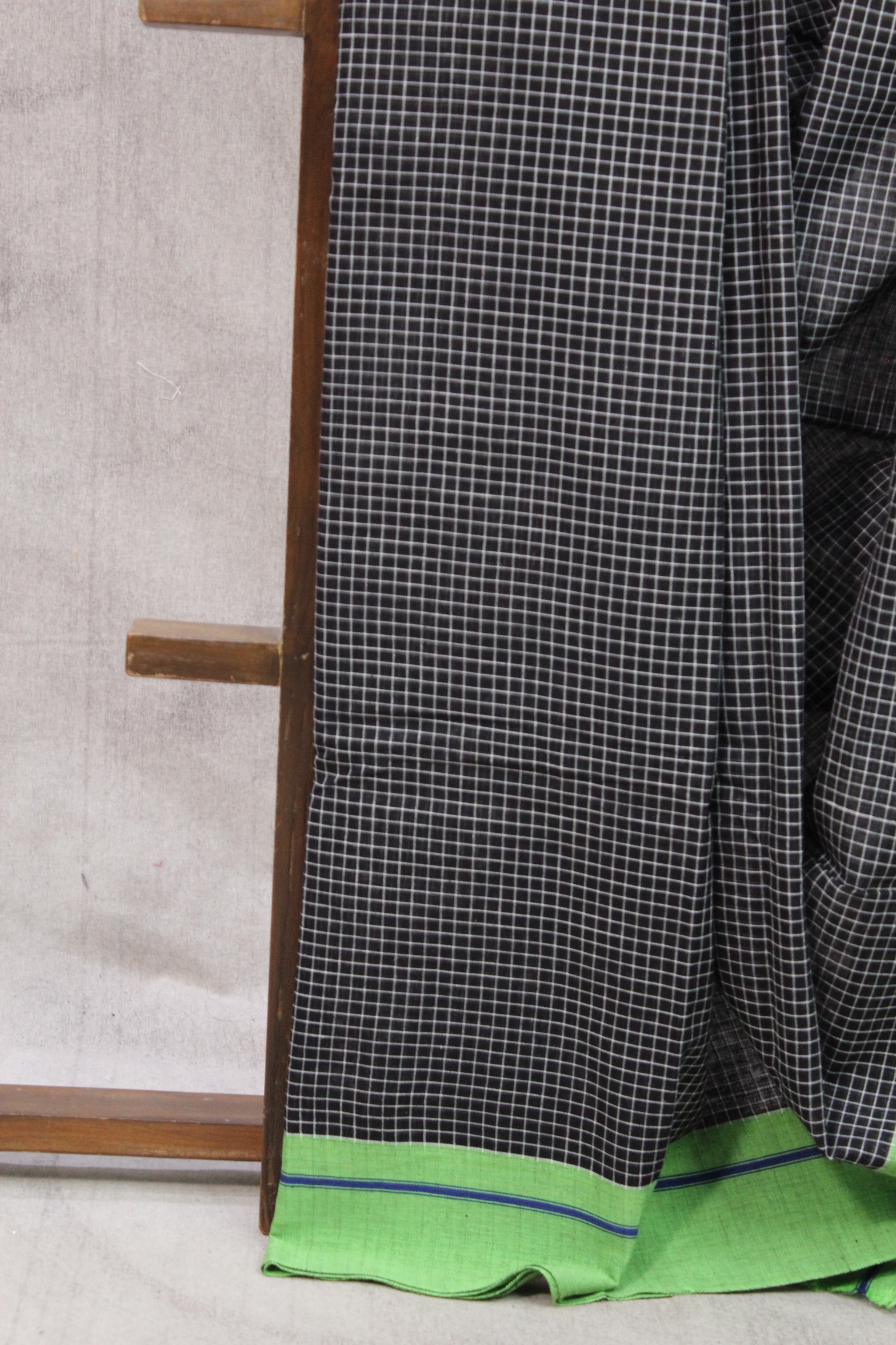 Black Big Checks Cotton Patteda Anchu Saree - SRBPAS159