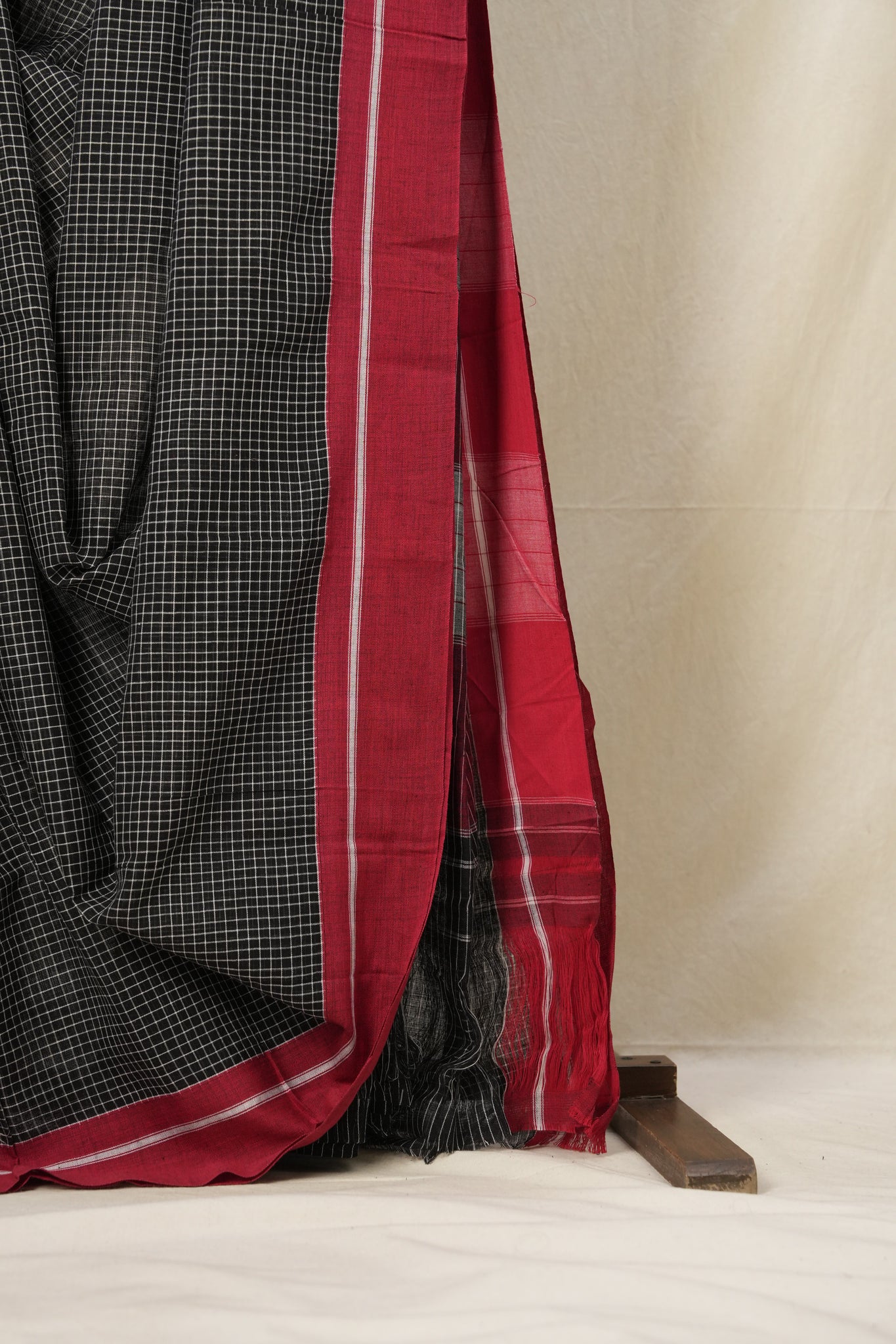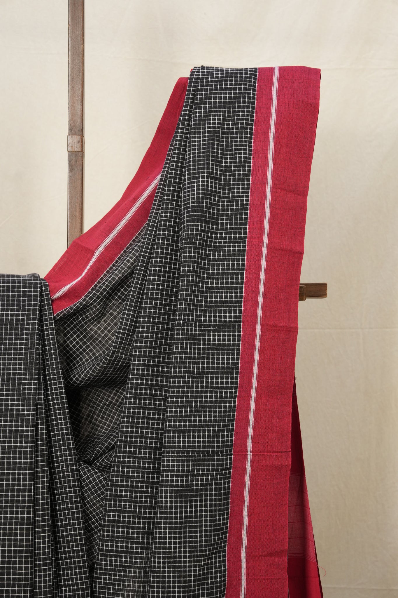 Black Big Checks Cotton Patteda Anchu Saree - SRBPAS271