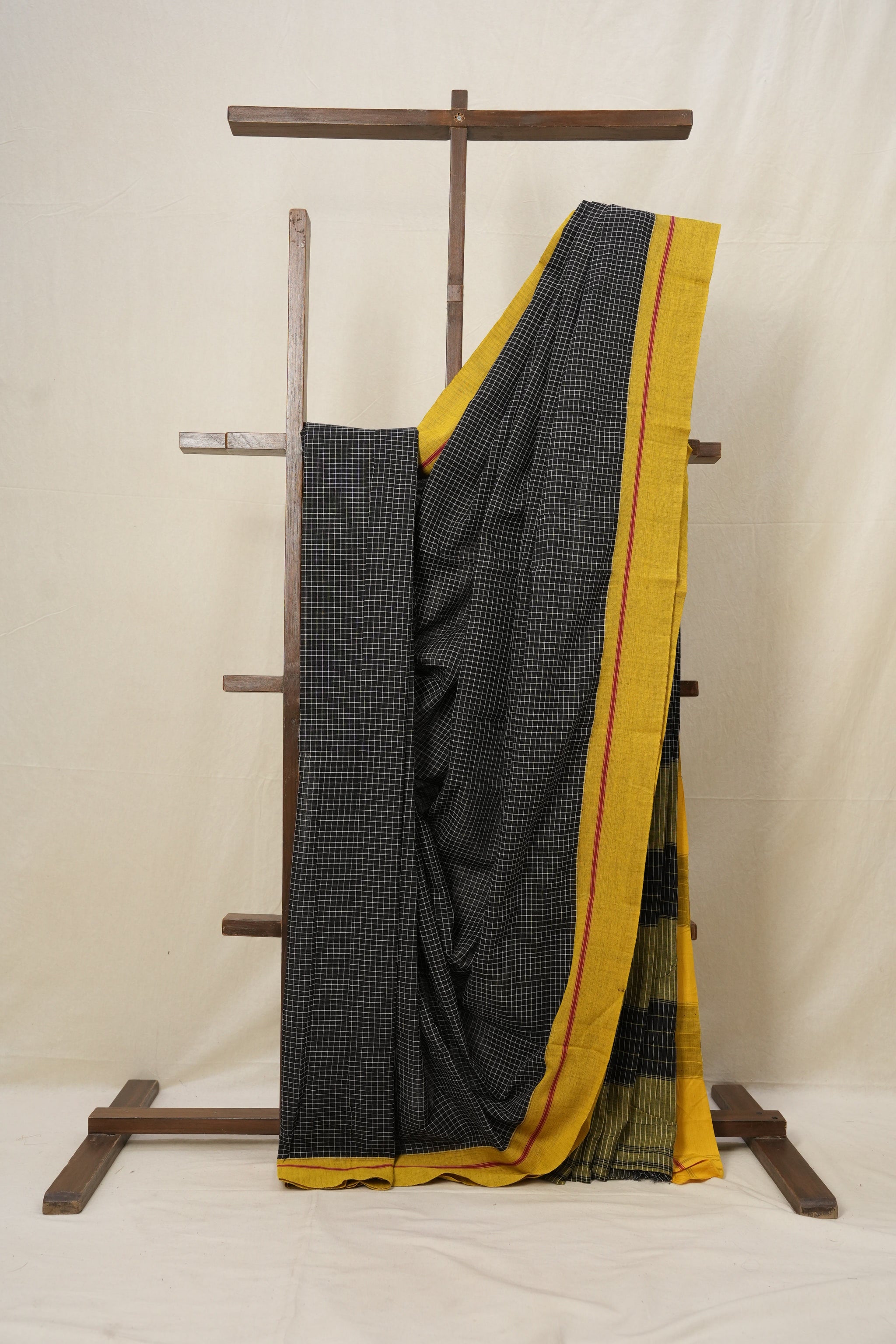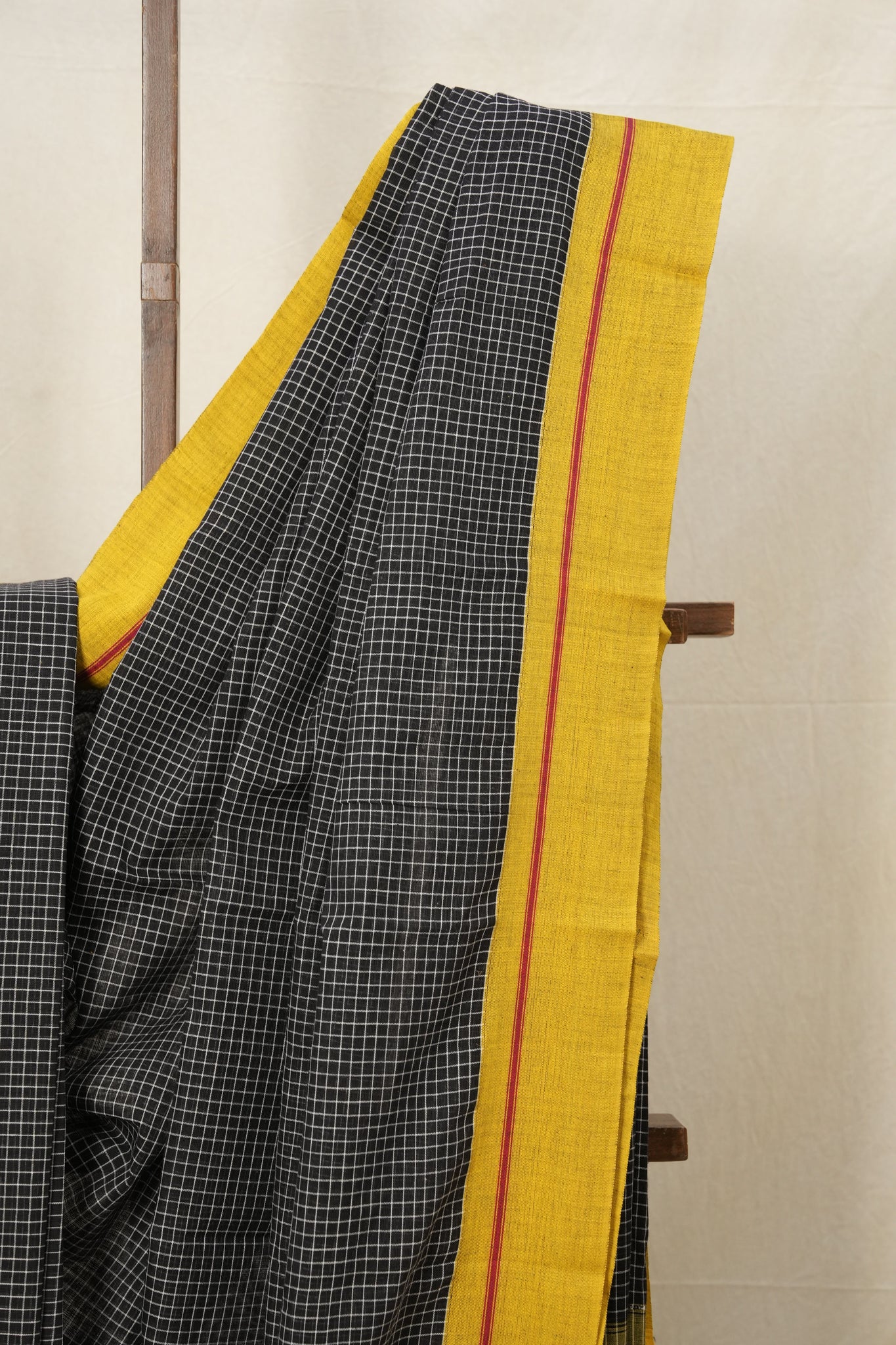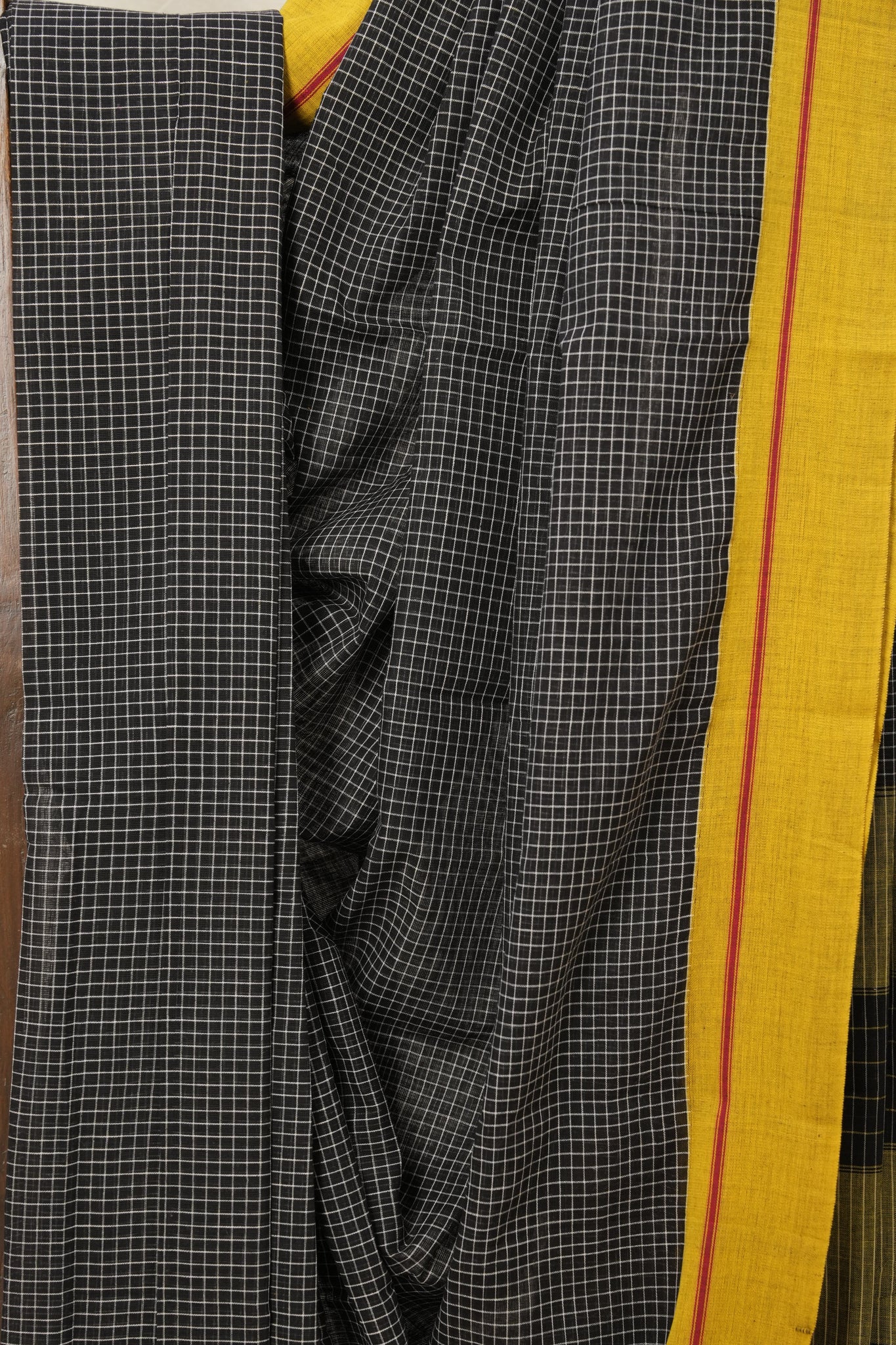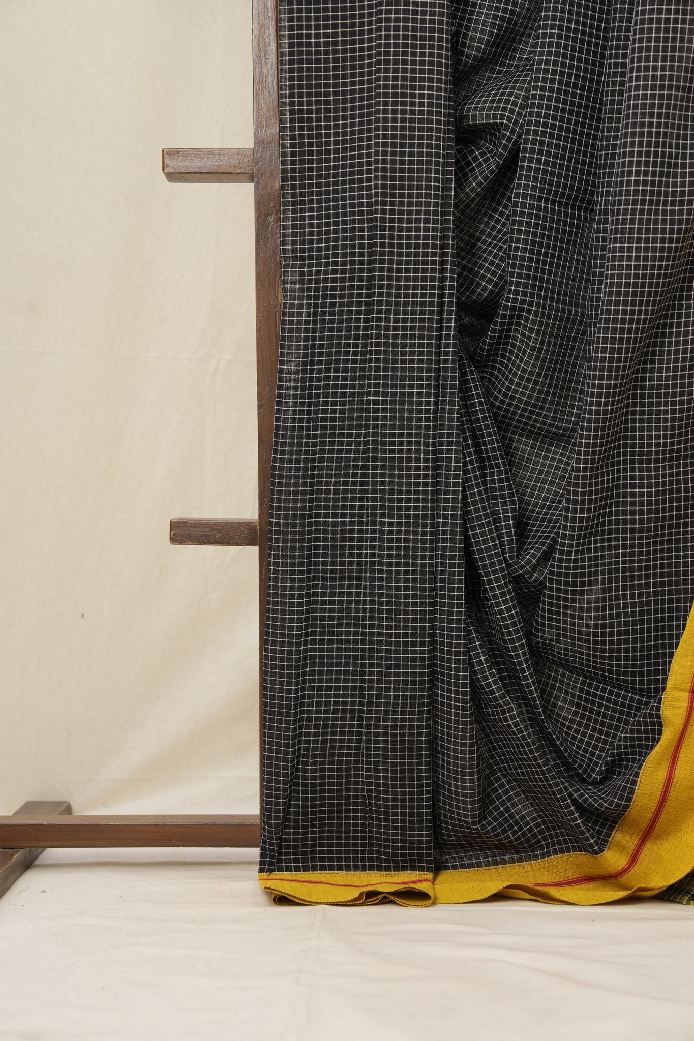 Black Big Checks Cotton Patteda Anchu Saree - SRBPAS81