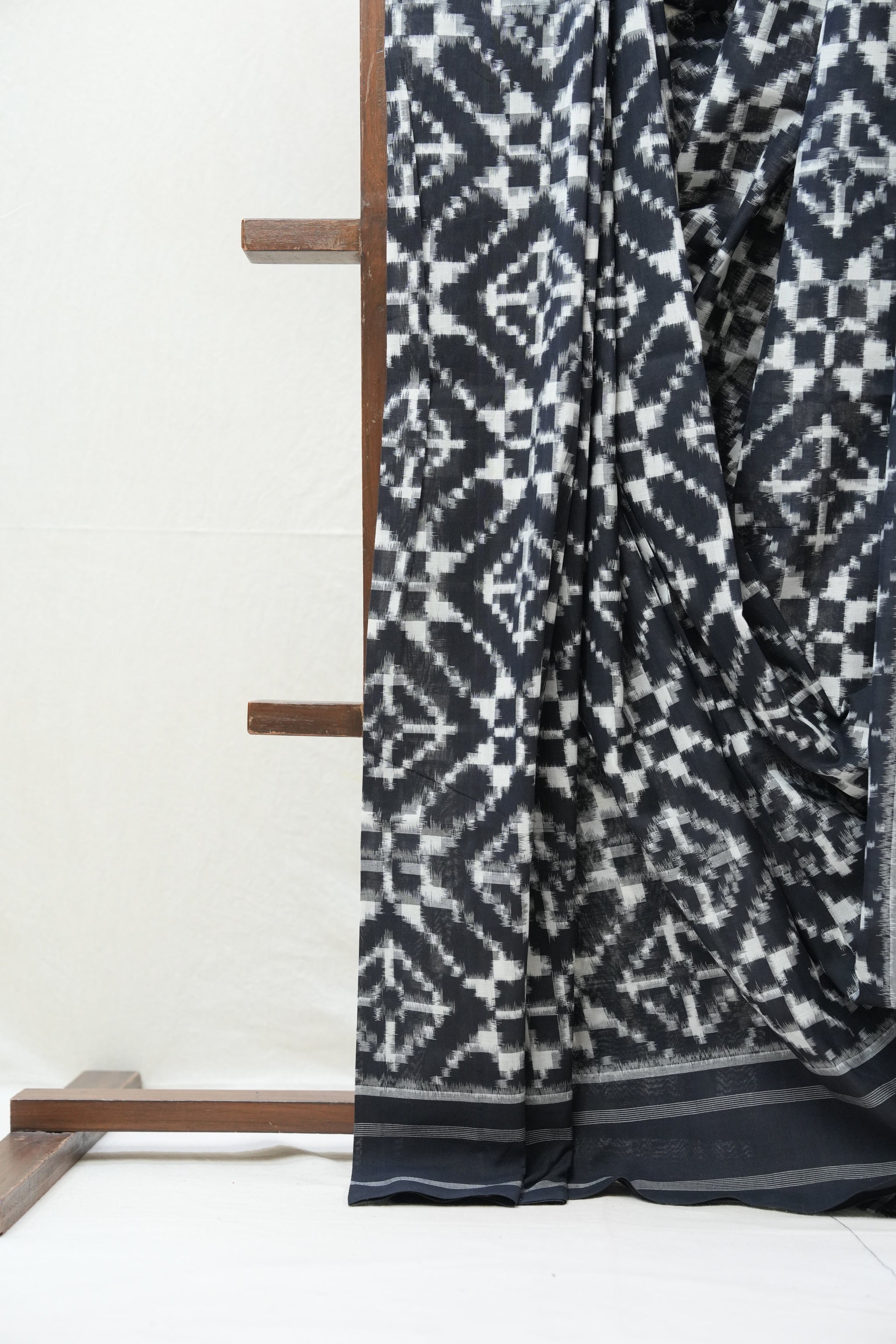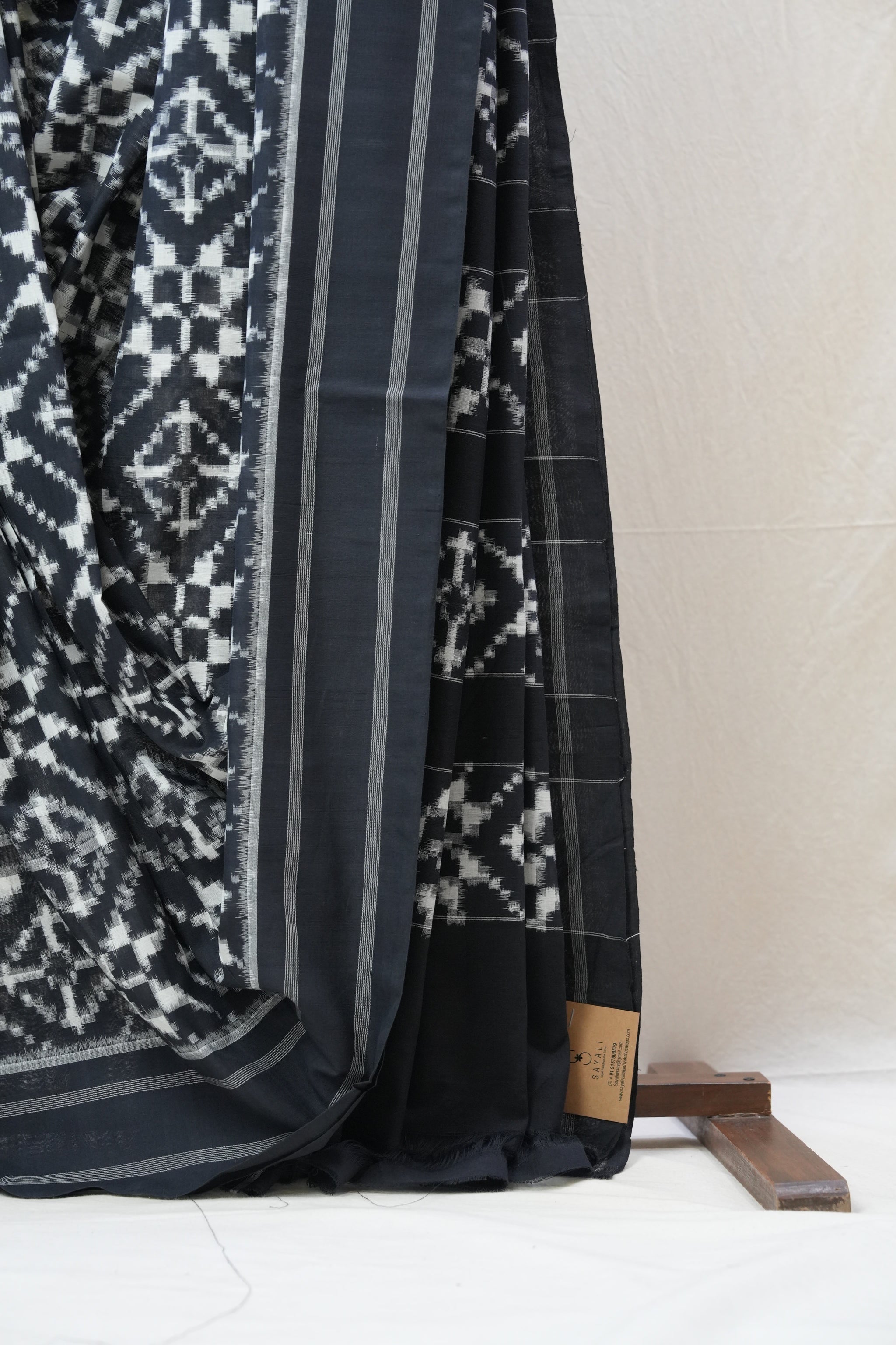 Black Pochampali Cotton Ikat Saree - SRBPCIS402